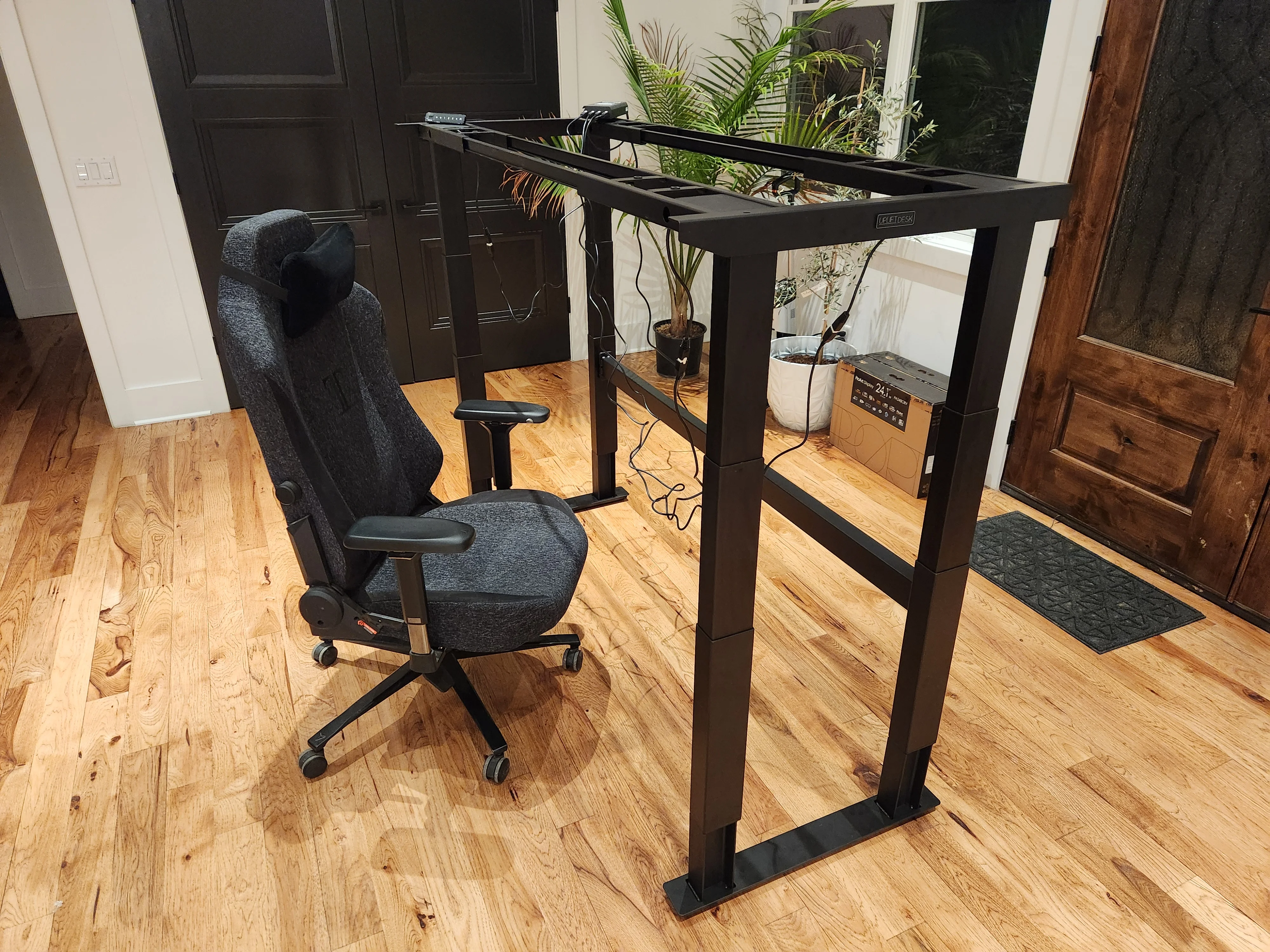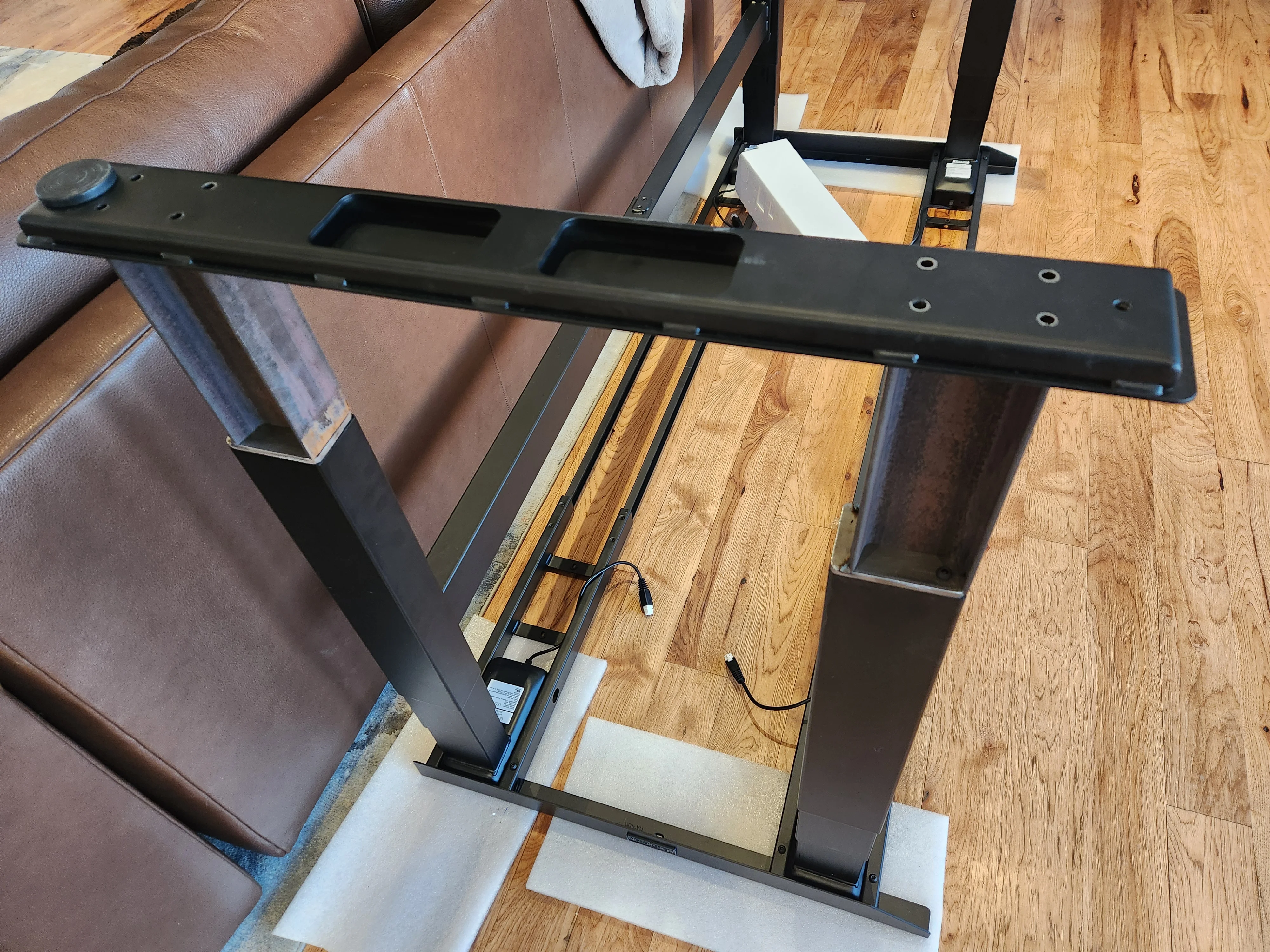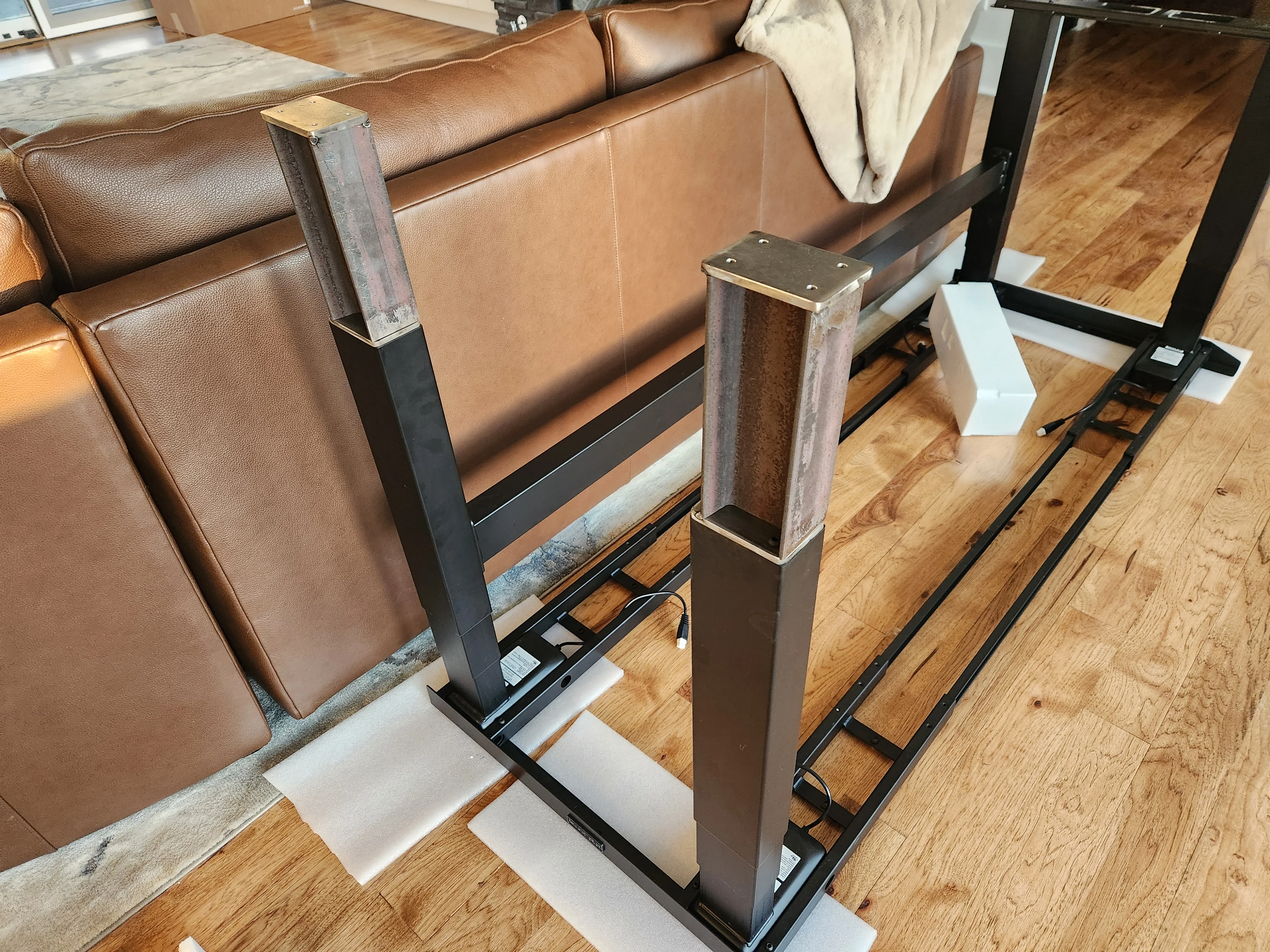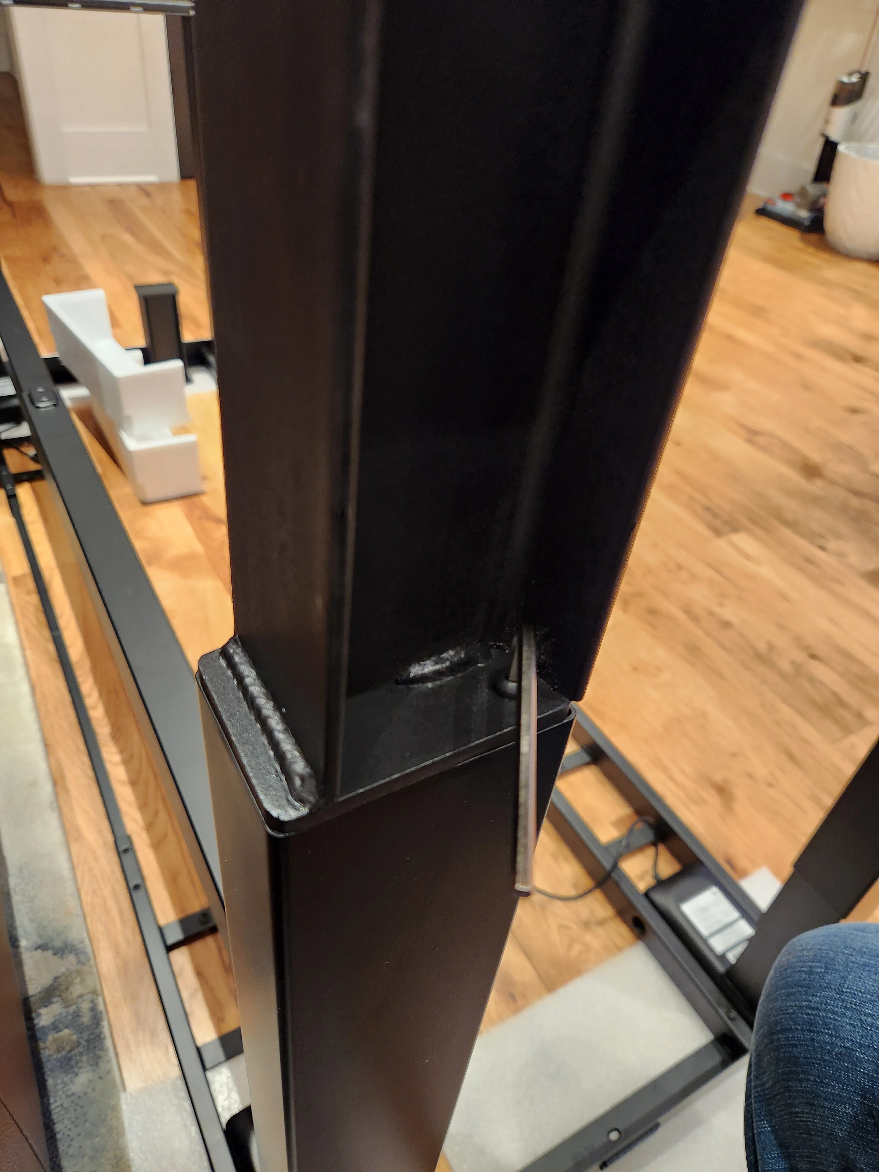 The frame. Purchased an UpLift industrial v2 4-leg/4-motor frame. linky This was the most costly bit of the whole project. A savvy pennypincher can find these identical components on AliX and Alibaba for a LOT less. But I didn’t know what I needed starting out and decided it was the easiest way to go. It is capable of 1000+lbs lift. The only downside is it only maxes out at like 52” height. I will address that below.