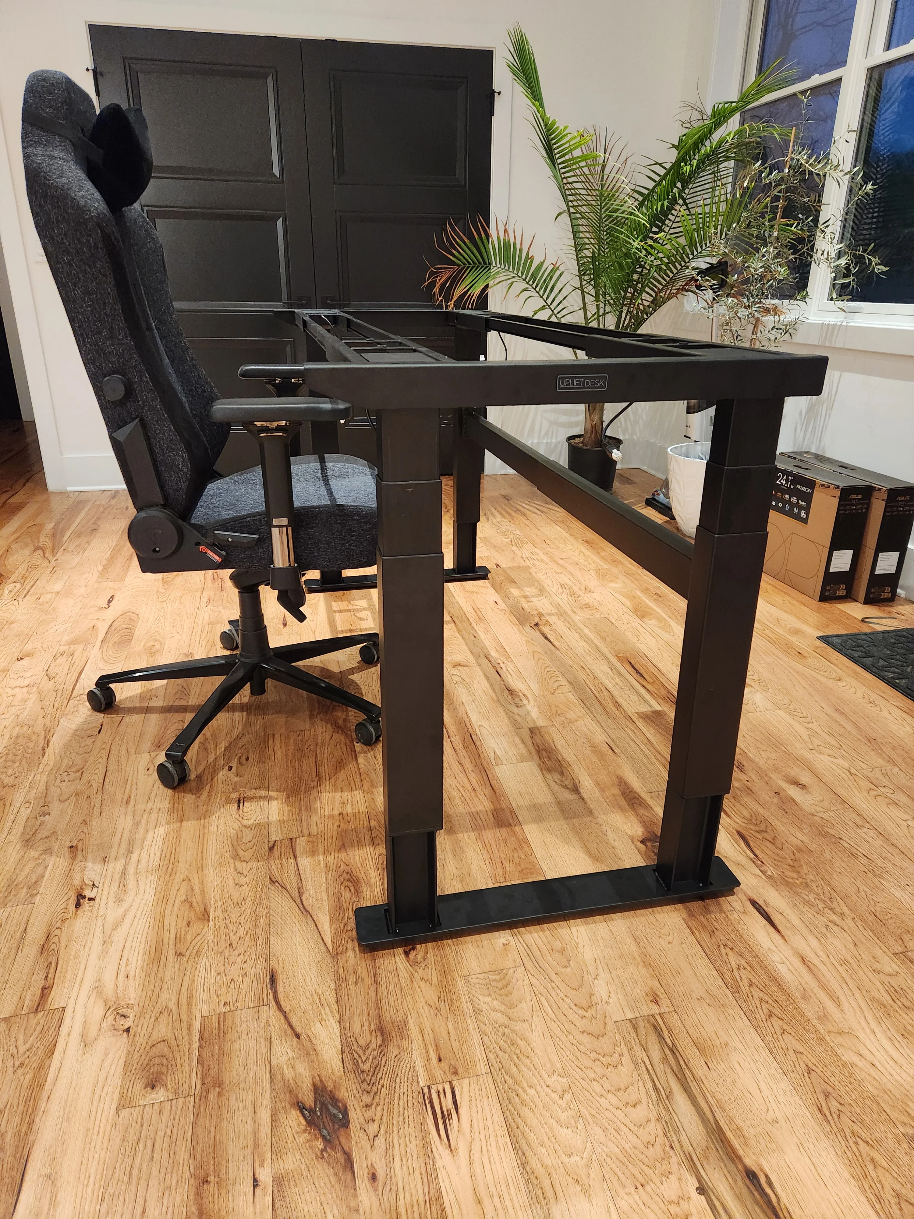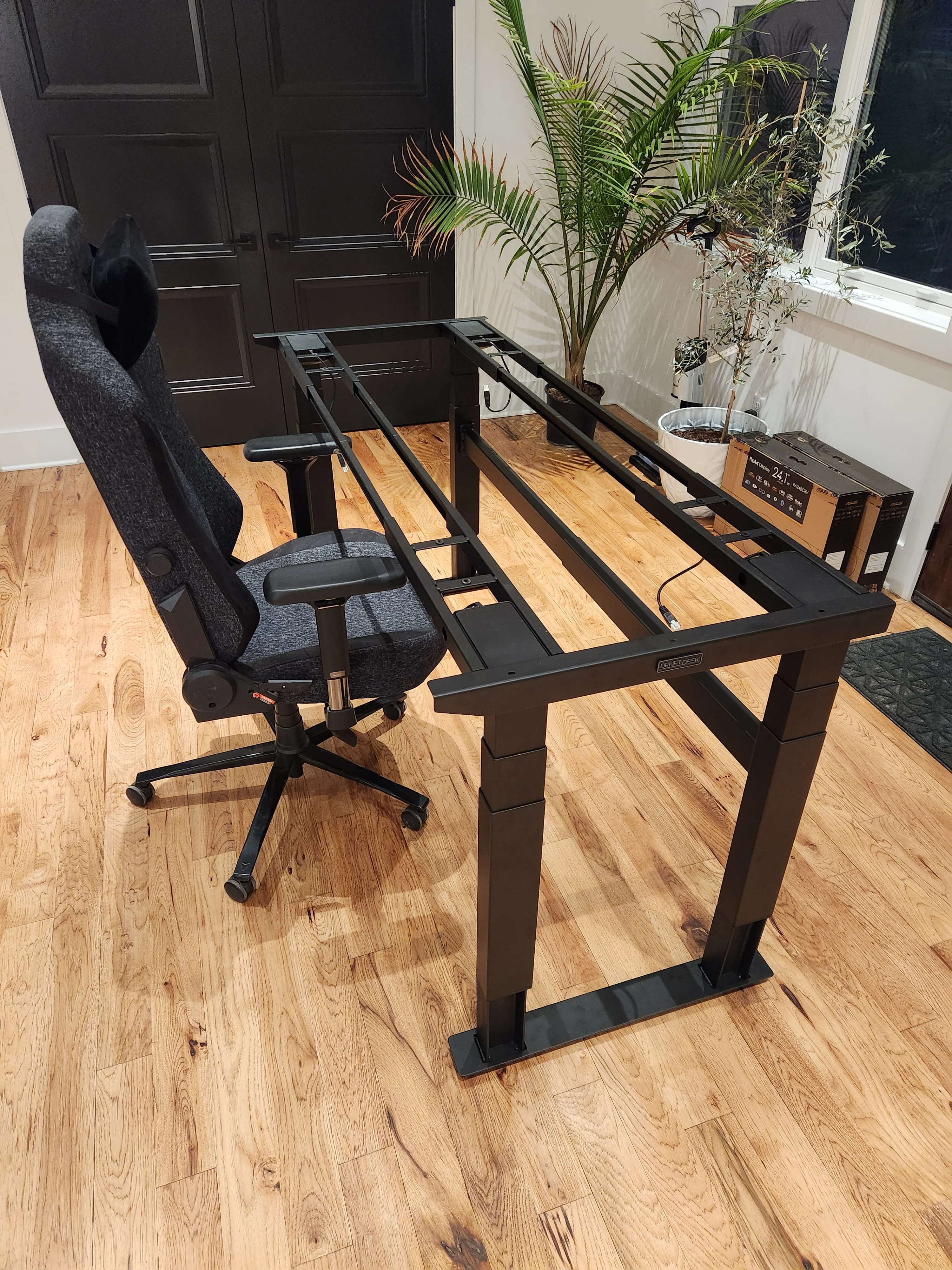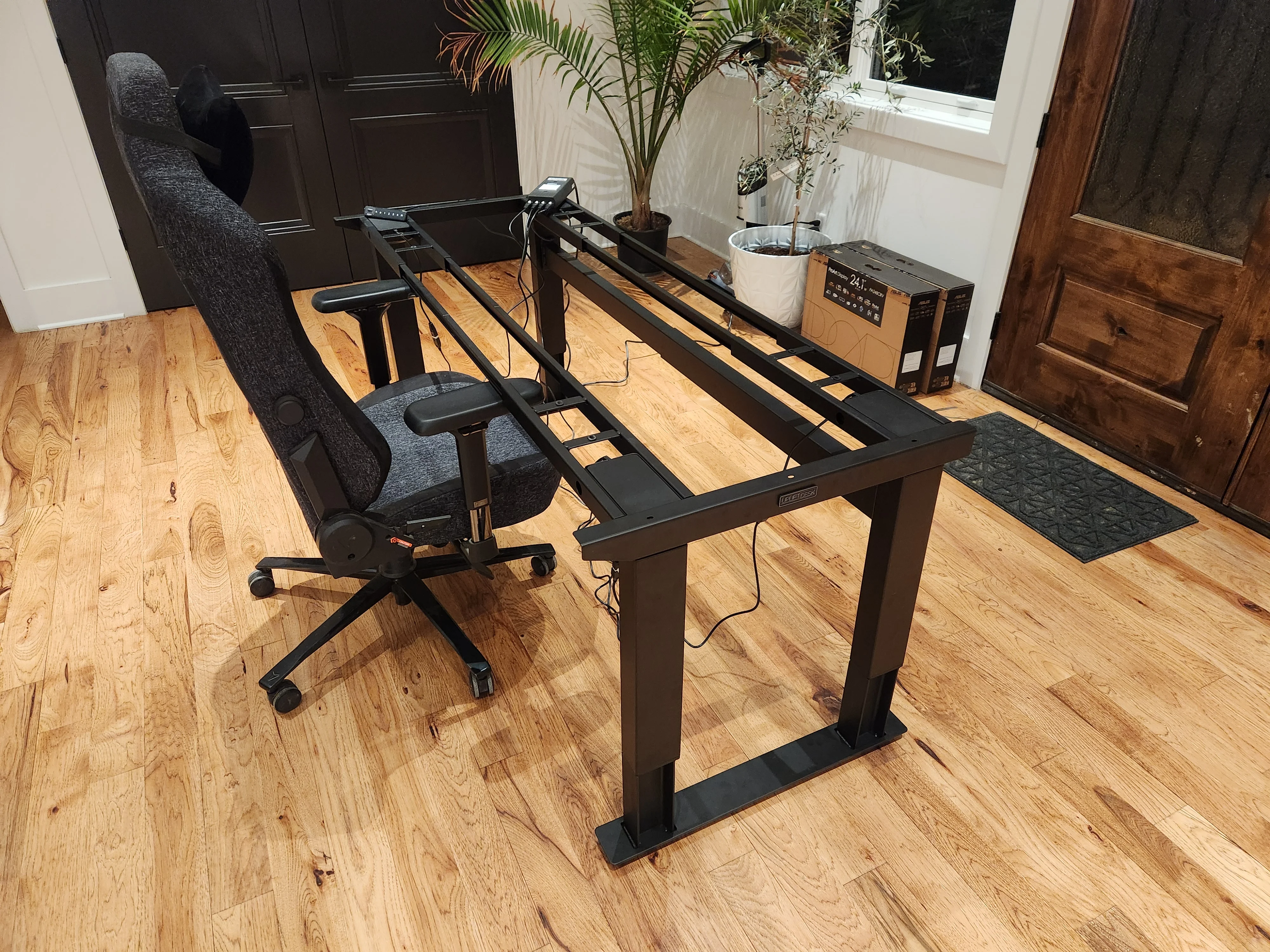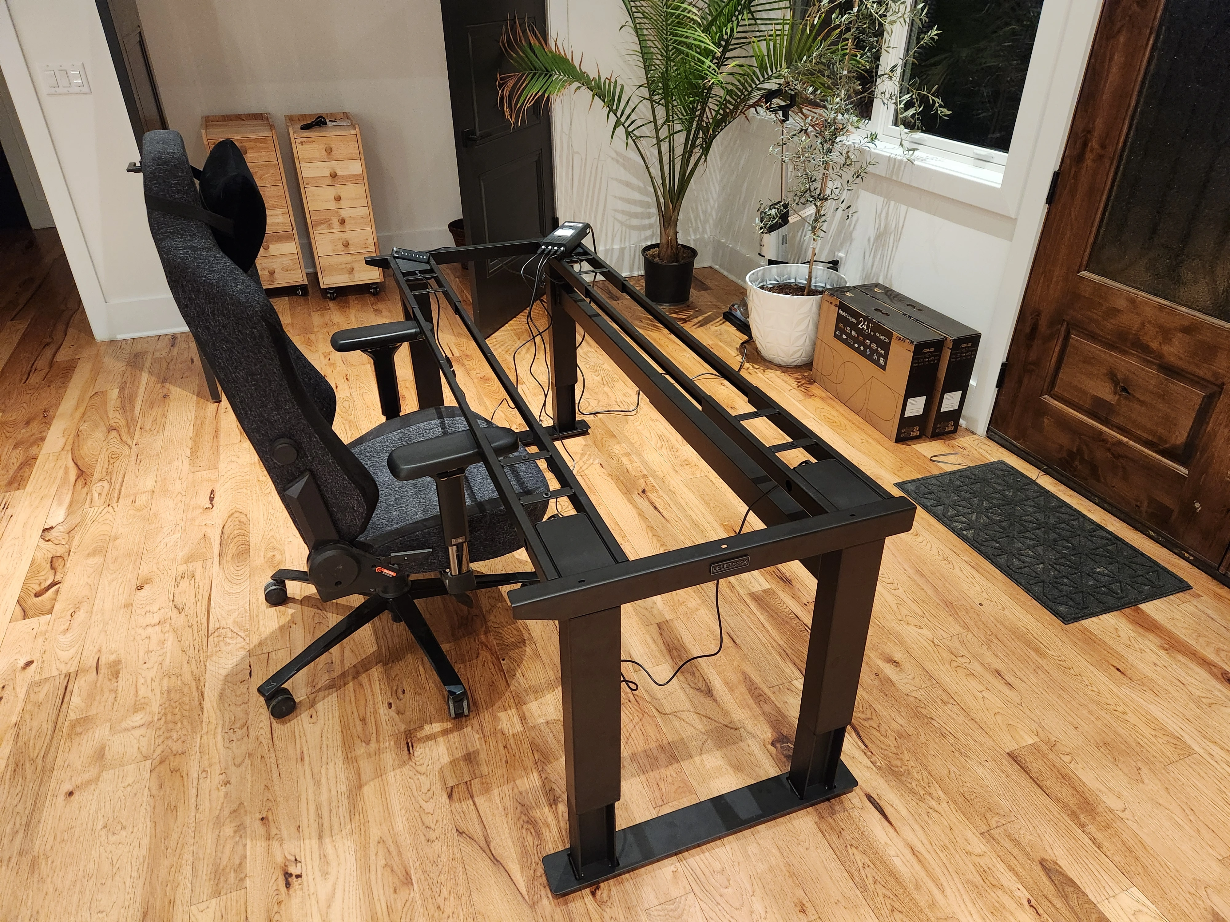 The frame. Purchased an UpLift industrial v2 4-leg/4-motor frame. linky This was the most costly bit of the whole project. A savvy pennypincher can find these identical components on AliX and Alibaba for a LOT less. But I didn’t know what I needed starting out and decided it was the easiest way to go. It is capable of 1000+lbs lift. The only downside is it only maxes out at like 52” height. I will address that below.