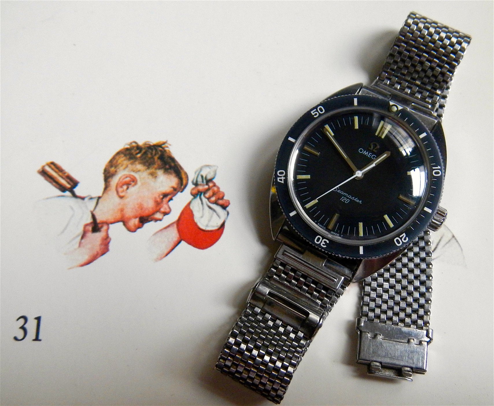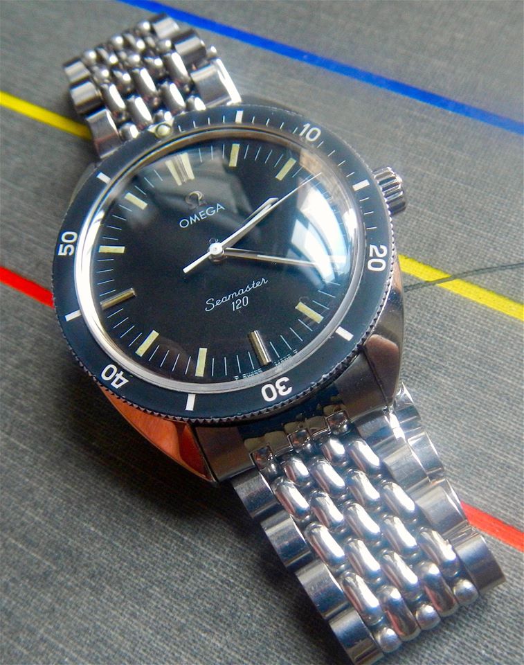In the 1960's, with the success of the of the Seamaster 300, 3rd generation divers, the 165.024 and 166.024, Omega began their series of "baby" divers, the SM120s. Cheaper, Smaller and lighter, 37mm as opposed to the 41mm SM300, the SM120s were initially produced in 4 references. Unlike the SM300 which were only automatic, manual movements were offered as well. 31mm ladies sizes too, (I don't have any of these but be careful as some sellers neglect to mention they are selling the tiny size!!)