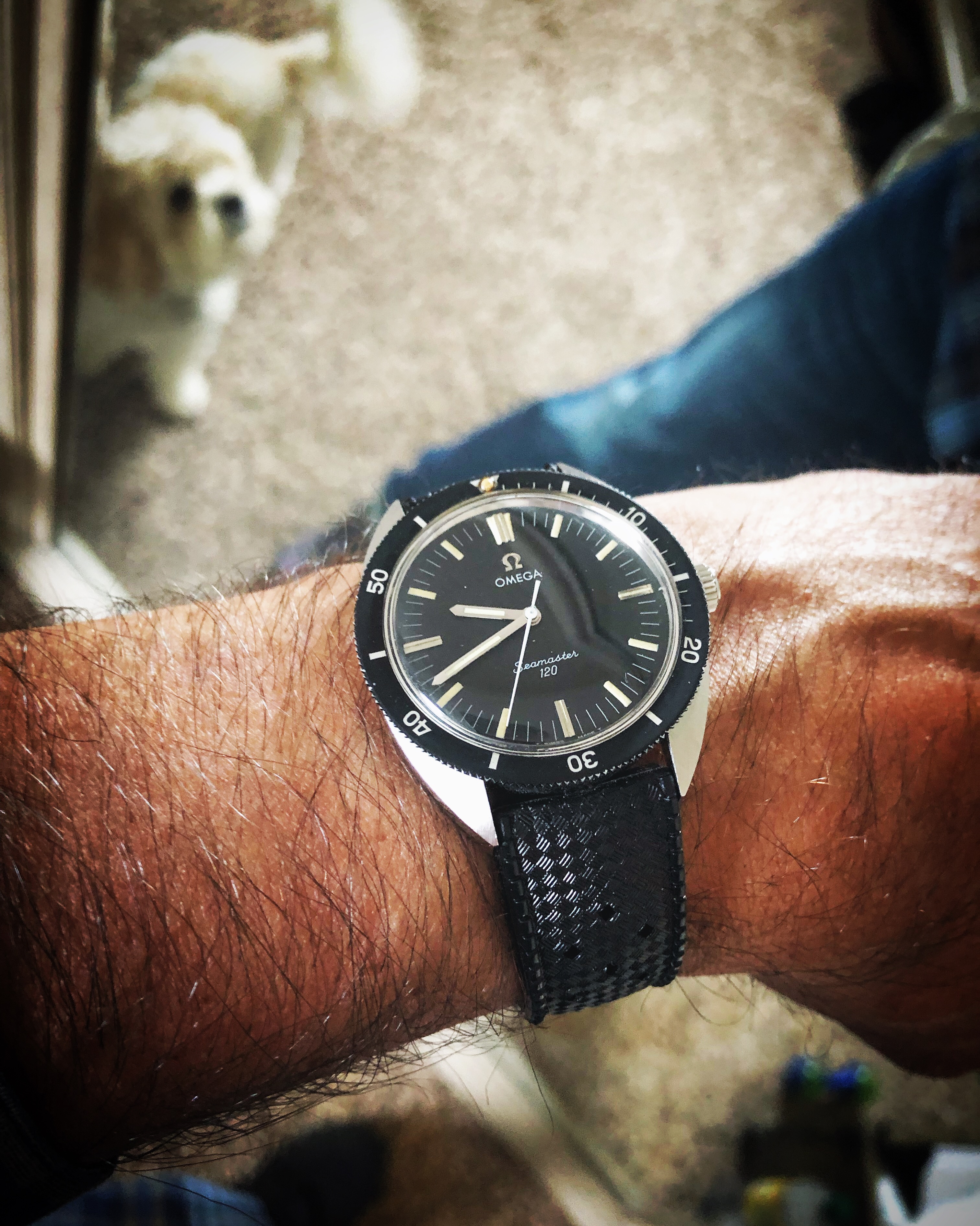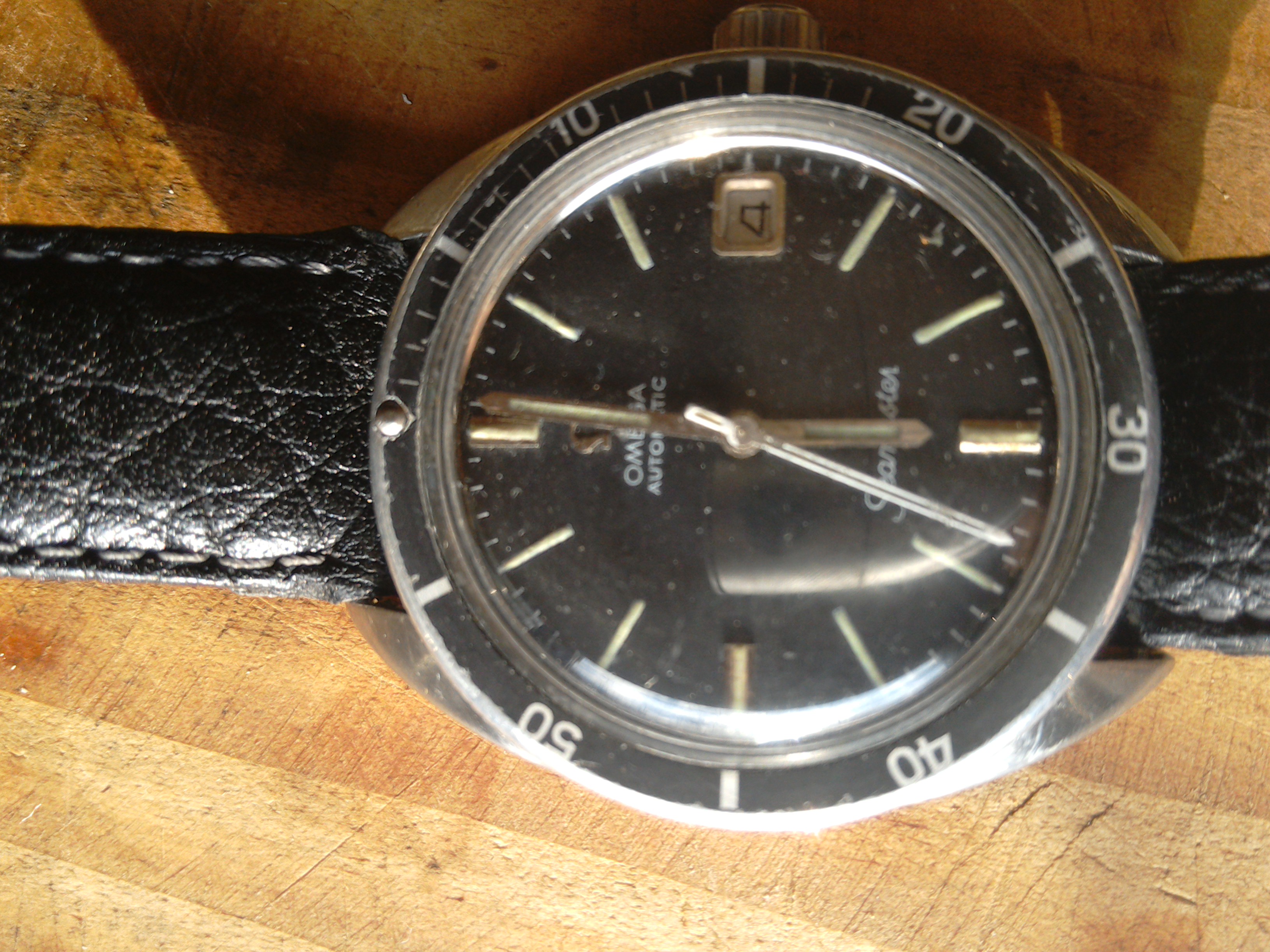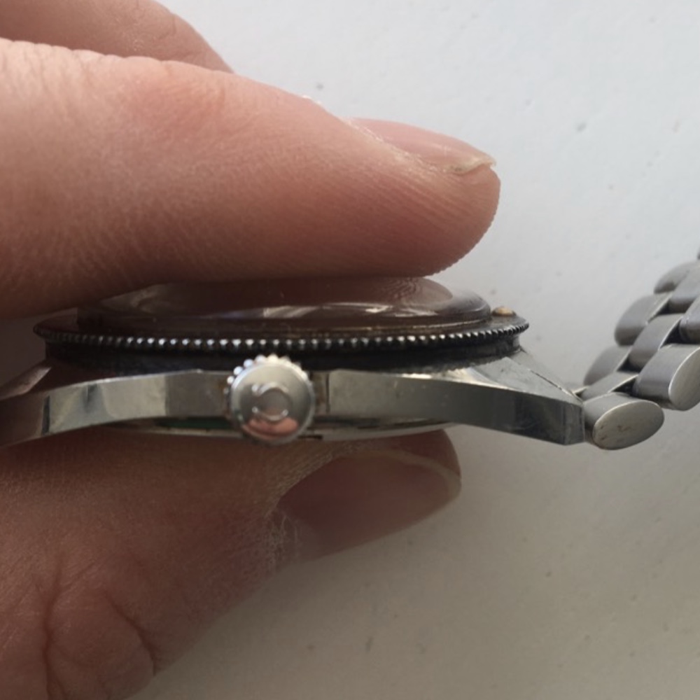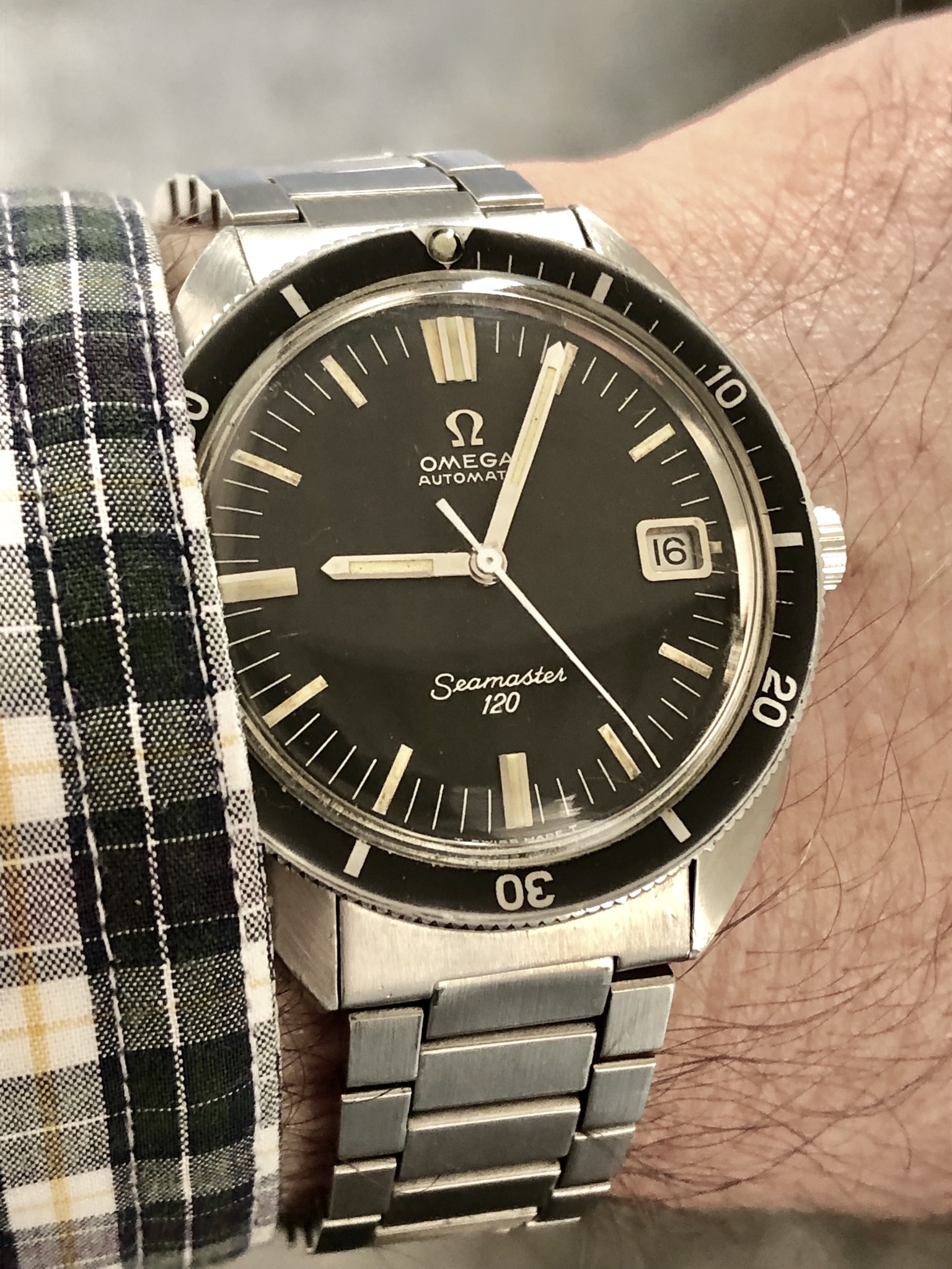 Thoughts on this 165.027? In particular, the hands, dial, and bezel all look to be in excellent condition with appropriate, matching patina. From what I can tell, the dial appears to be original (i.e., white text, matte texture), though I wish the pictures were a bit better quality so you could fully analyze the printing. Hands also appear to be original with the correct, white seconds hand. Bezel is in excellent shape with light wear and intact lume pip matching the patina of the dial and hands. Case and crown look to be genuine as well. Difficult to analyze the case back with the sticker (original? service?) on it, and no movement pic...