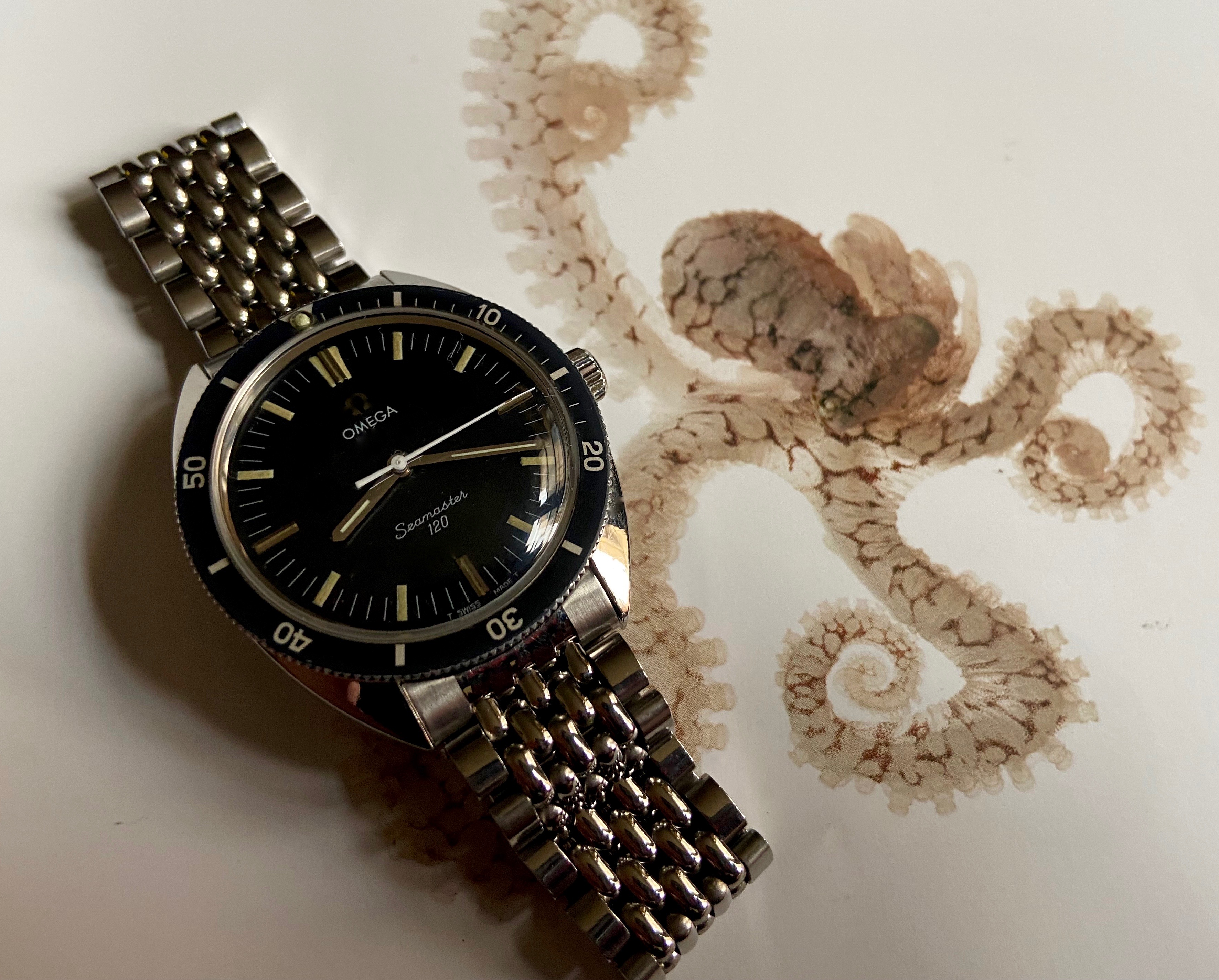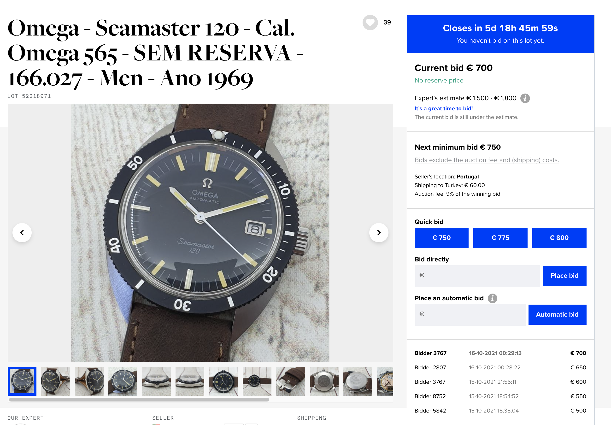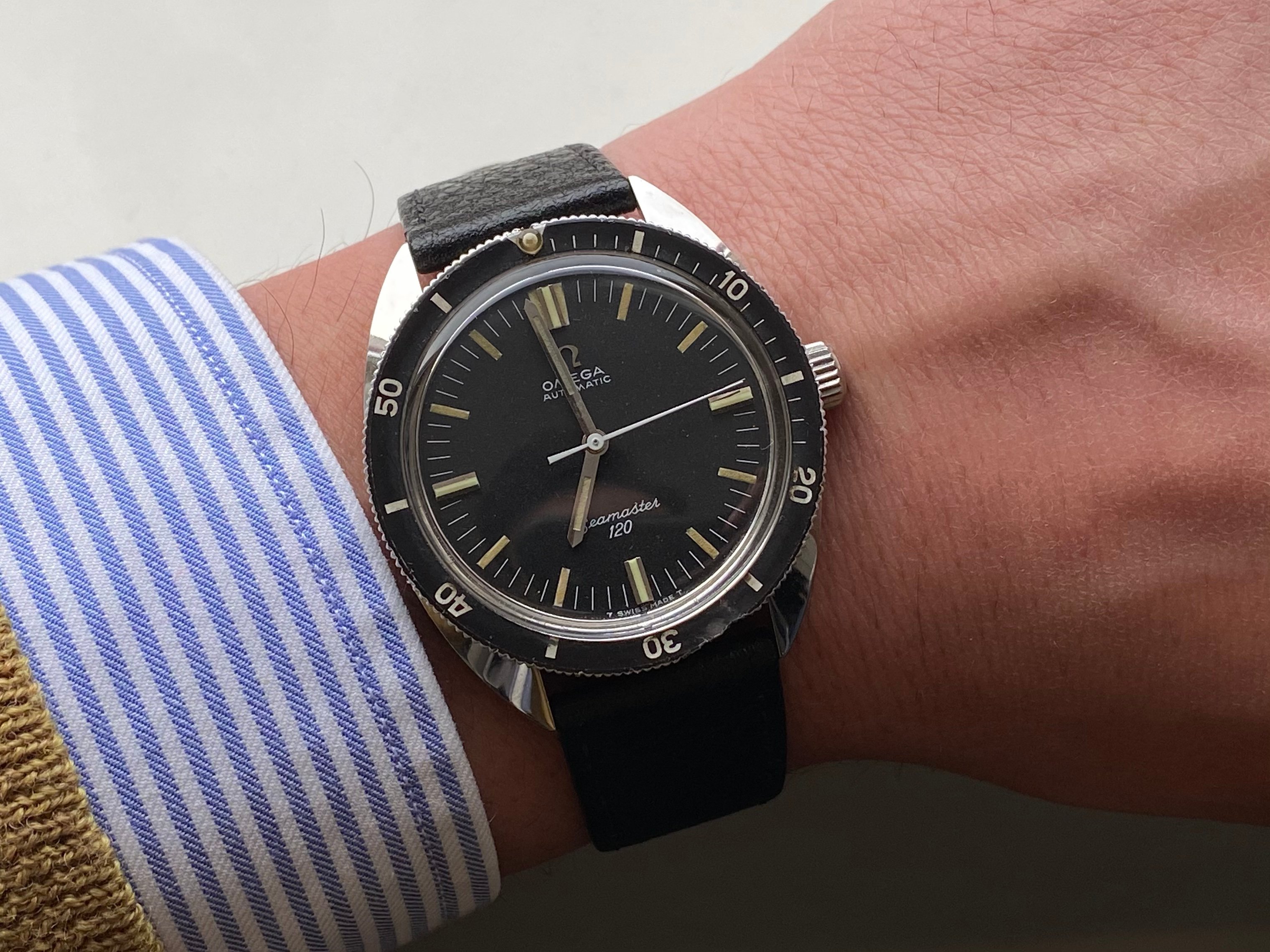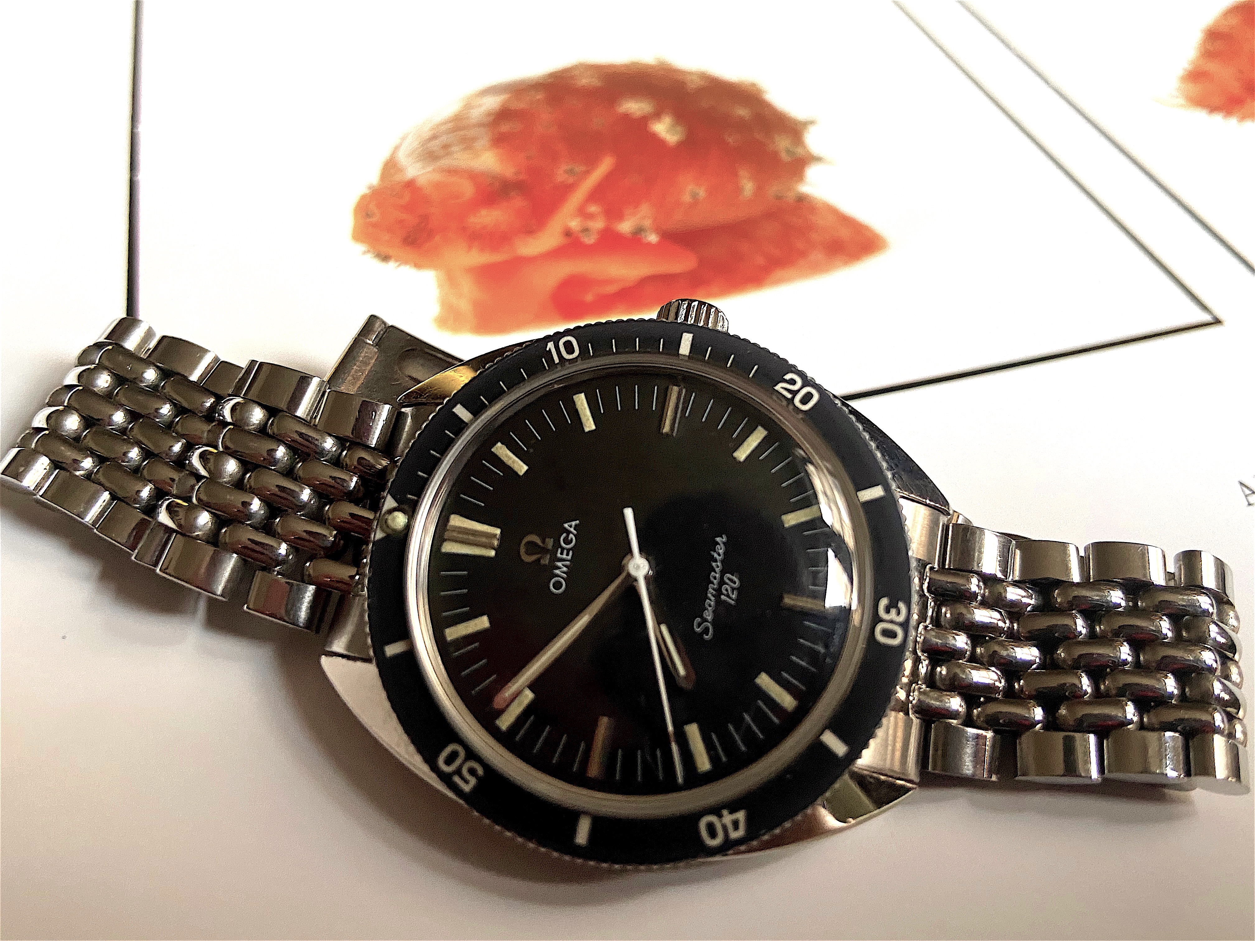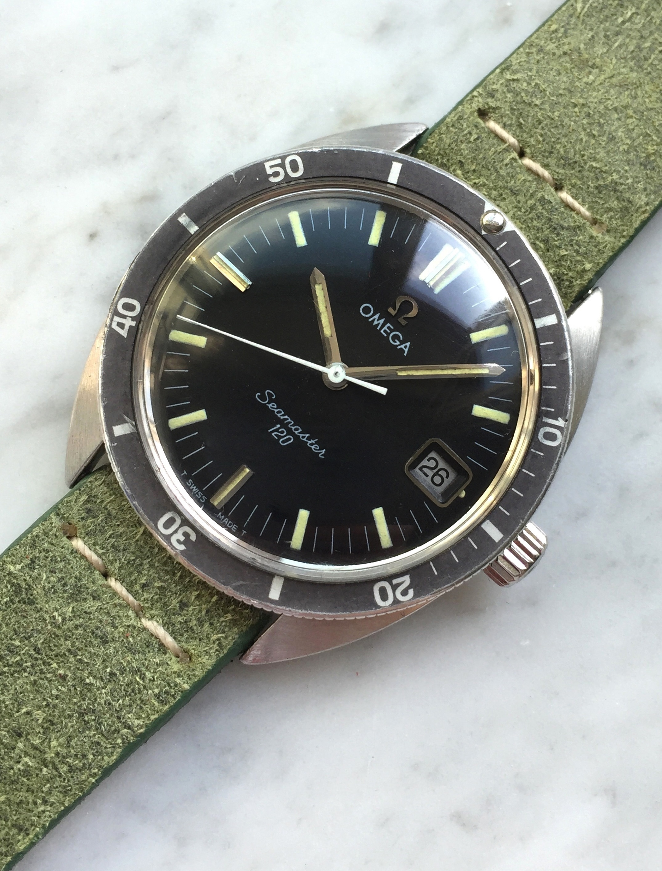 And I have this 2nd option, below. Movement number and ref. on the inner side of the case back match (166.027 / caliber 565). The case, case back, inner side of case back, and movement is original based on the photos I saw. Lume dot on the bezel is reapplied, not too nice. Bezel looks original and is a relatively good condition. Lume on the dial and hands are faded, dirty-ish, but perhaps considering the age of the watch it's ok. Colors on the dial and hands match. However, the "Omega automatic" and the "Seamaster 120" text looks too brigh/white on the dial compared to the aged lume on the dial, perhaps reapplied, a bit off I would say. May I have your opinion please about the dial?
