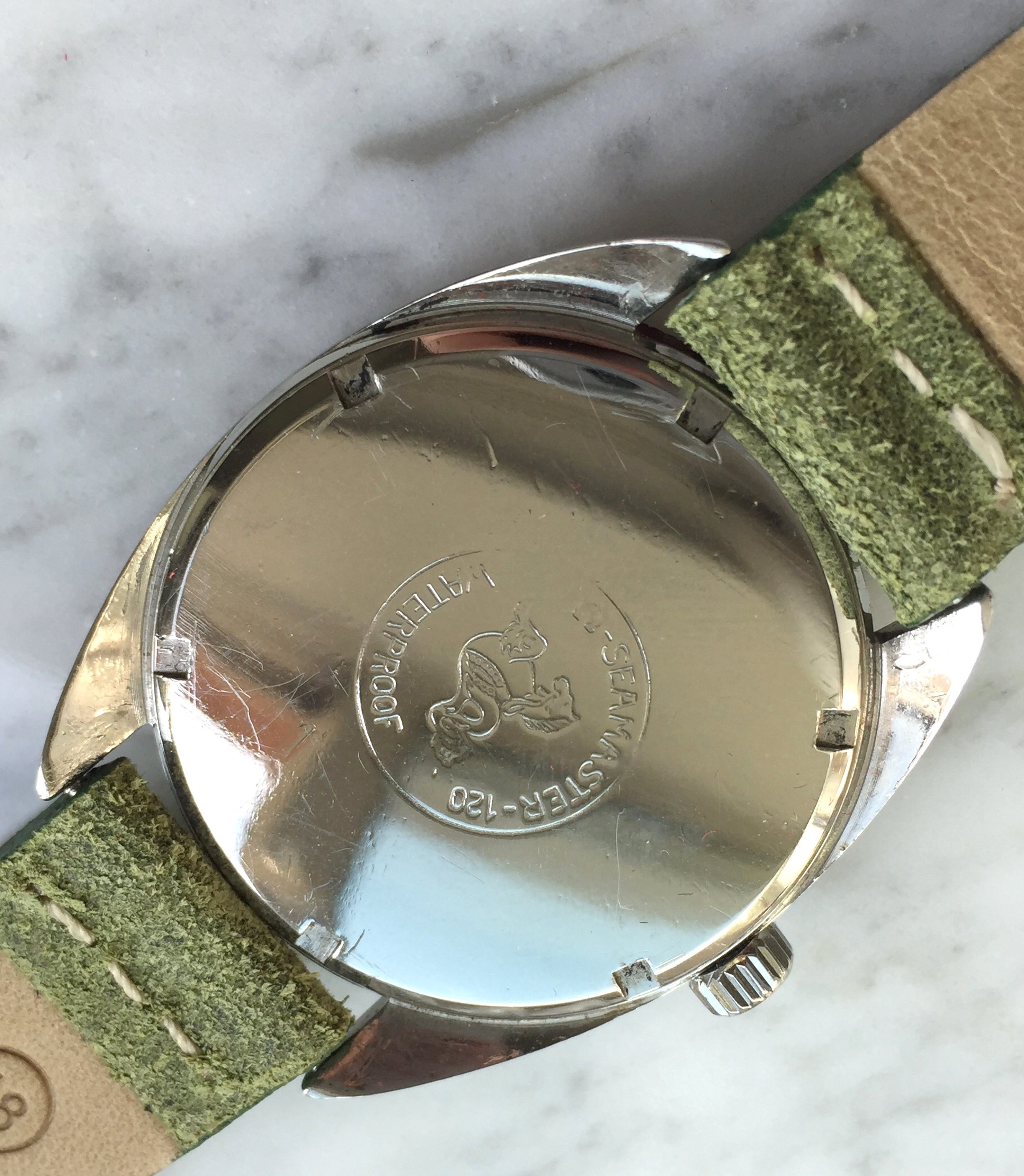 Hands are ok, as well. The bezel looks also original including the pearl in the middle, but heavily damaged. Bezel does not rotate. Plexi is not original. The case looks really clean, the case back too with the seahorse logo, which look original.