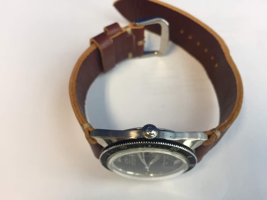 Regarding the above ad (thanks for posting): interesting that they would spec a leather strap on a watch that would be frequently used in water, as that material certainly wouldn't be the best choice.