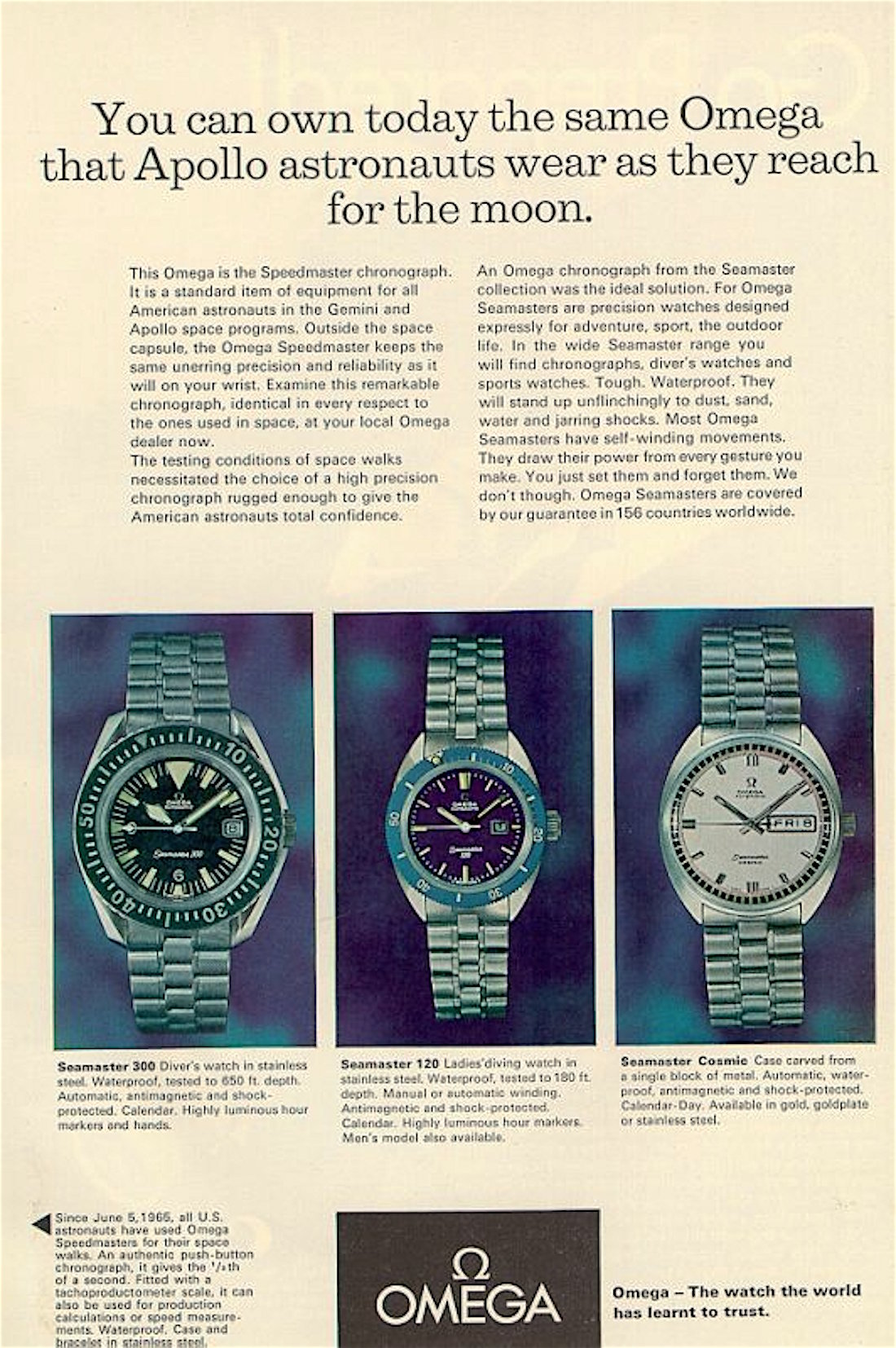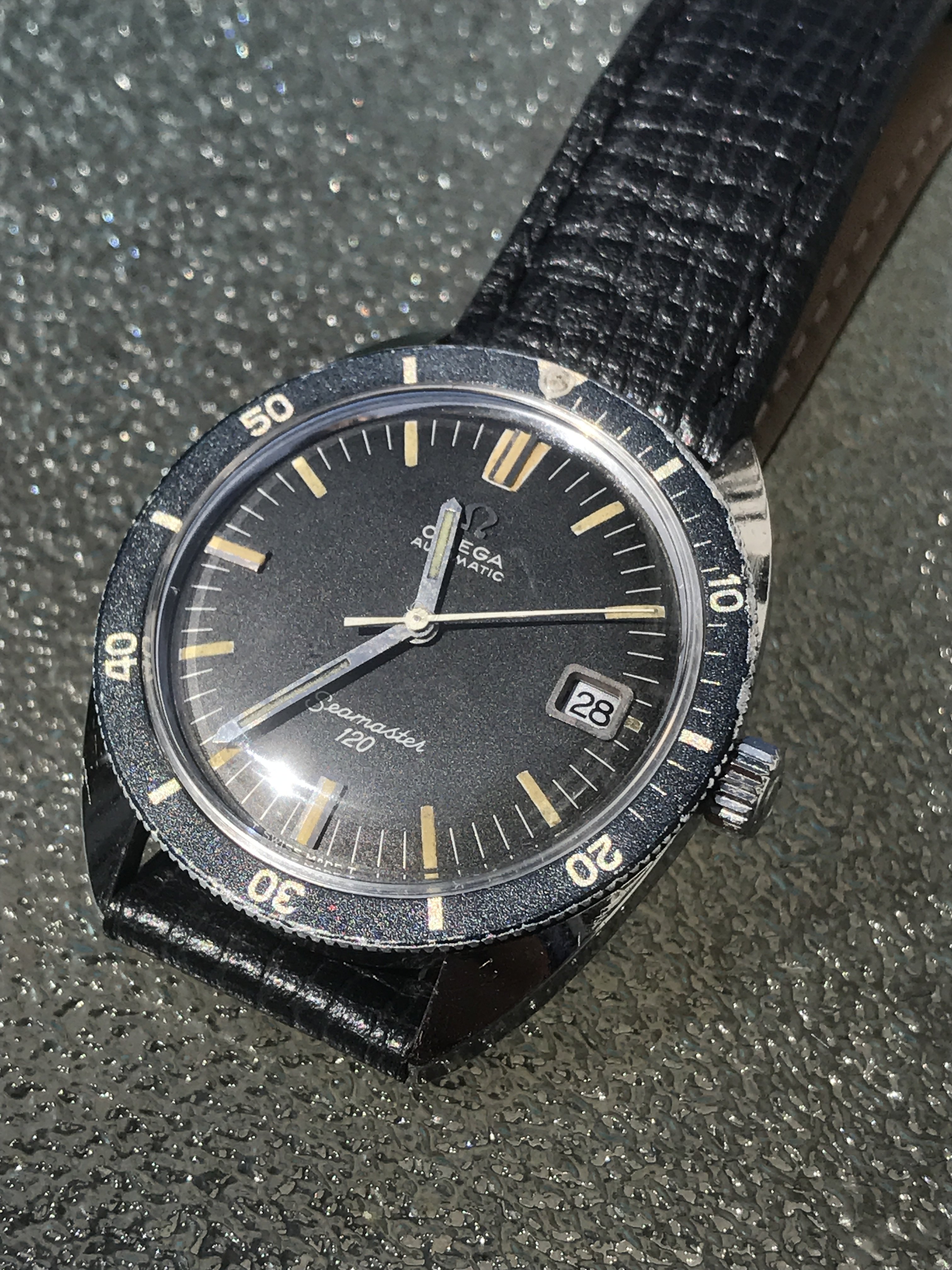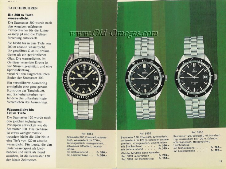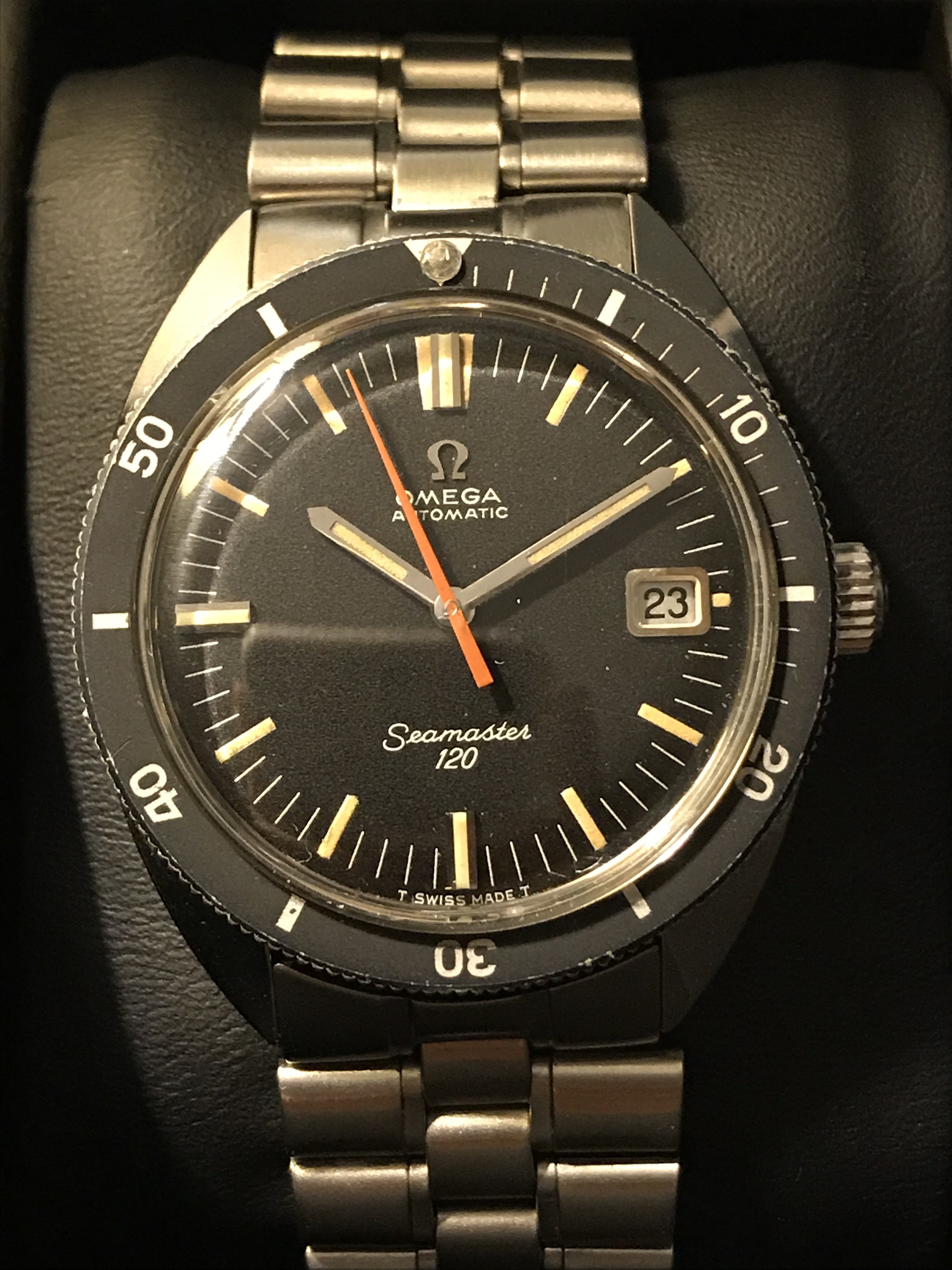 In the 1960's, with the success of the of the Seamaster 300, 3rd generation divers, the 165.024 and 166.024, Omega began their series of "baby" divers, the SM120s. Cheaper, Smaller and lighter, 37mm as opposed to the 41mm SM300, the SM120s were initially produced in 4 references. Unlike the SM300 which were only automatic, manual movements were offered as well. 31mm ladies sizes too, (I don't have any of these but be careful as some sellers neglect to mention they are selling the tiny size!!)