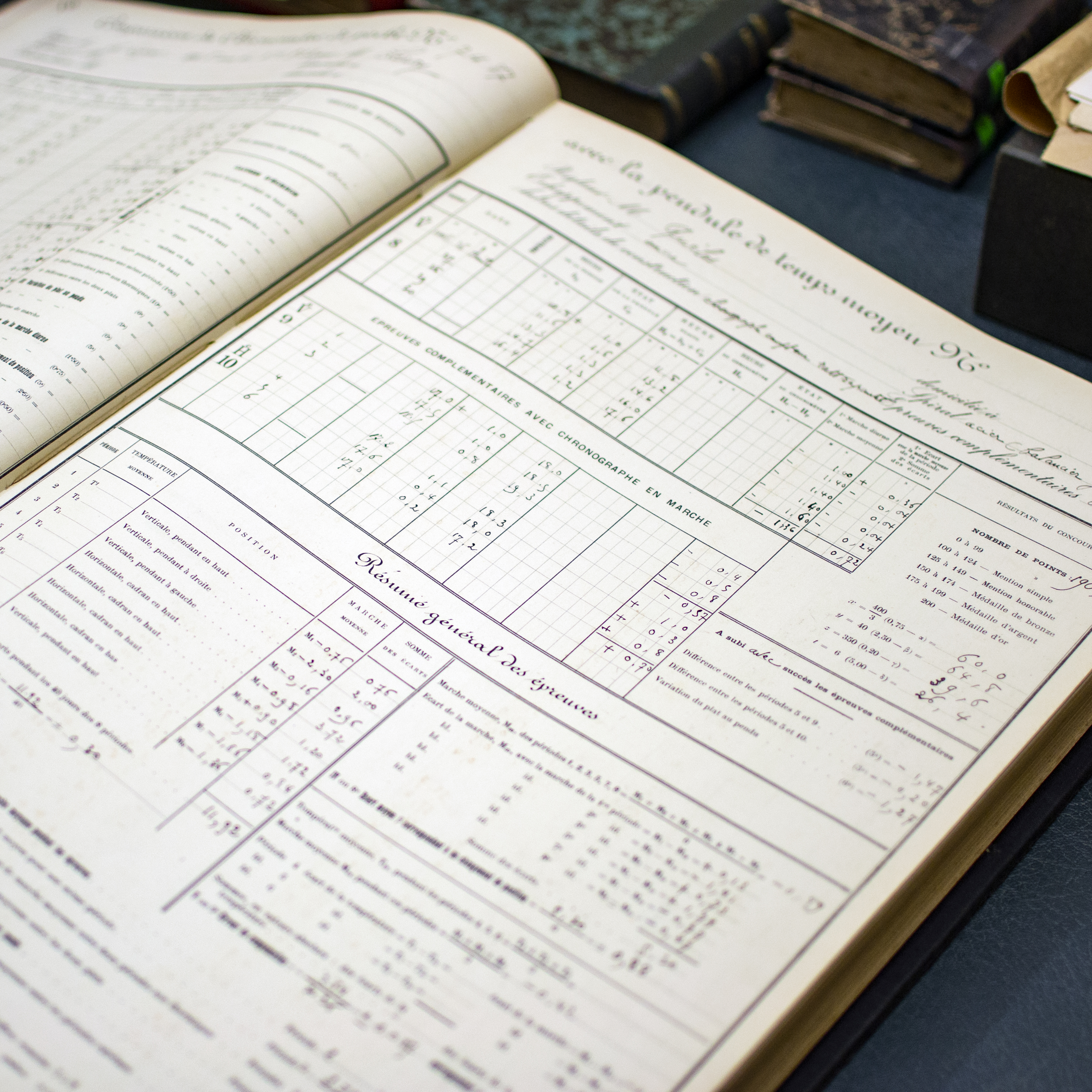 Today, Observatoire de Besaçon uses three interrelated atomic clocks located in a thermally and seismically isolated room to synchronize the various clocks throughout the laboratory. These clocks are a part of the French national and international atomic clock organizations, setting the most precise time around the world. The watches are provided a QR code, and the hands are digitally synchronized to their timing software with a high resolution, macro camera. Each watch is held in position by holders and placed in a temperature and humidity-controlled vault each day after measurements and winding.