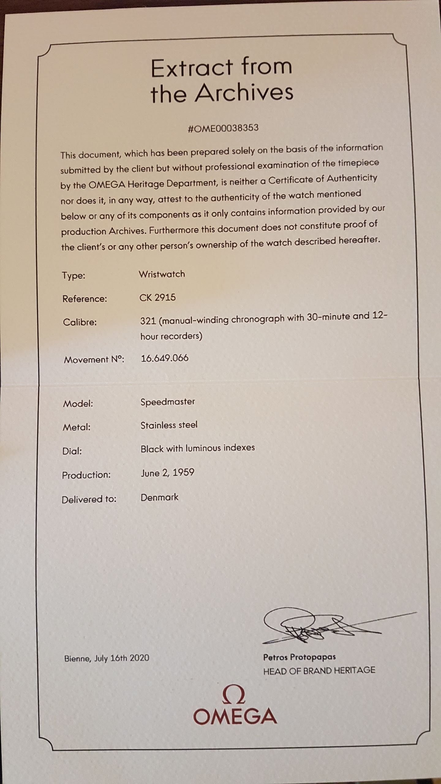 I ordered and received the extract and given that a few members expressed interest I thought I would post the results. It appears that he did buy it in Denmark after returning from working in Canada for a couple of years. As a kid I remember him saying he came back from working up north with $25k, which would have been an insane amount of money in the 50's. It would make sense that this is when he would have decided to invest in buying what would have been a great tool watch, but not necessarily a luxury item.