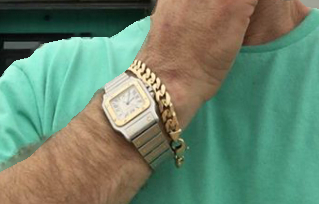 The watch is a McGuffin in this story. That's my brother's wrist in the photo, with (one of?) the watch(es?) he came home from the funeral with. My father's widow handed it to him, along with a bag of shoes and some jewelry, in return for a signed waiver renouncing his claim to any inheritance. I suspect the photo is the closest I'll get to the watch.