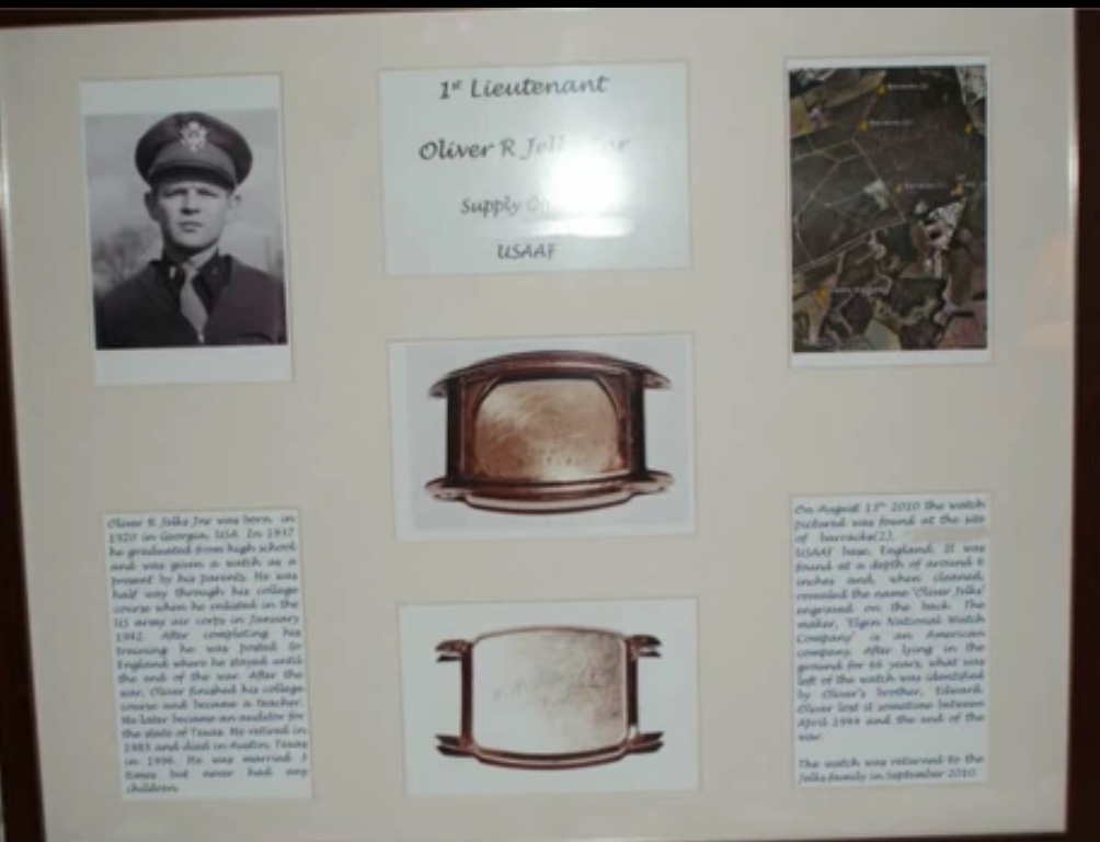 ·There were a lot of USAAF bases in the UK during WW2. This is a nice story of how a relic hunter found an engraved gold case wrist watch (which shows the diverse range of watches in circulation back then) He traced the watch back the family in the US. It was a graduation present in 1937. Sadly the owner who survived the war had died in 1996. His brother who also served in the war and survived (88 years old) was overjoyed to have the watch found and returned 66 years later. It shows how much these items mean / they are very intimate links to the past.