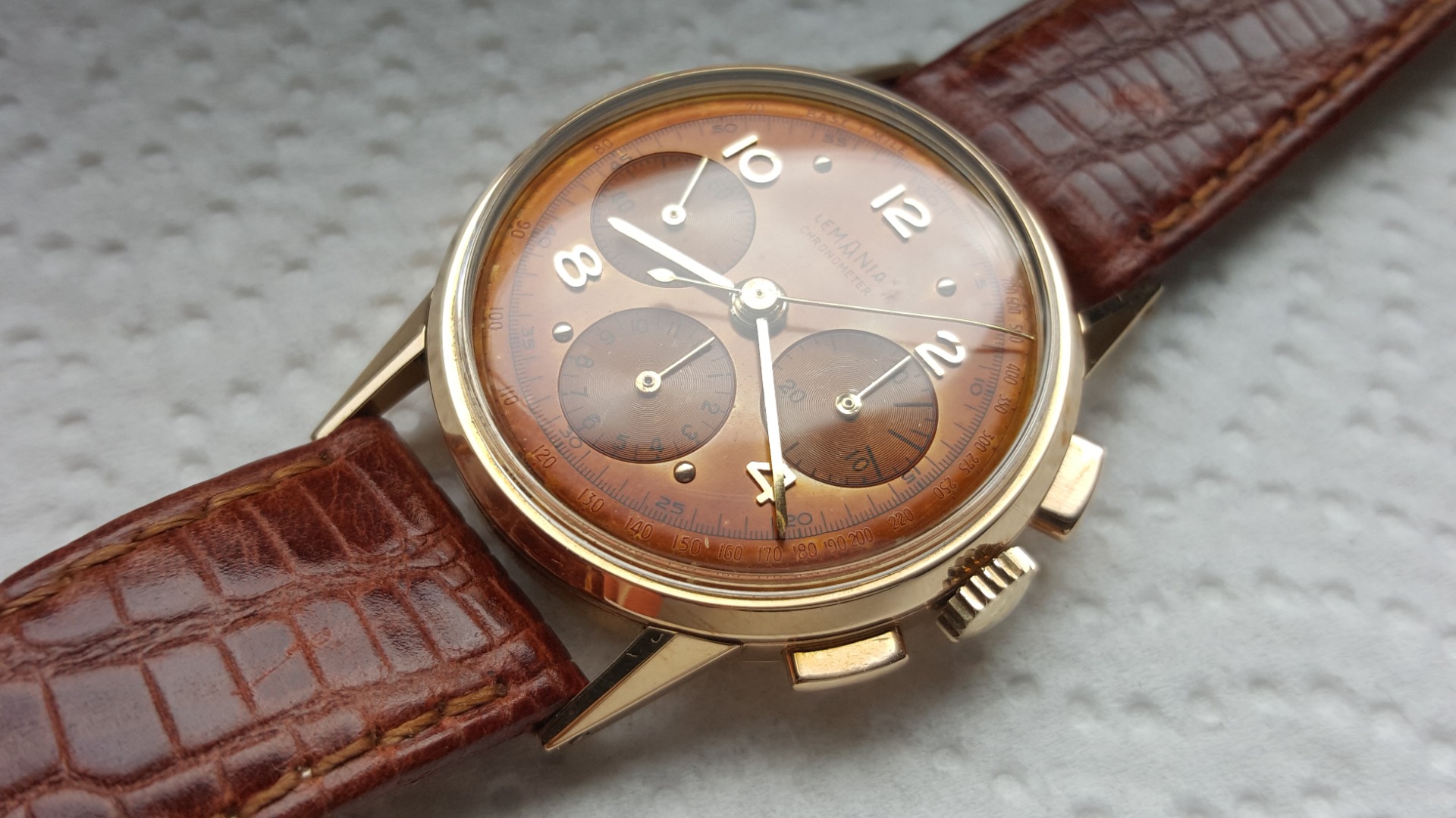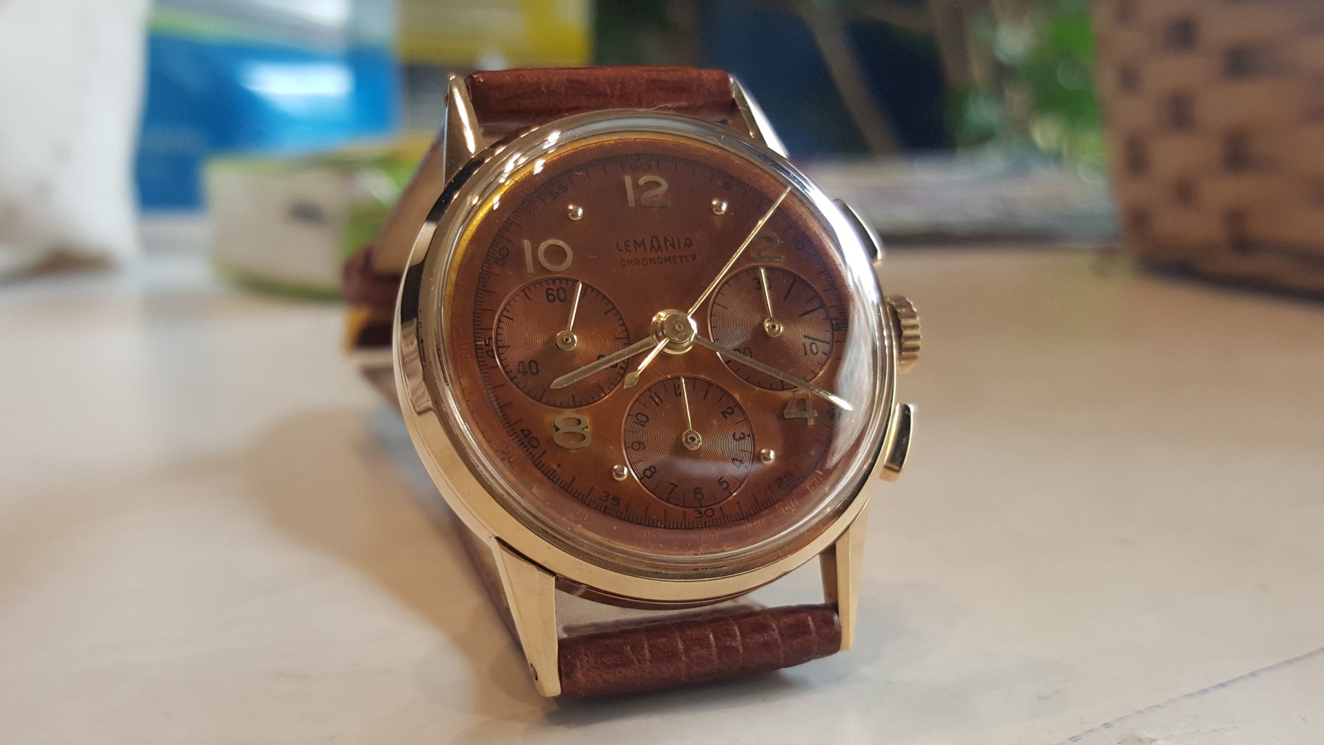 I am loving the patina on the dial. How's that for chocolates? The movement shows 'adjusted at 7 positions' hence the Chronometer print on the dial. Lemania's inhouse Chronometer standards though if i am not mistaken.