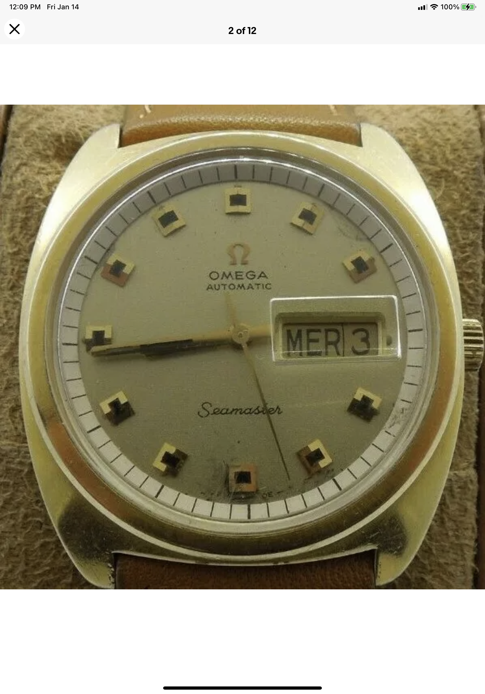 ·I used to buy and flip new Omegas like crazy, a few years back. I do wish I had held on to a few of them. Now that I am retired, I have gone in a different direction, collecting mostly new and vintage Seikos. Lately, though, I have added some new affordable Swiss watches. But yesterday, I bought this jumbo Seamaster, from 1972. It has a 40 micron gold plating, which seems to have held up pretty well. The patina is just enough to look charming. Seller says it has just been serviced, so let’s hope that’s true. I don’t care much for the color of the attached strap, so purchased a darker brown vintage looking one, and a vintage gold plated OEM buckle. I am excited to get back into collecting Omegas.