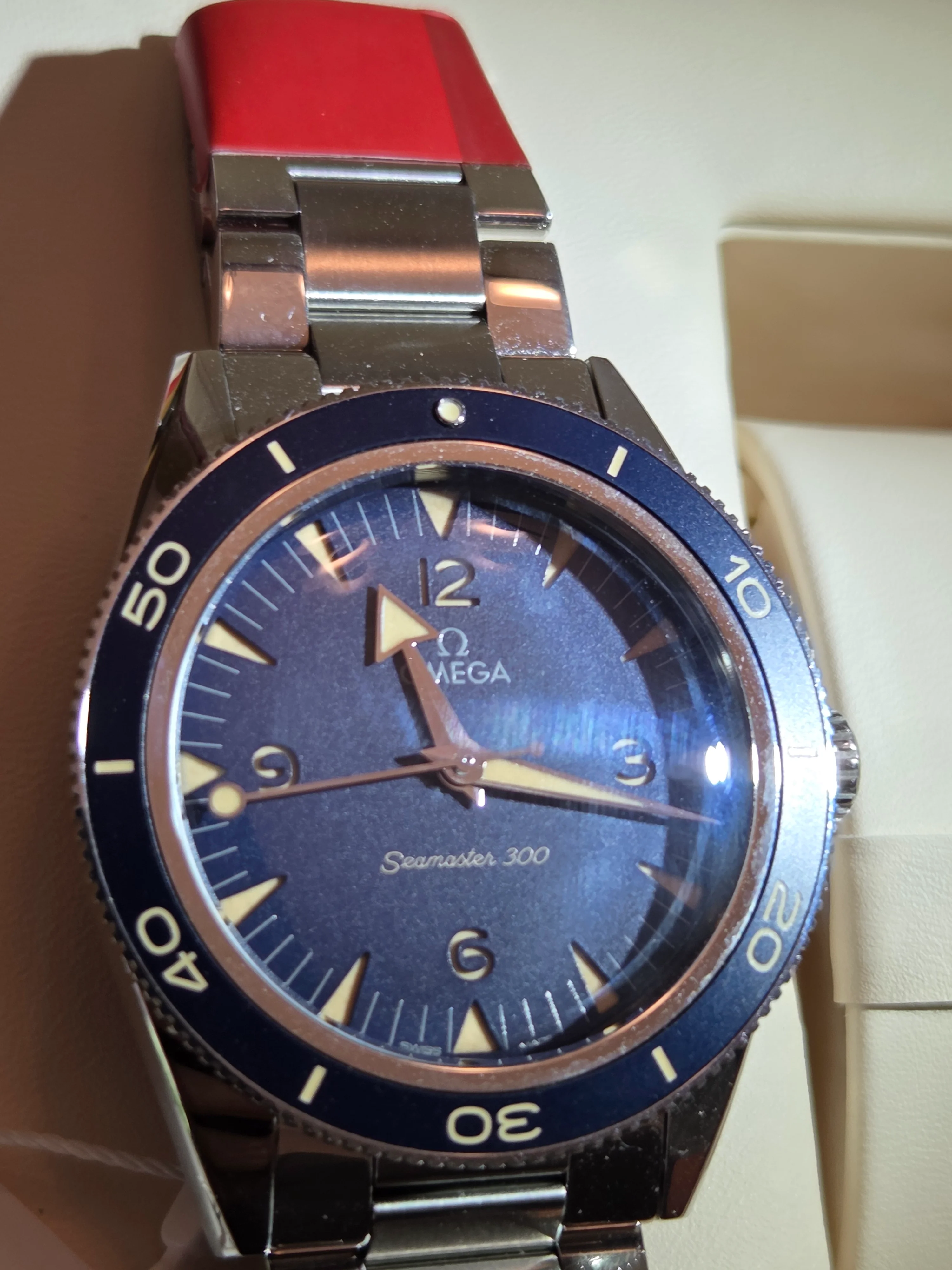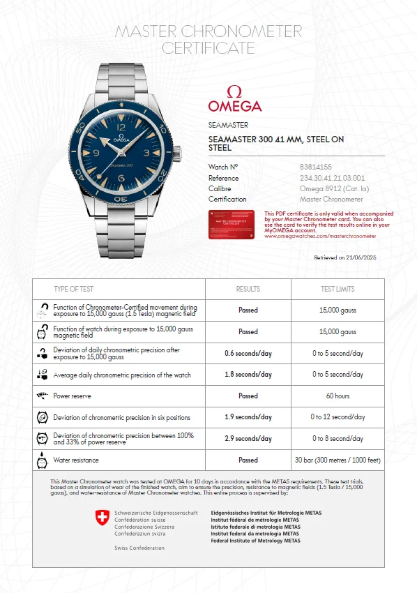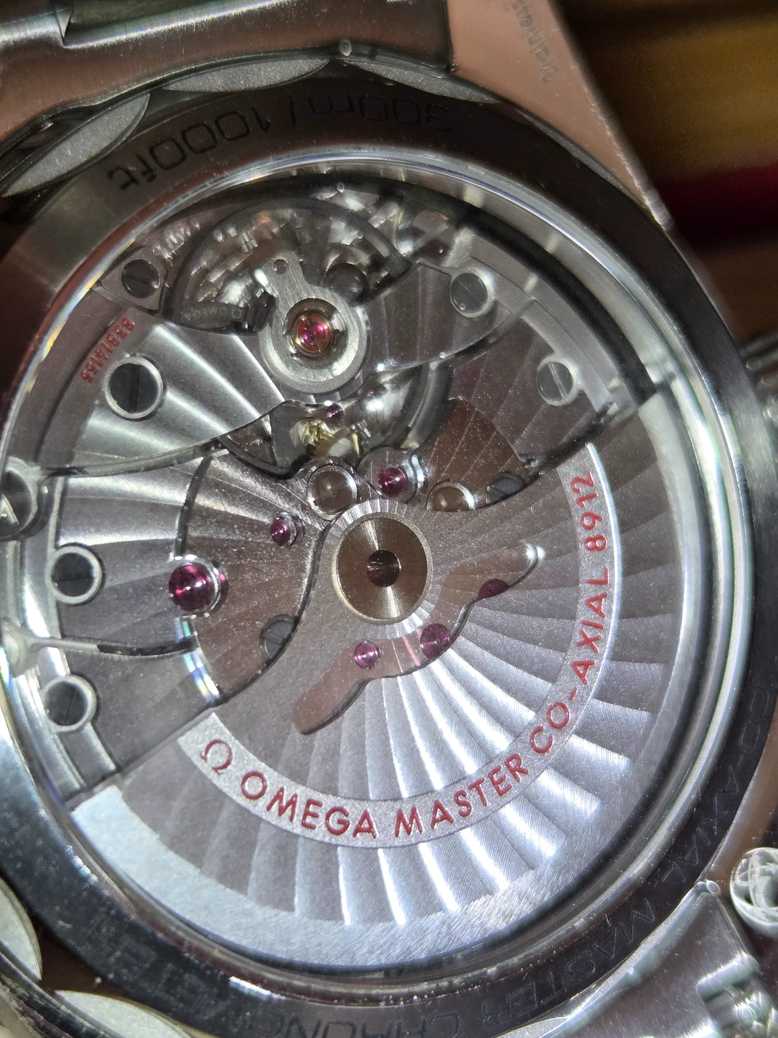 As a precaution, I did a slew of my own tests to check for authenticity. I started with the movement, specifically the escapement, which seemed legitimate. I checked the movement with a neodymium magnet, and it wasn't affected at all. (Every other watch I own stops when the magnet is applied.) All SN's match, and I was able to print off the Master Chronometer certificate on Omega's website using the card information. Furthermore, I verified that the Omega Chronometer certificate precision test results match the watch. It said that it gained 1.8 seconds per day on the test, and the actual watch gained 1 second in about 14 hours. (Lines up.)