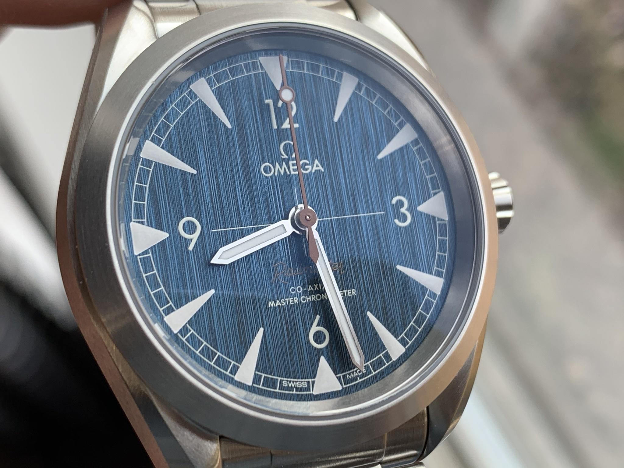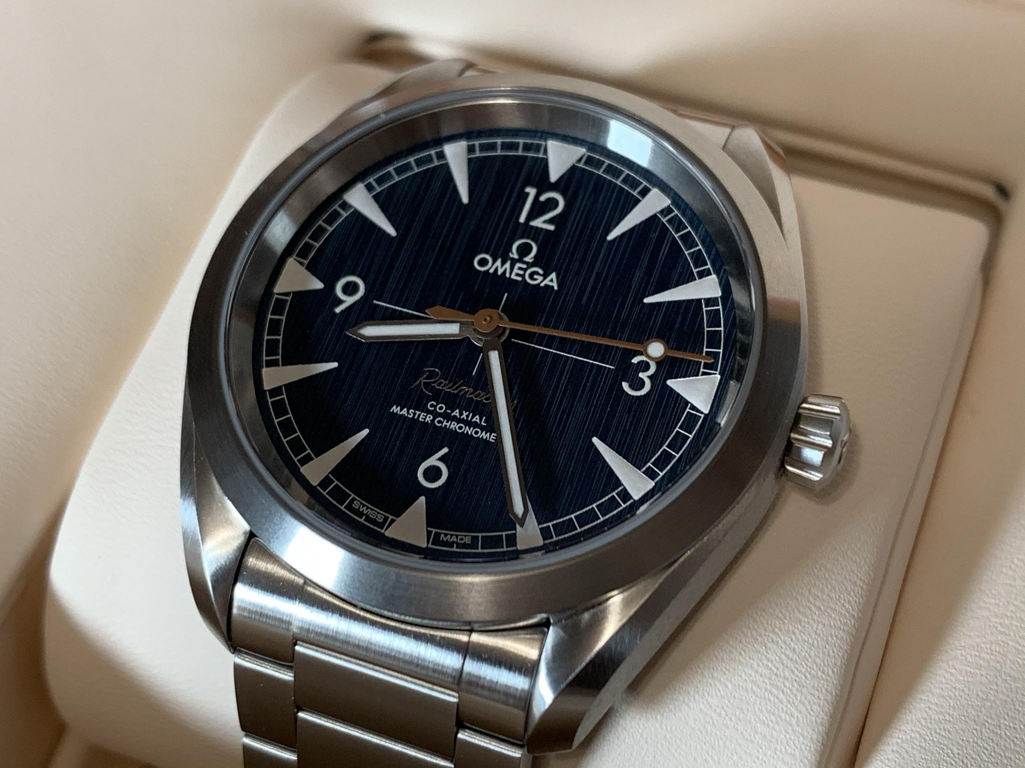 ·I got in my first Omega watch this past week, the blue dial Railmaster. Certainly, it's one of the more divisive models in the current Omega lineup, but personally, I love it. When I first saw the Railmaster with the blue dial, it drew me in a little more than the black and silver offerings. I think the choice to go with white Super LumiNova was the way to go. The "vintage" lume color suits the 1957 trilogy more in my opinion, but I admit it adds a little extra contrast on the neutral colored dials. Sadly I wasn't able to see and try on the piece in person before purchasing one. None of the Omega ADs within a 6+ hour one way driving distance actively stock the watch, so it would have to be ordered directly through Omega, with an unknown wait time, then I could come in whenever it arrived. I decided going used was the better bet, and I was able to find one for the price I wanted to pay, complete with boxes and papers. Not being able to see it firsthand, I wasn't 100% sure that I would be smitten with it, but getting it in and spending some time with it, my doubts are gone.