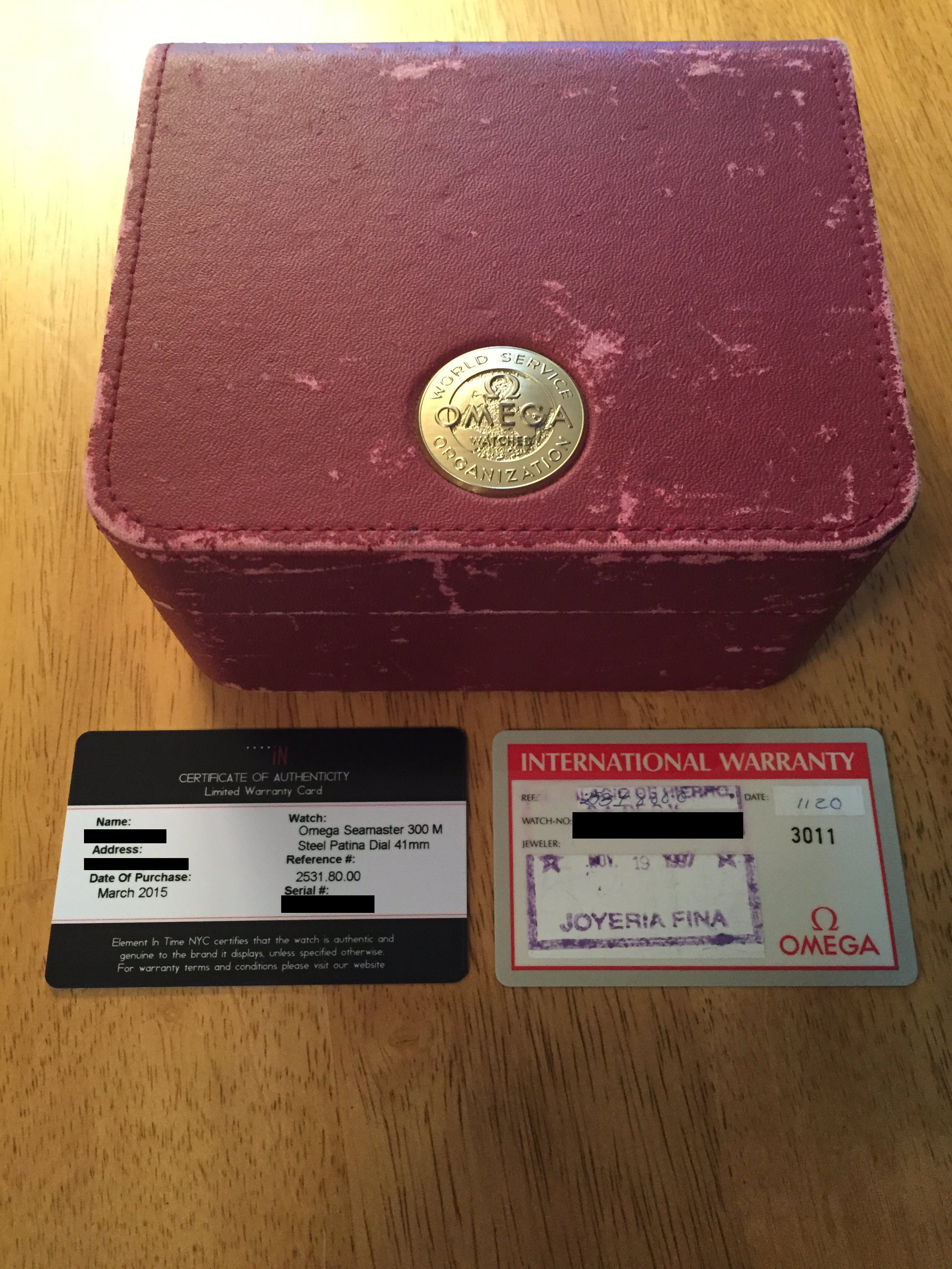 Everything was meticulously packaged when I received it; you could tell someone took a lot of care in preparing the shipment. Inside I found my invoice, and they included the original case (the red case, not the white cardboard box) and the Omega International Warranty Card. They also included their own certificate of authenticity with a limited one year warranty. They even threw in a travel case for the timepiece and a heavy duty polishing cloth.