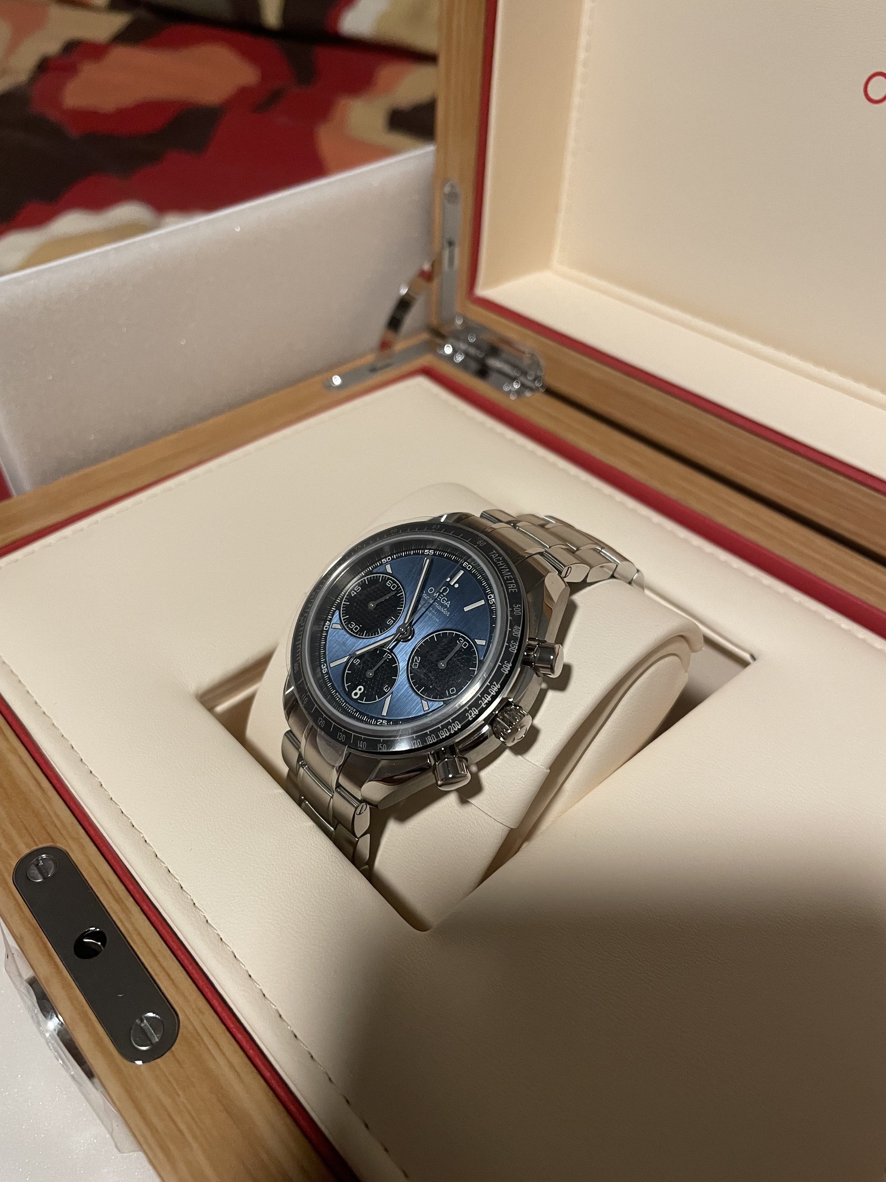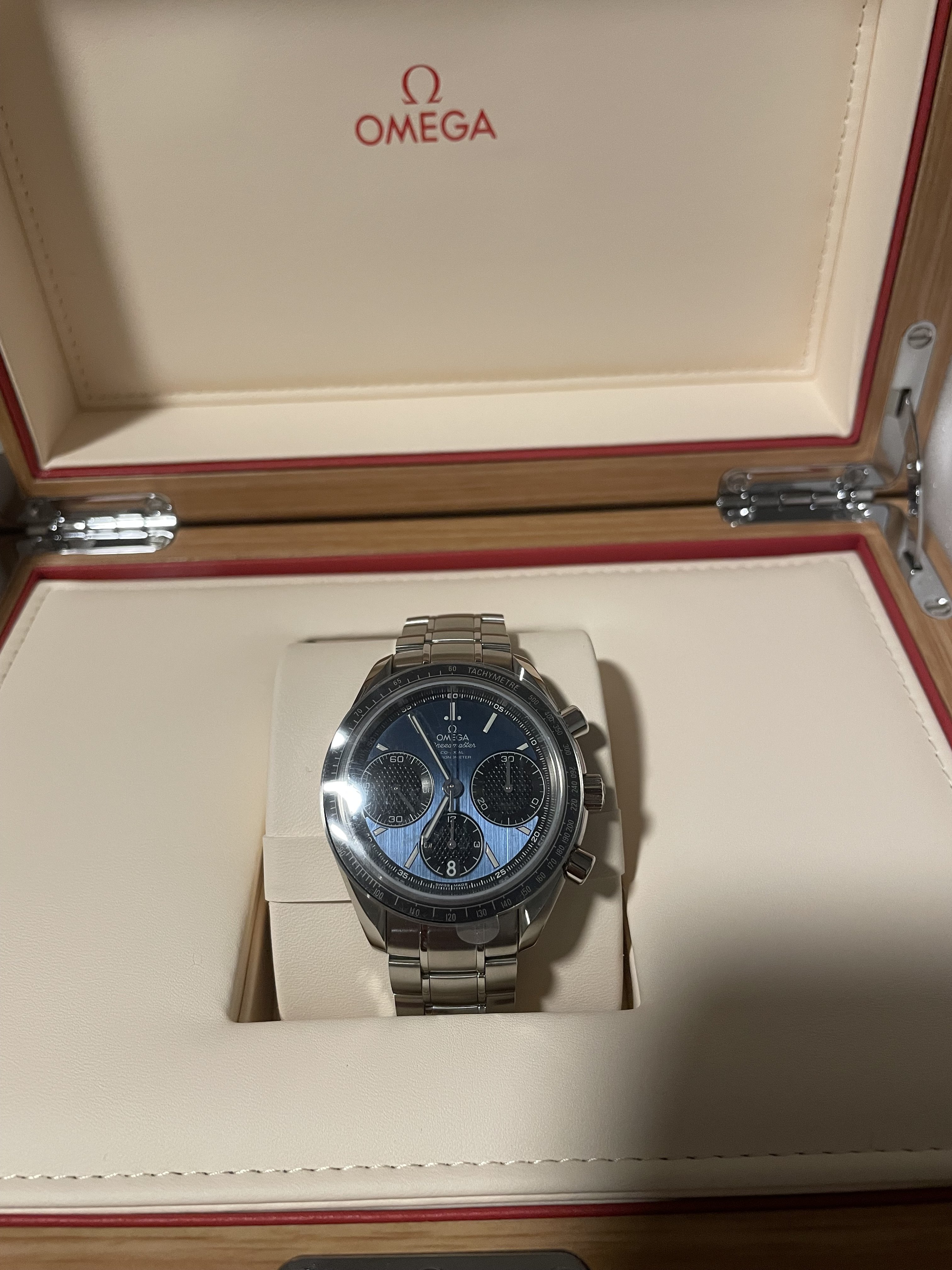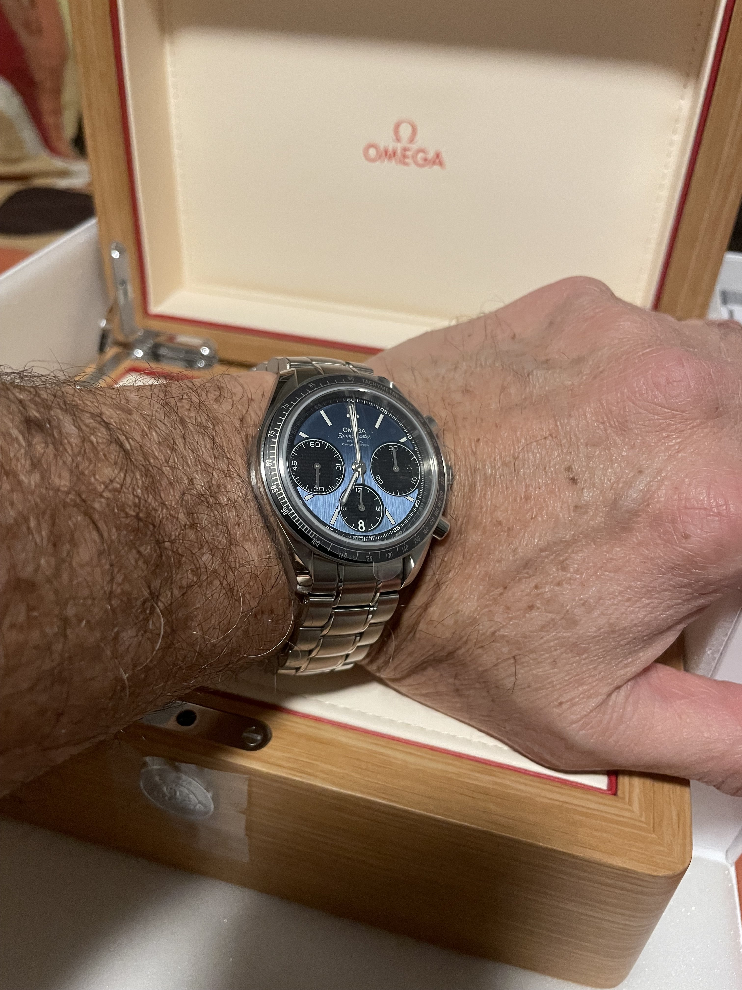 Looks great! This color changes makes it more unique. It's hard to understand this dial from photos for sure. Racing leather strap fits also very nice. This year I will purchase a Nato from Omega. It will make me having the geniune buckle and metal parts for Nato and leather straps. Then I’ll buy a racing style black leather strap and a travel box. Then the set will be completed. I hope