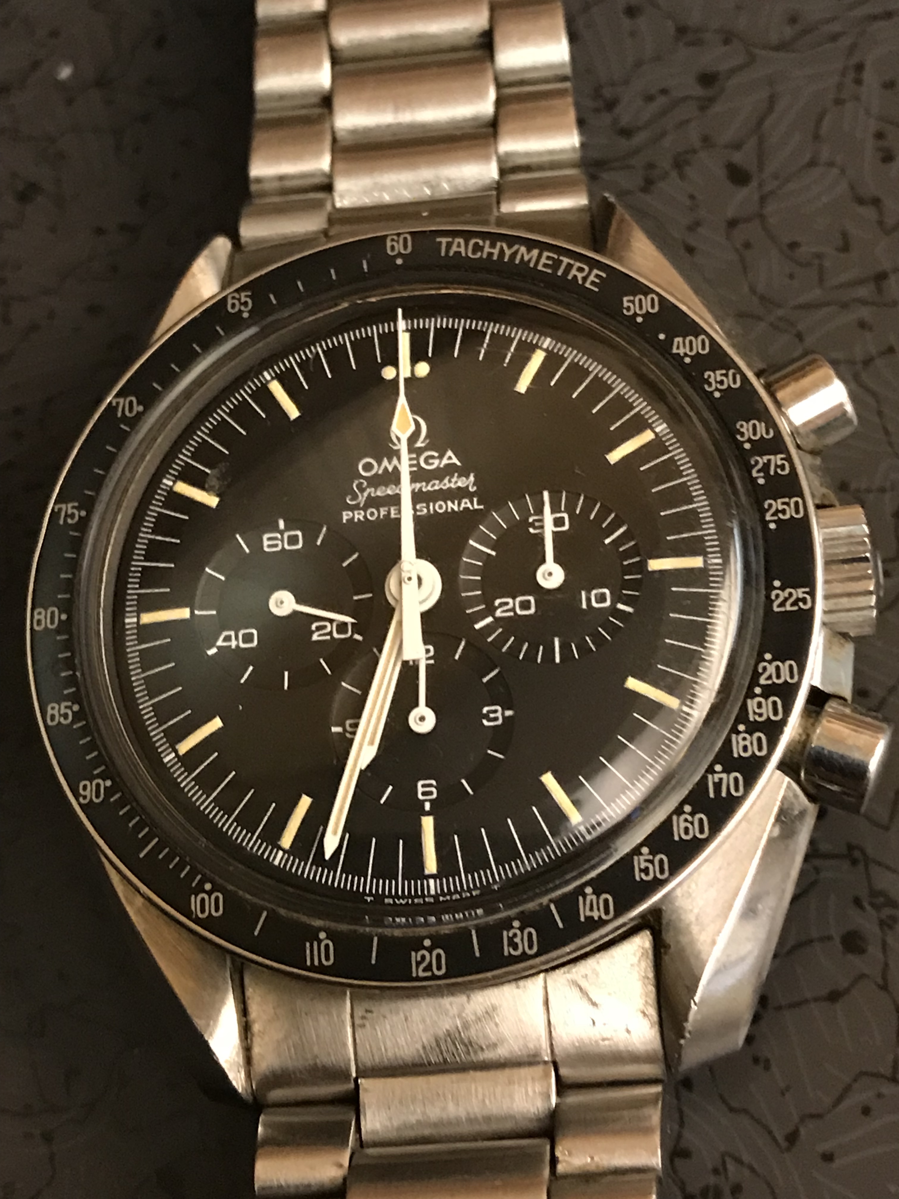 It’s a 145.022-74 or 76, with a C2 medium S dial. I did have it serviced a single time, by a trusted watchmaker, about 15 years ago. (Yes, I’m ashamed.) Of course, I still have it. It’s all original, at least for the years it’s been in my hands. It’s still pretty clean.