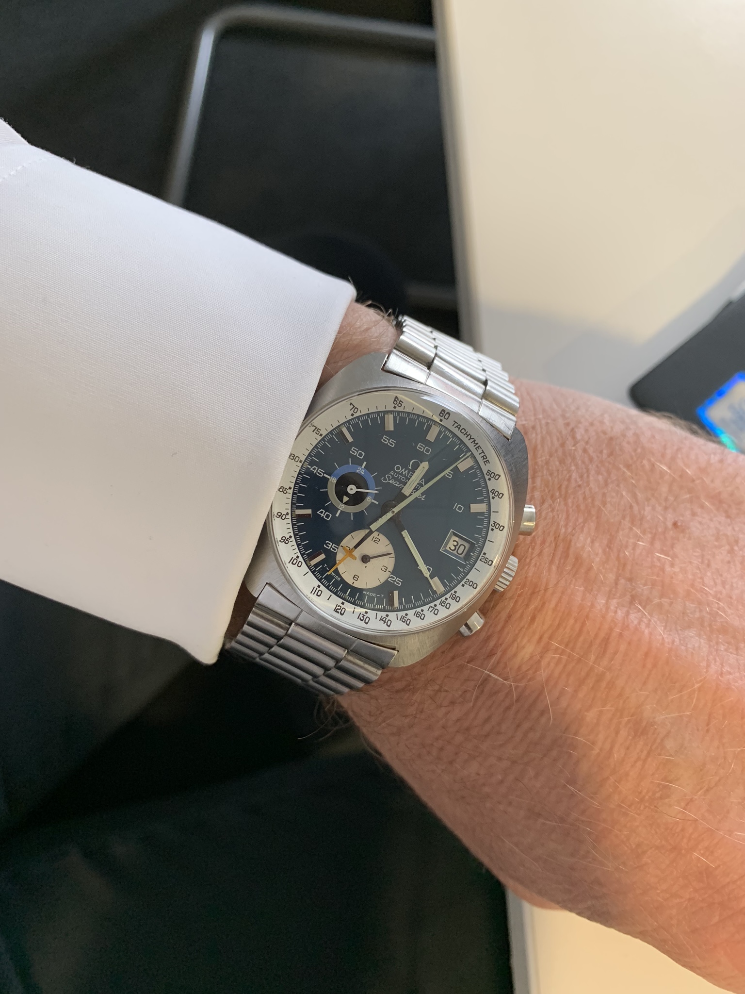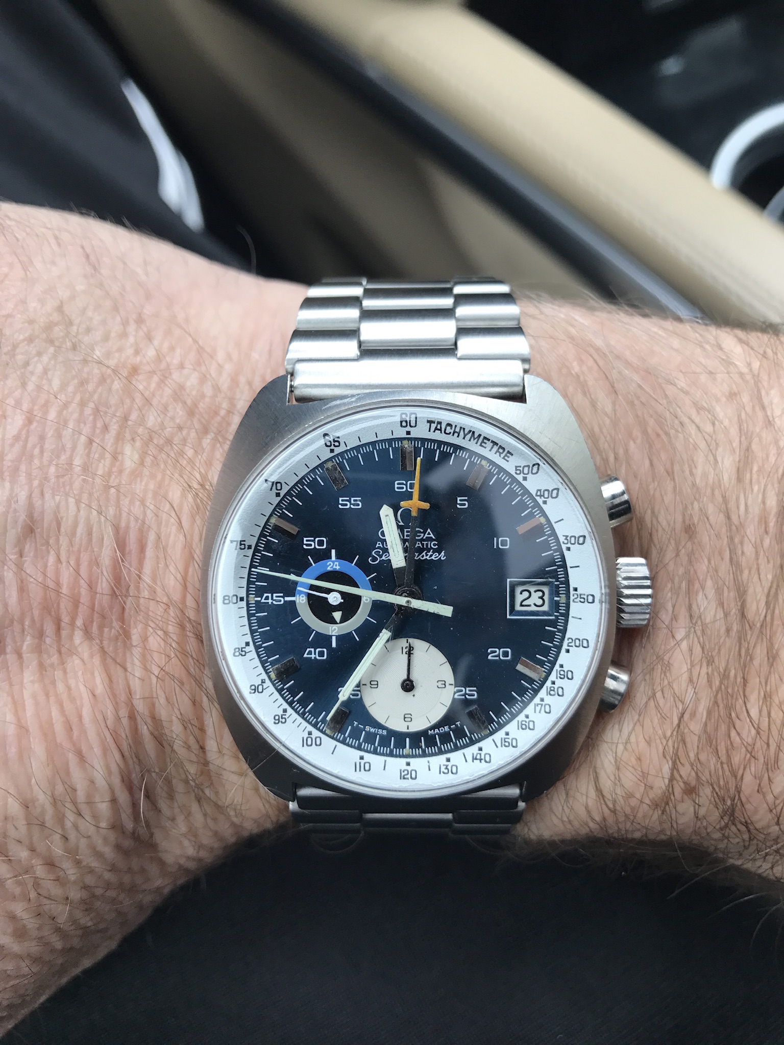Got this in a trade, been reading on the unique 1040 movement. Had to put an old Mark 2 bracelet on it, but love the look. Just had it serviced, so it’s running perfect. Very happy. From 1971 as best I can tell.