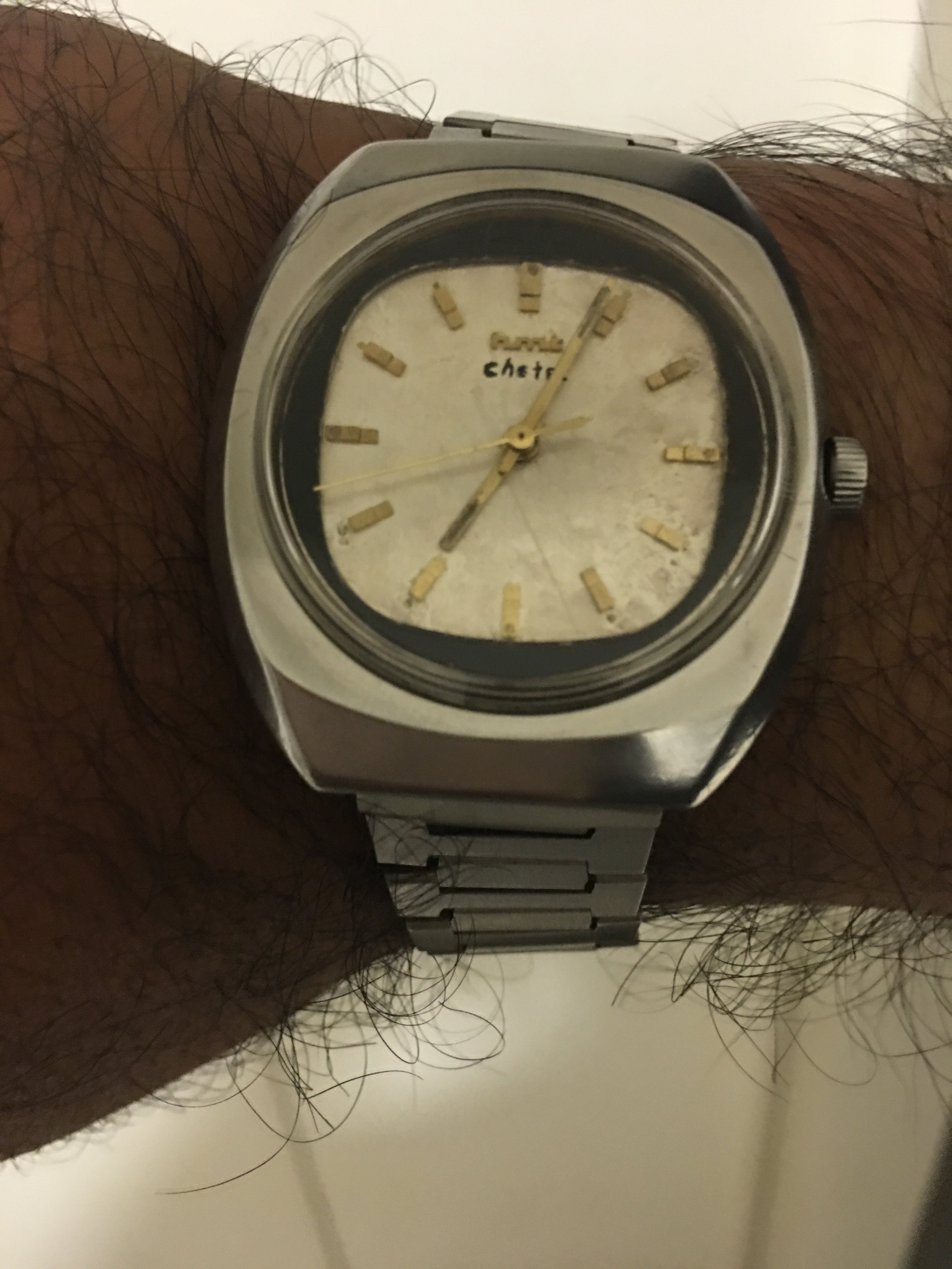 I’d told watchmaker to not change dial or polish it but looks like he slightly buffed it nevertheless.. and wrote the model name rather poorly on the dial.