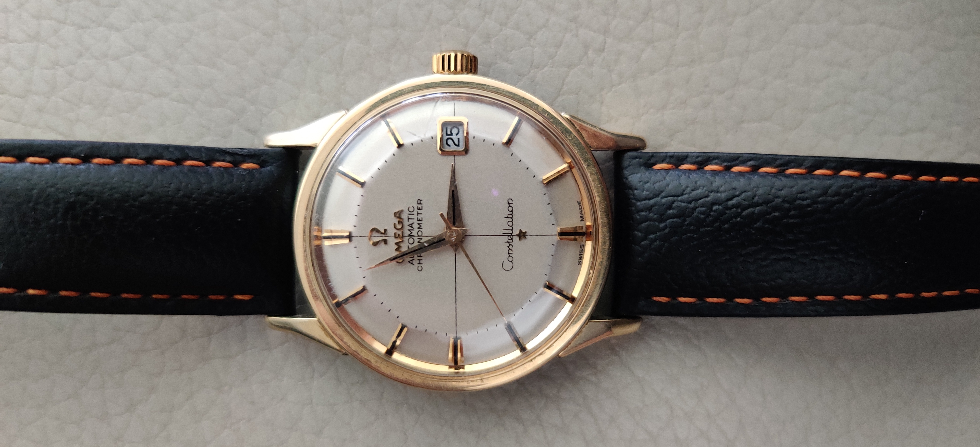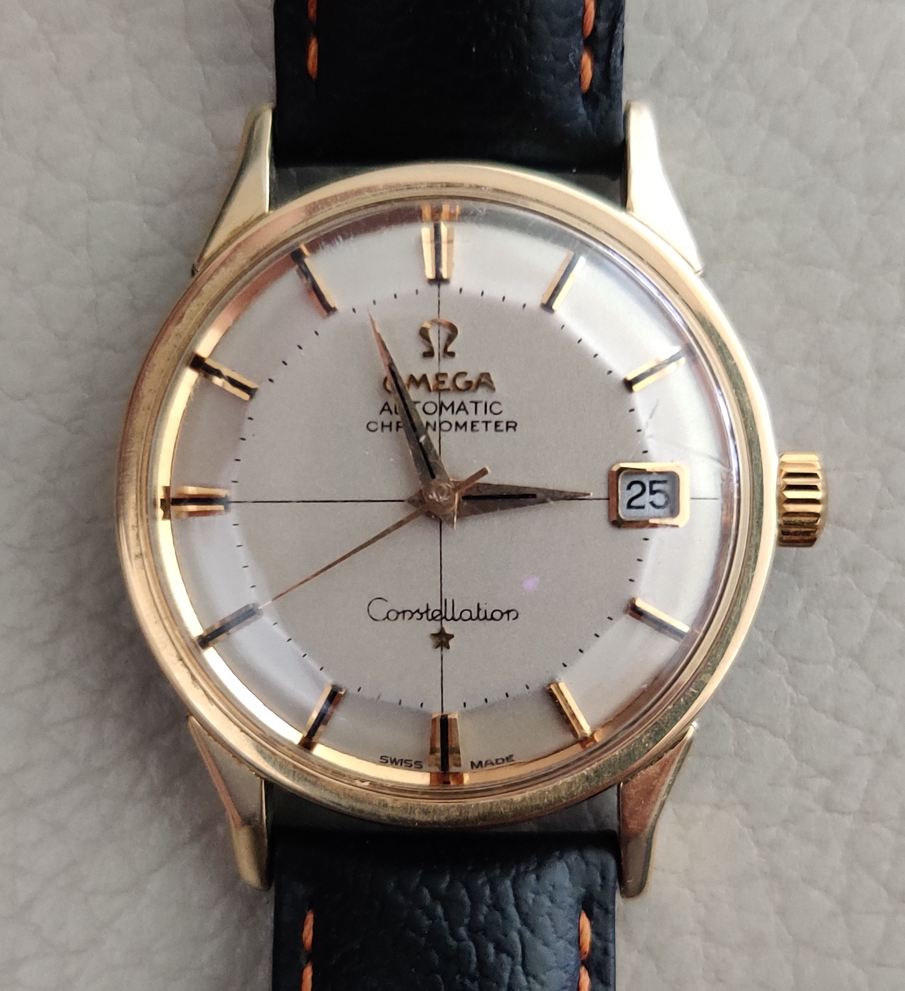 I'm new here and to Omega watches. I inherited my late father's Constellation and just wondered if anyone can tell me anything about it. He got it in Bangkok in the early 1960's and he had it on his wrist every day for as long as I can remember. I know the strap and buckle aren't genuine and I'm pretty sure the crown was changed during a service but apart from this I don't really know anything about it.