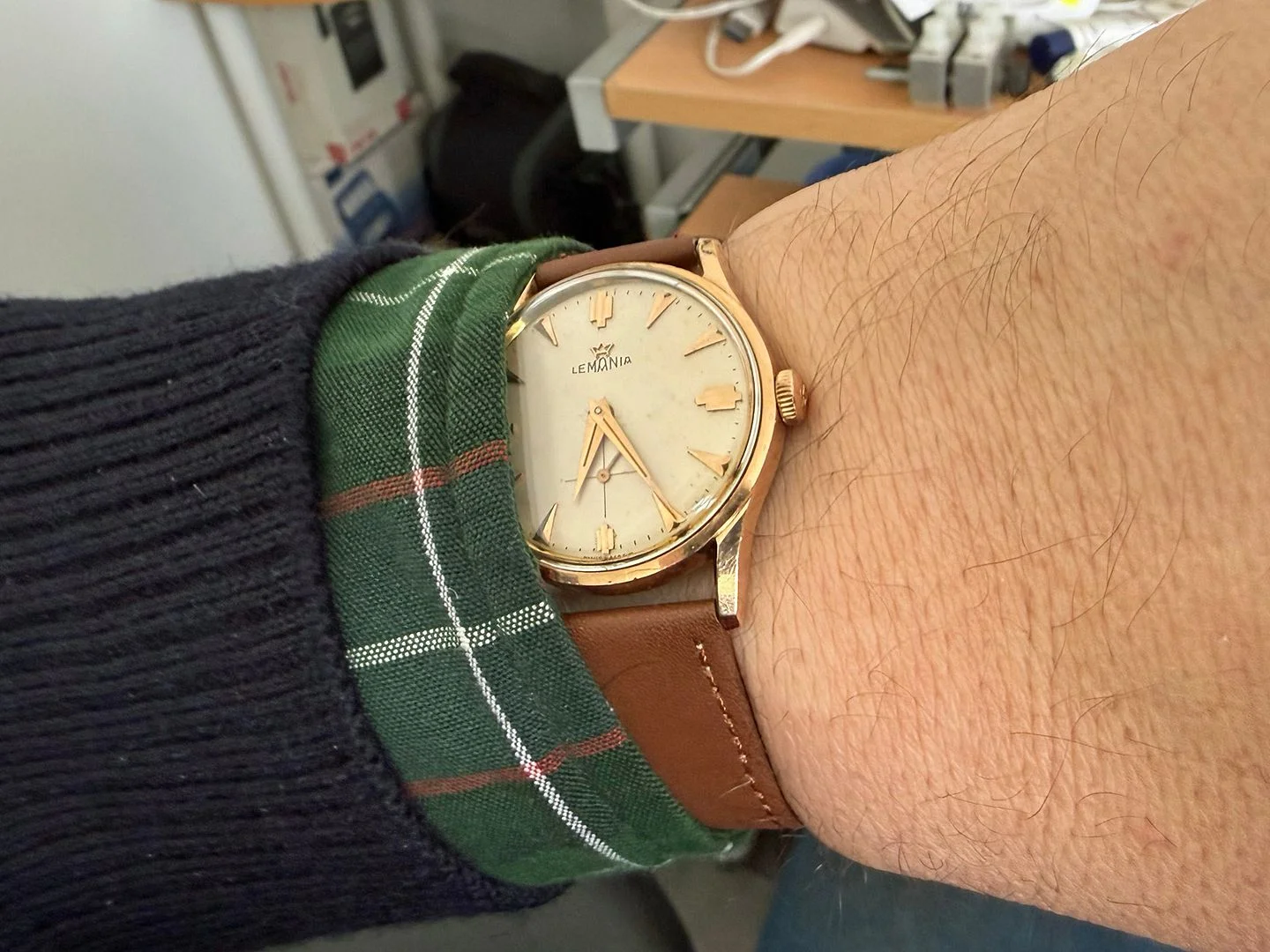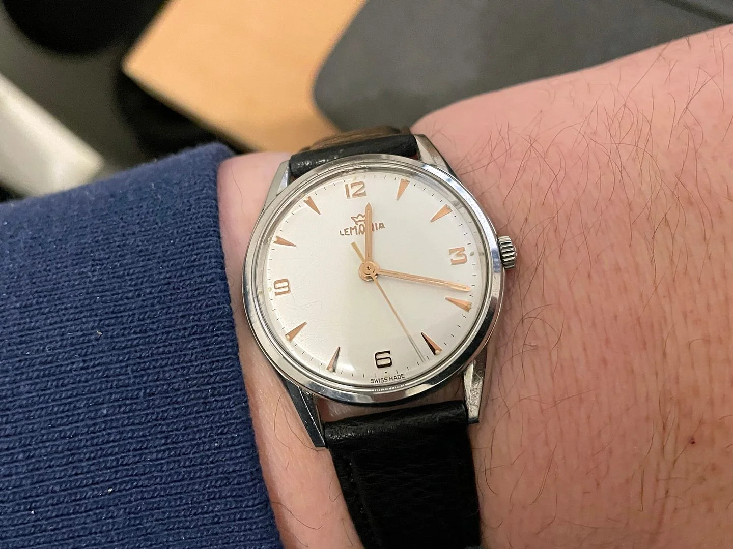 The calibre 3000 Lemania I bought last week on Catawiki finally came in today, or rather I had to pick it up from a Post Office. But the wait was worth it. This watch is gorgeous, much better looking than what the seller's picture had led me to believe. Here is a quick shot I took right after opening the package.
