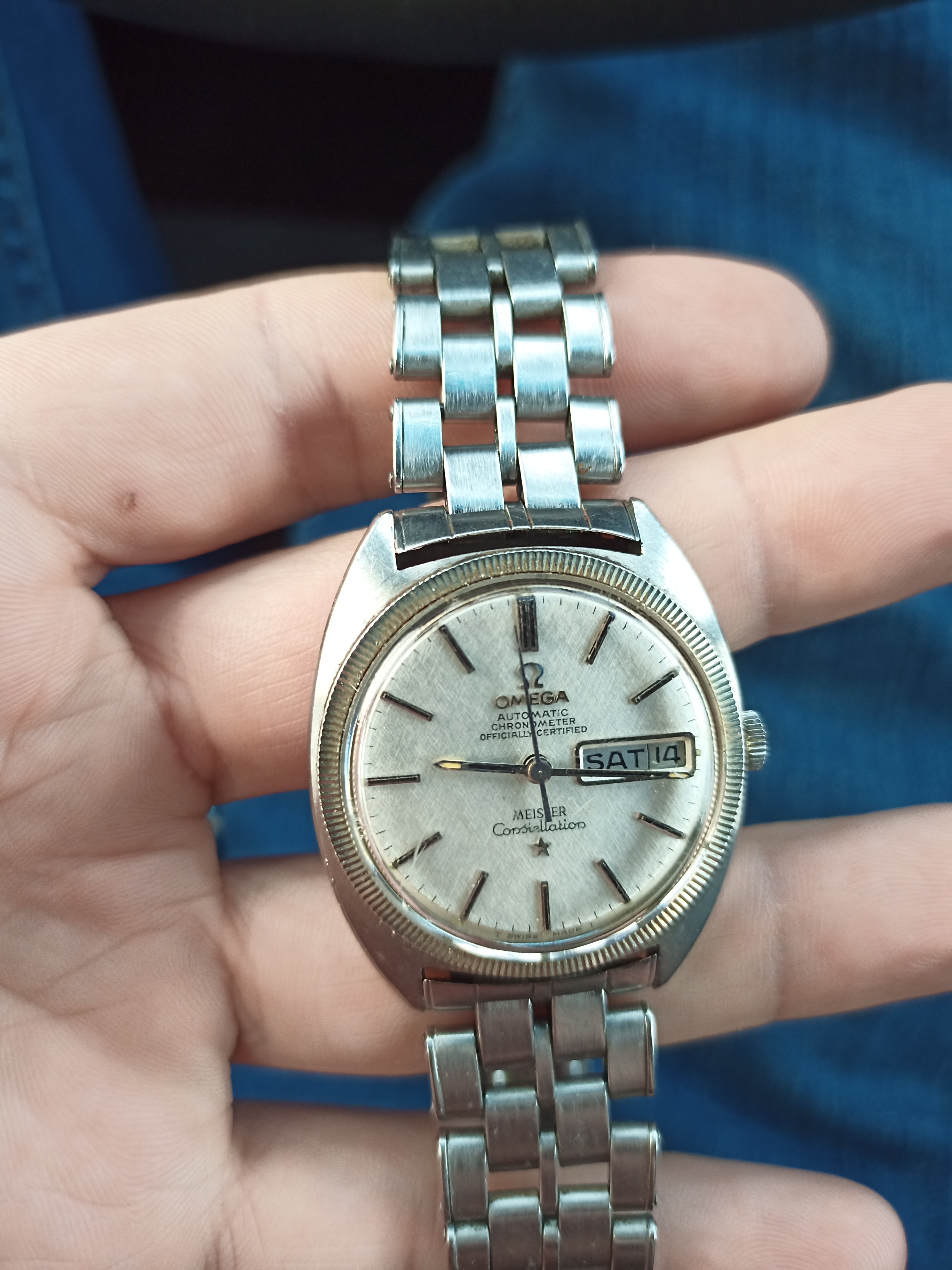 The fourth one, which will probably be my favorite, is a c case constellation I just bought on craigslist. The band is stretched ( I would like to fix of have fixed) and its dirty but seems to run well. I have not see the movement yet but it is push/pull to change the date.