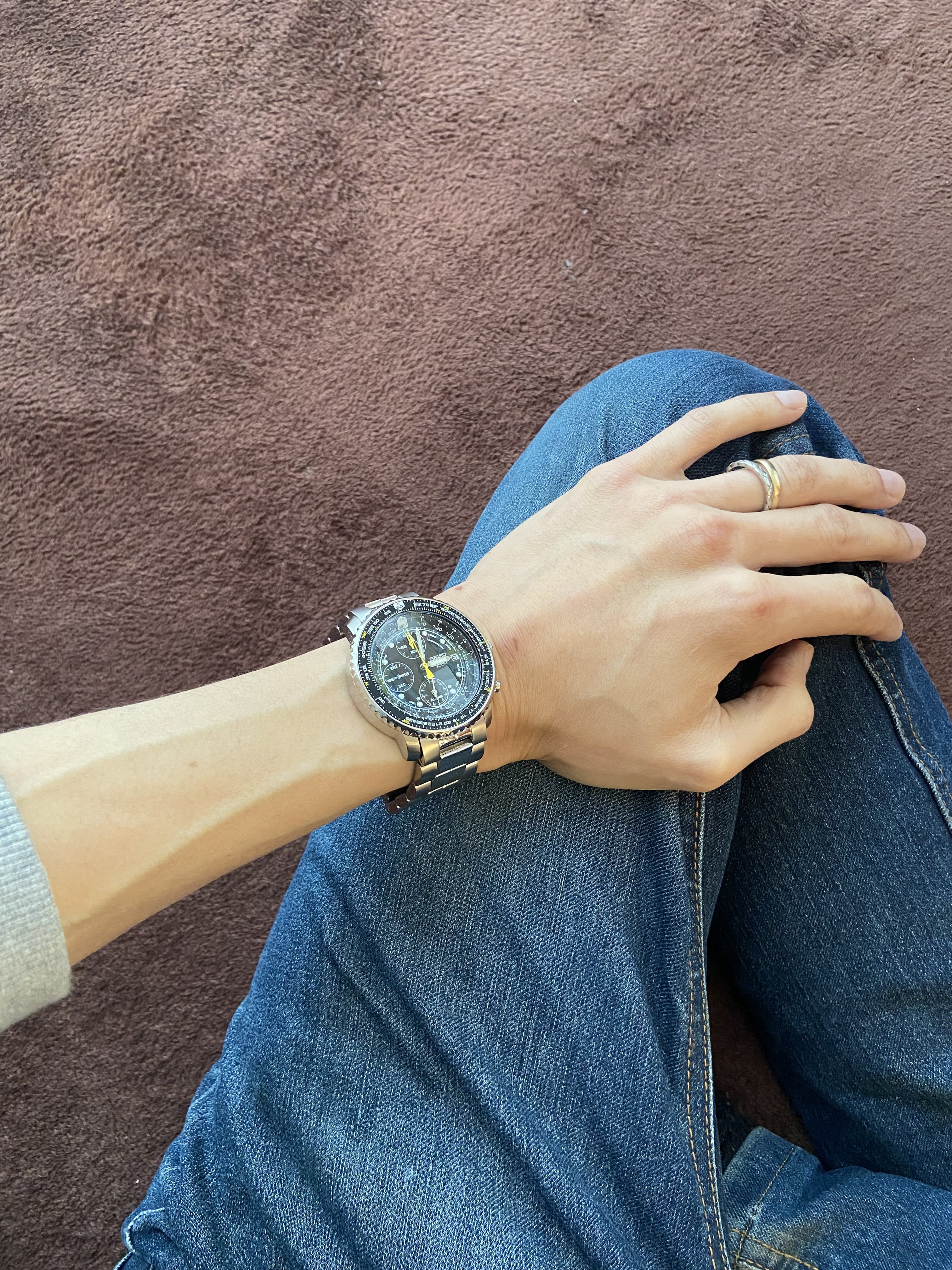 This is pretty the biggest one I can put on comfortably I think and due to the bigger bezels and smaller watch surface area, it give off a smaller than actual dimensions, ( the watch face part is only 32mm, including the slide bezel and it’s 42mm).