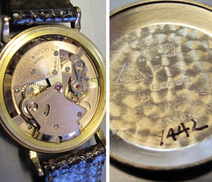The “outer” case back come without inscription or groove. The “inner” case back was marked with the old omega symbol and 9CT. It was the first omega with that kind of the case back in my collection.