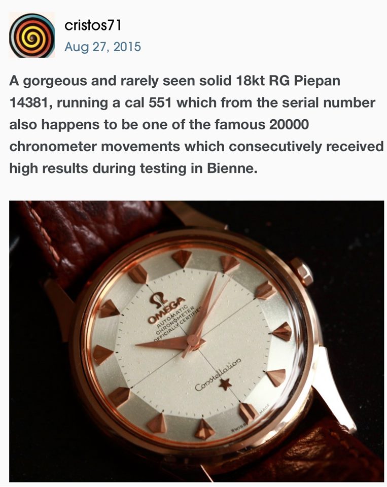 From @TexOmega 14381-1 with low serial number (Uncommon version "RE at end of CHRONOMETRE", the low serial number, with piepan and large arrowheads plus the special factory order Luminous package.)