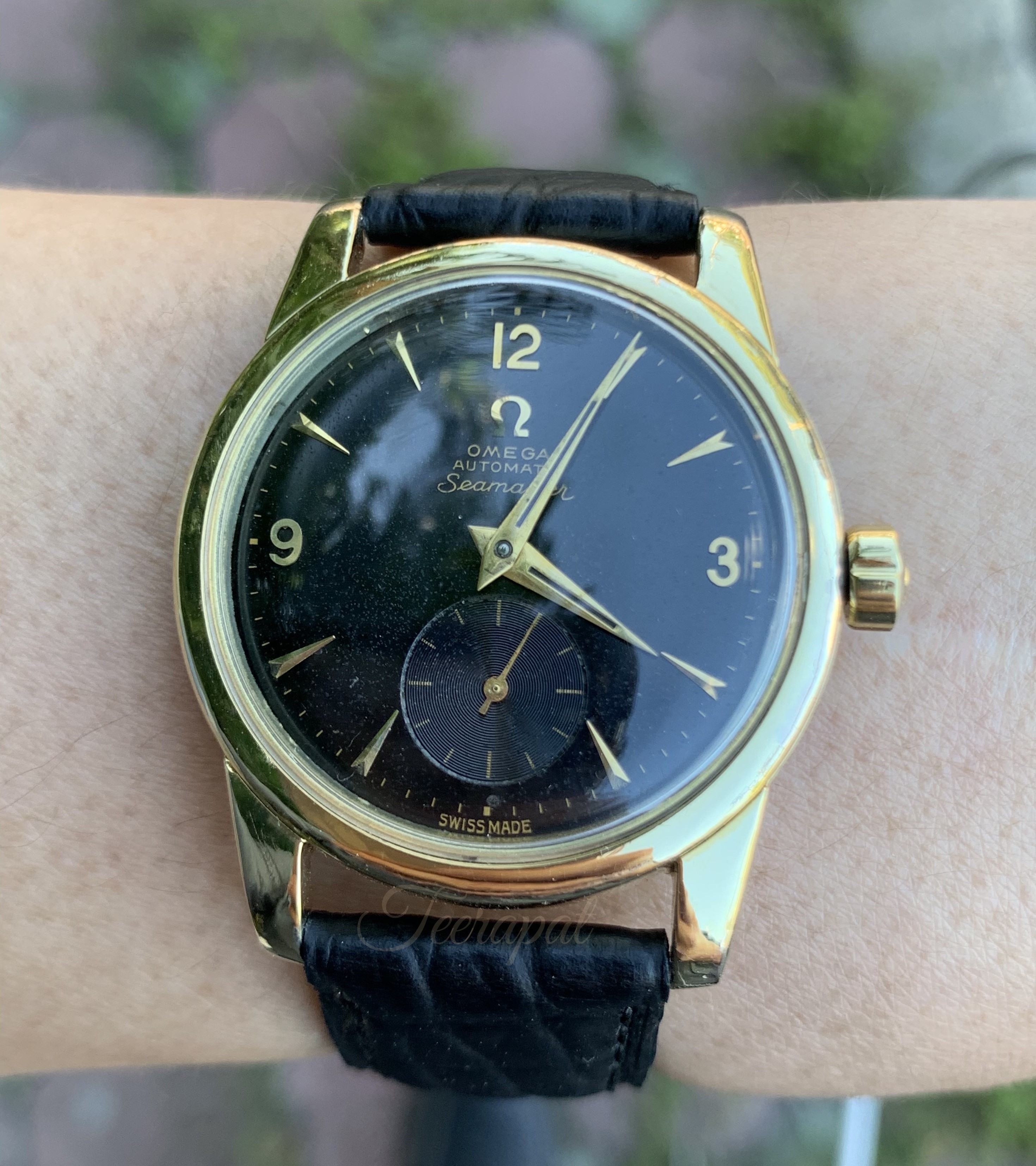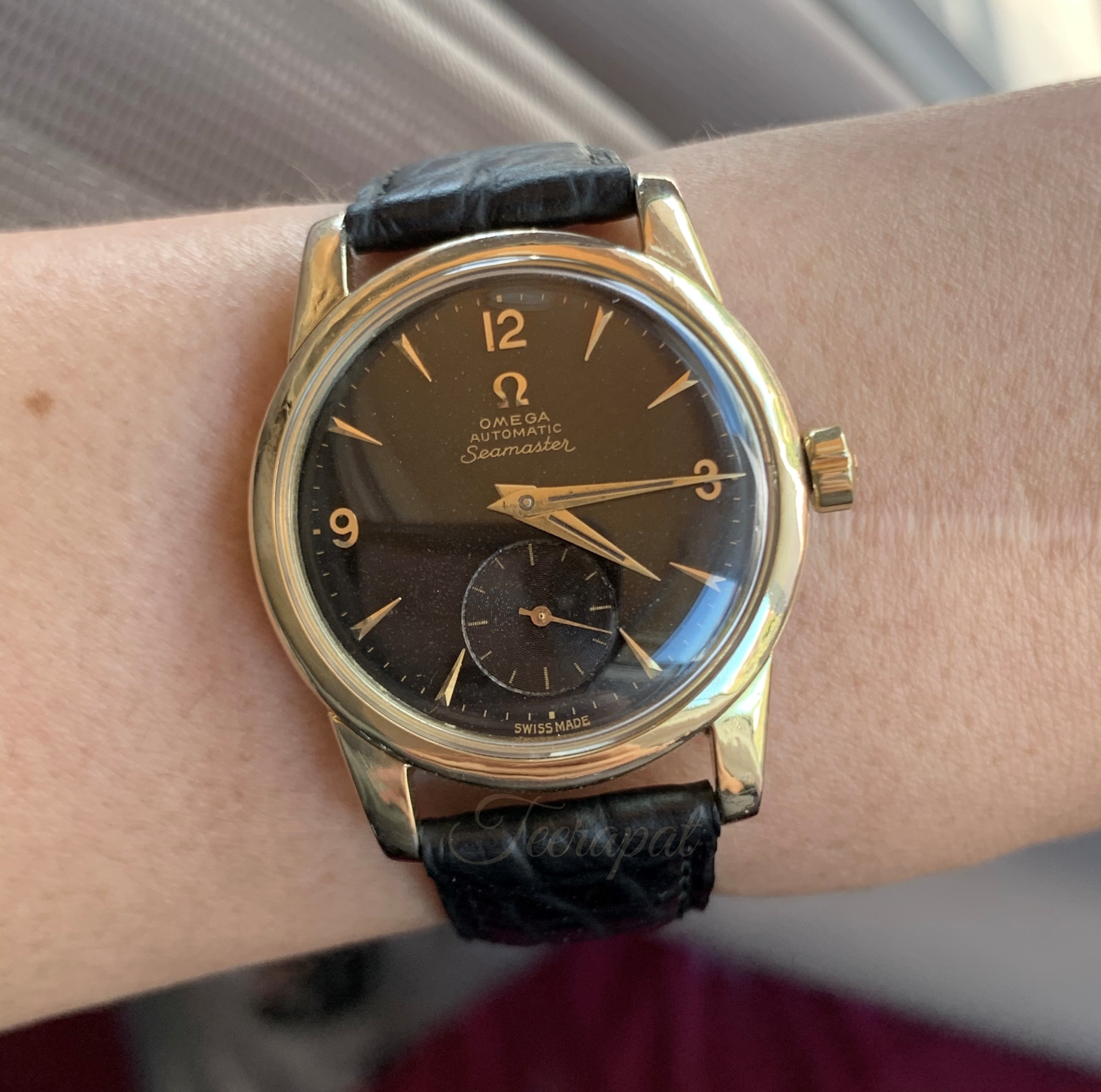 It was Omega seamaster ref.2848-1 with uncommon original black dial, serial no. 14,66x,xxx (around 1955) and powered by caliber 491.
