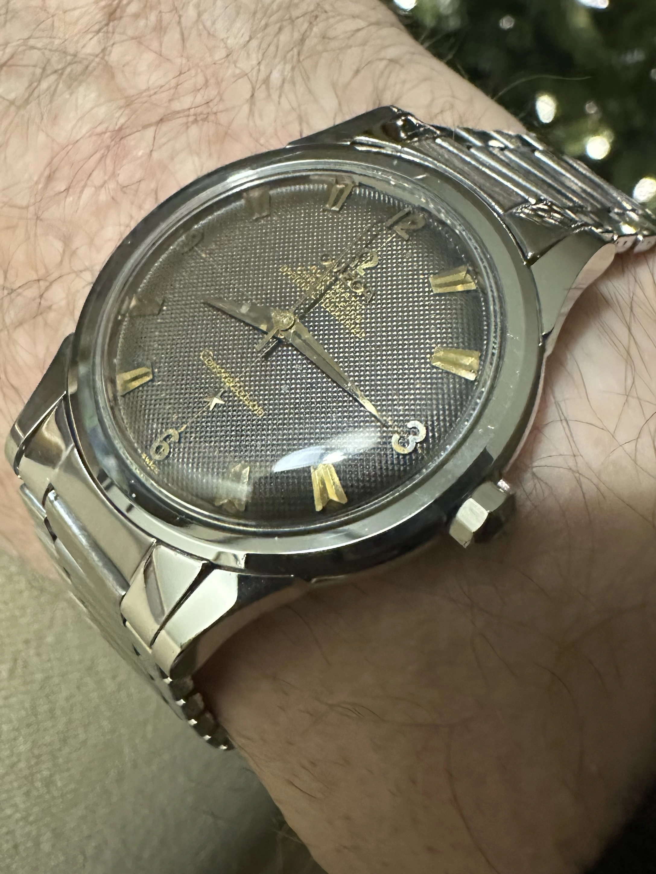 Finally, I can get this one which I believe original black pie pan dial with some patina.