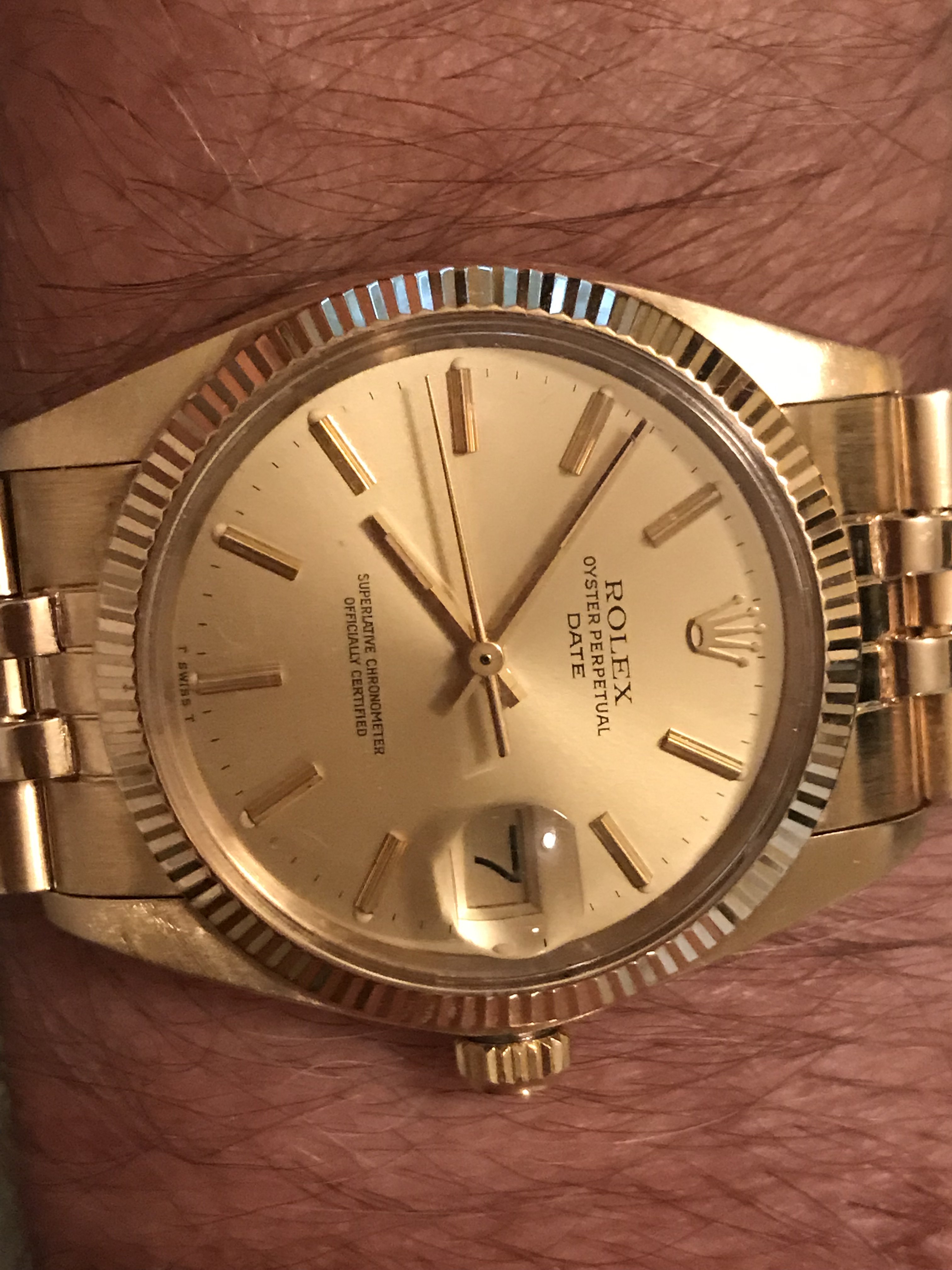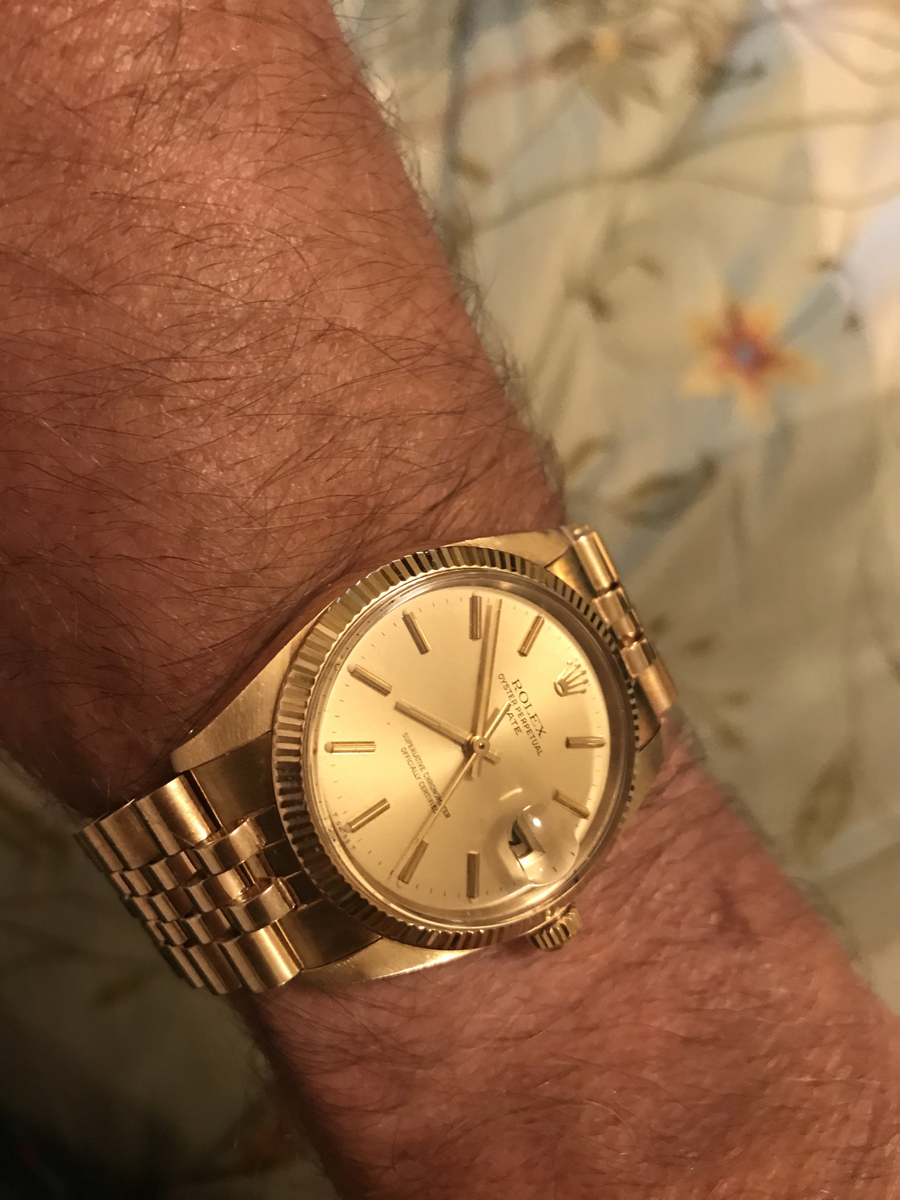 I am very close. It had belonged to his father-in-law (was a gift to him in 1978 from a legal client) but he was a gold DJ/ Presidential kind of guy and found this one a “young man’s watch” so gave it to my friend. He wore the crap out of it for 20 years and it was trashed. He traded it to me for vintage stereo gear and I have since had it redone and sourced a correct jubilee for it (was on a generic bracelet). I plan to give it to his daughter eventually (she’s 22 and just starting her career in the film production industry). Despite my friend having no real sentimental affection for the watch, it has been in her family for 2 generations, so I feel it is rightly hers....eventually....when I replace it with a 1603.