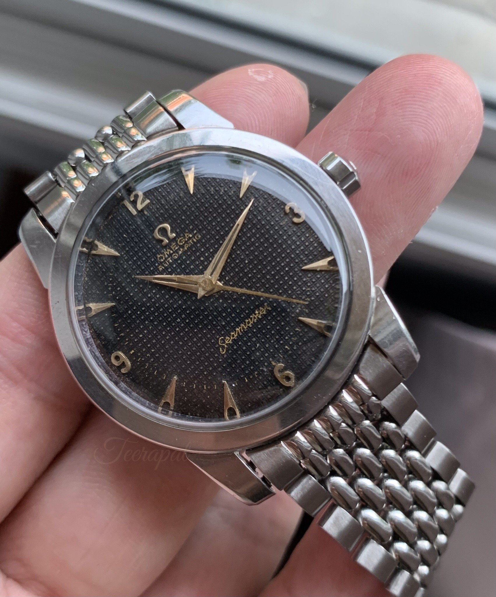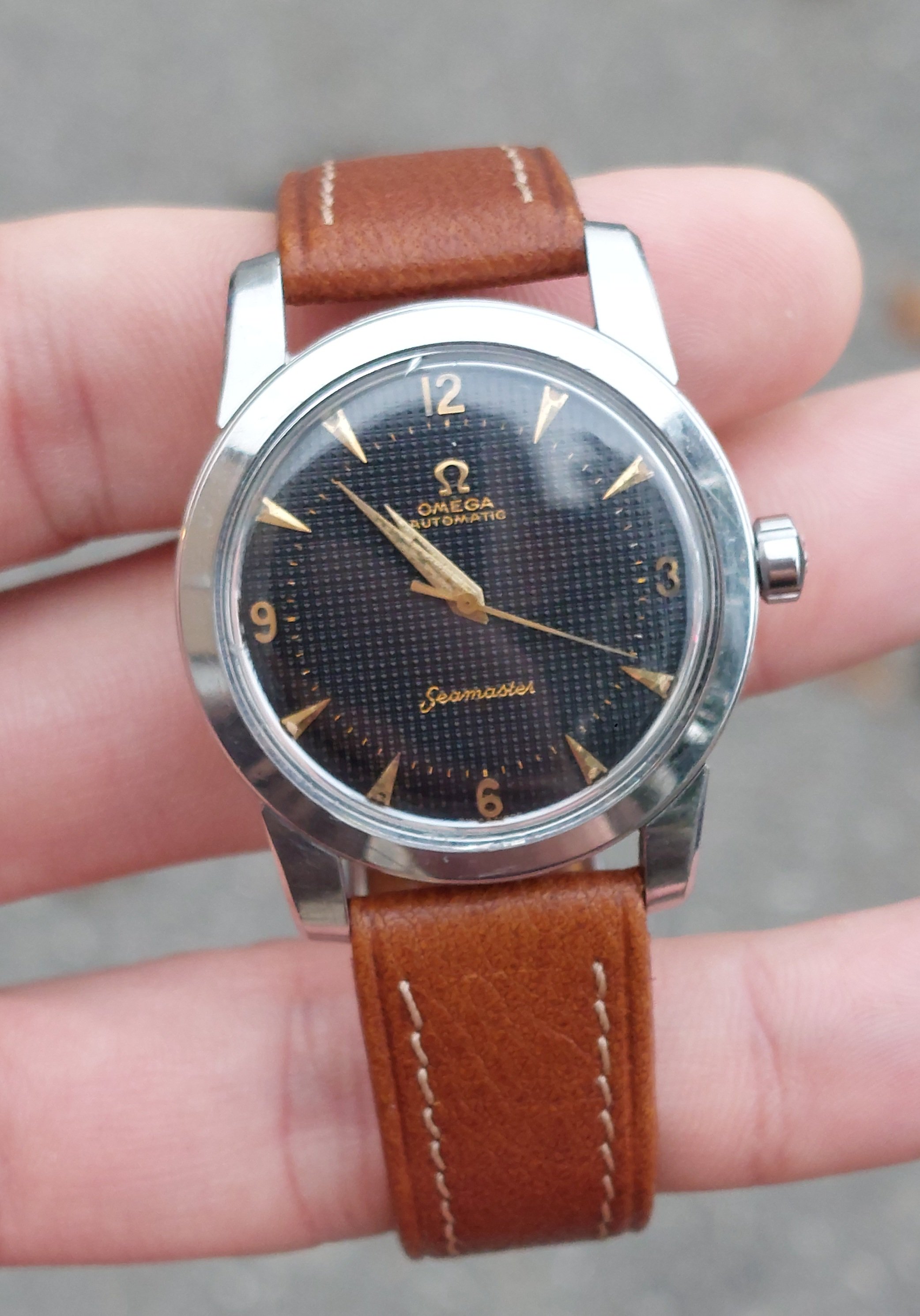 Recently, I have just acquired seamaster with uncommon black hobnail dial in a steel case.