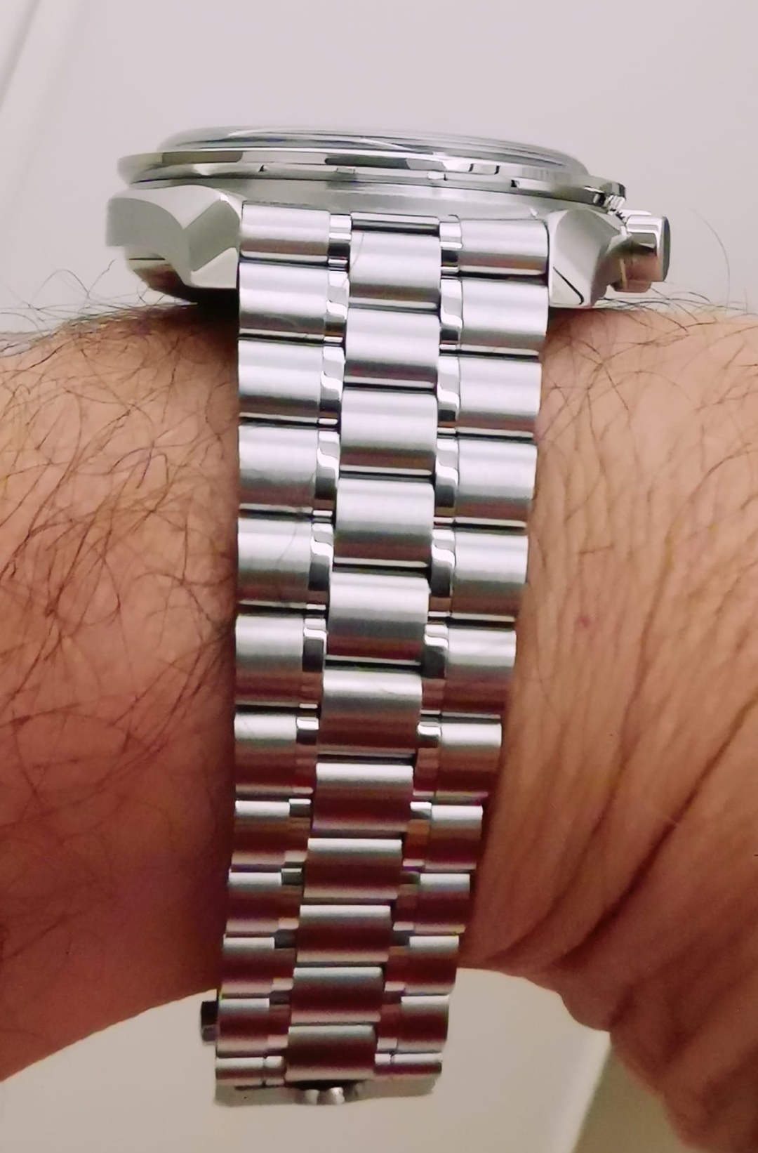 Applied logo, bracelet with shiny elements and finally the visible movement (what a show) made the difference.