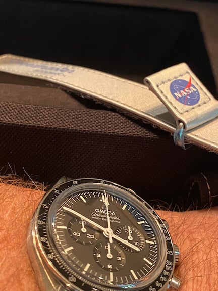 The bracelet. Having owned three previous moonwatches, this is a major upgrade that will take some getting used to, i.e. the lightness of the bracelet first and foremost. The sheer and feathery feel is definitely a breakthrough for the band. What isn’t is the lack of on the fly adjustment for the band - that would be so welcome. Love the new clasp with the Omega badge on the middle top. The taper of the band will also take some getting used to, but I like it as well.