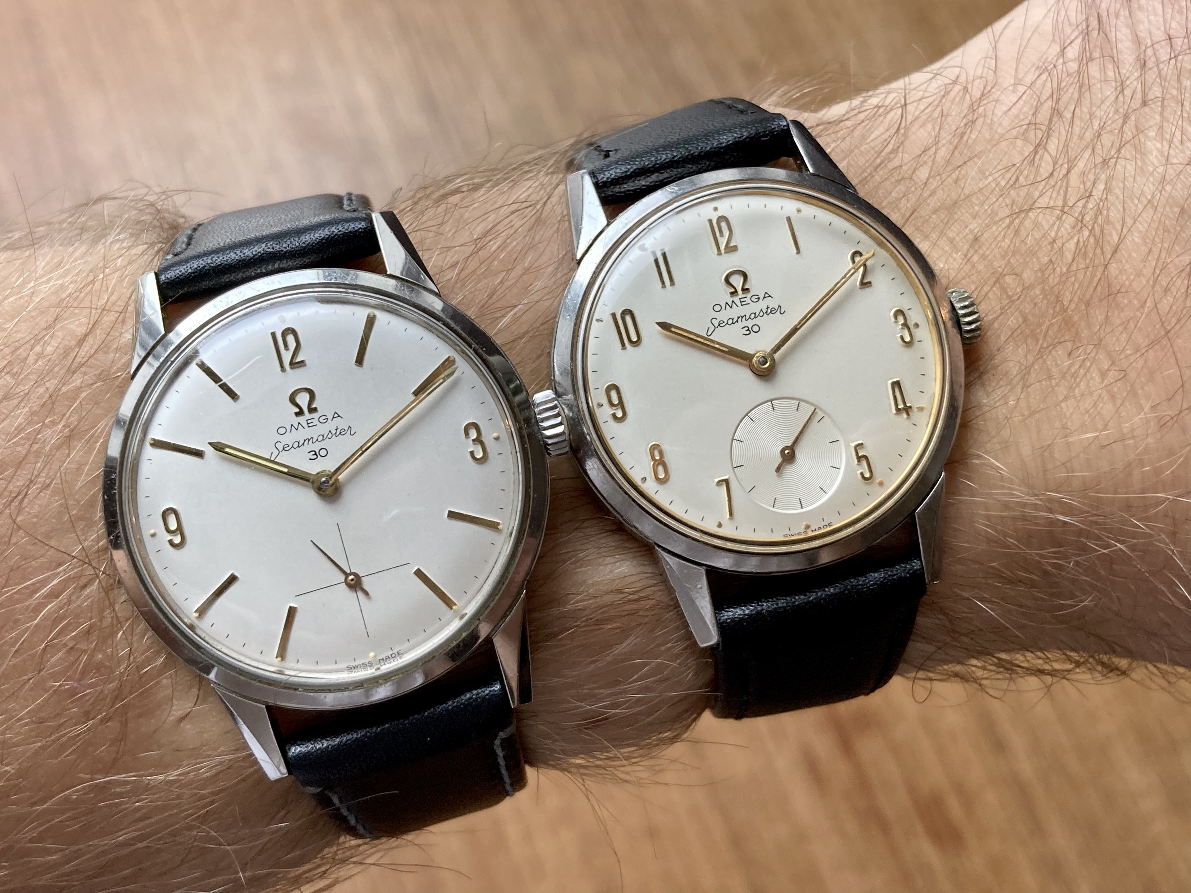 Posts 377 Likes 470 onlyomega94 ·Nov 25, 2021 Just kidding - but I wanted to give you a wrist shot of the two Seamaster 30 in my collection. Especially the all Arabic dial version is a bit uncommon I believe.