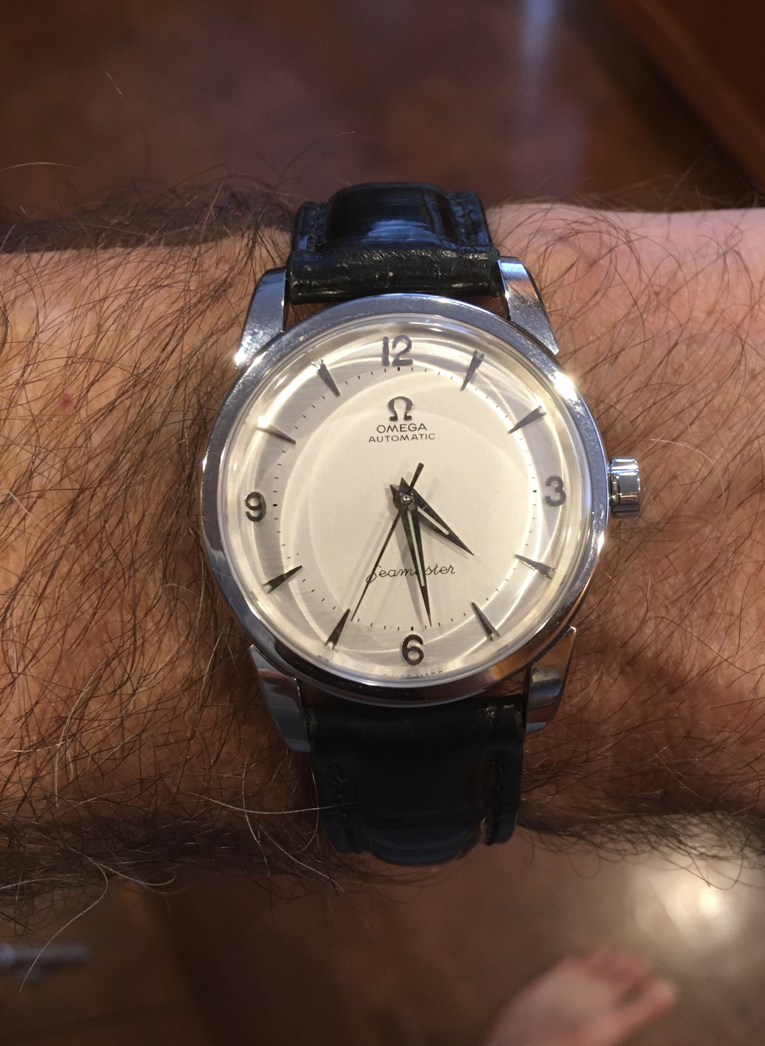 When my father passed away I inherited his 1958 Seamaster. I remember him wearing it daily for years when I was a kid but it spent the past 30 or so years in his dresser drawer. The movement didn't work at all. You couldn't wind the watch, the hands didn't move and you could hear the bumper rotor rattling around when you tipped the watch back and forth.