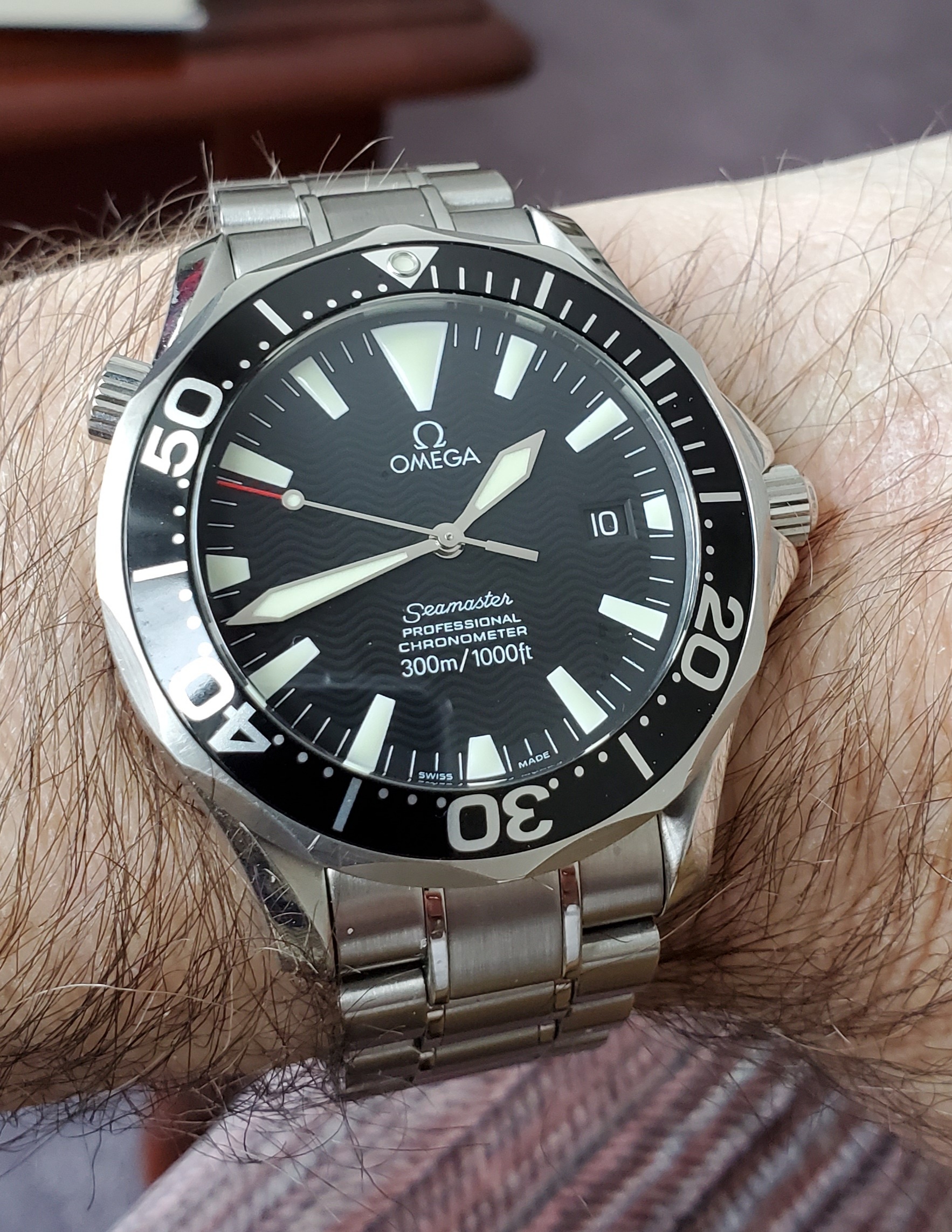 Saturday on 1/9/21 my new planet ocean 39.5 rubber strap divers watch arrived at my door. I had been kicking the idea around for some time now. Nothing is spot on perfect with any watch. I don't even see the escapement crown. What I did was go down to my local omega AD. Tried on some divers watch's and settled on the 39.5 600 m 2000 ft. I did buy from one of the very big name sellers on line.
