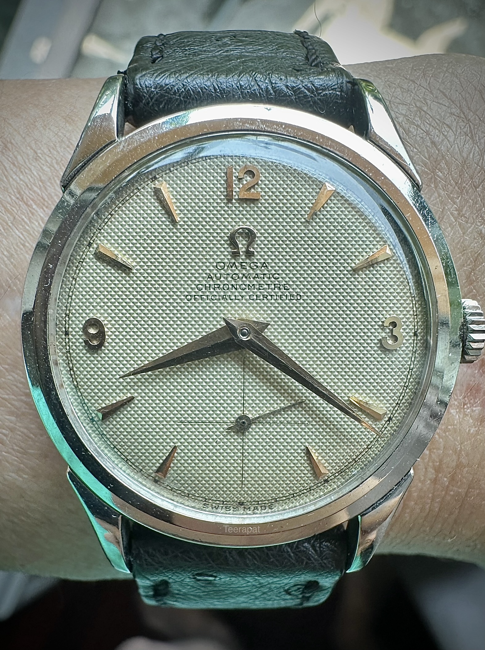 Posts 967 Likes 3,958 qazwsx1 ·Oct 9, 2025 I found this Omega reference 2581 used the same caliber 342 in the ‘Private Watch Sales’ section. Please note the rail-track pattern used for the minute markers, and the Arabic numerals at 12, 3, and 9 o’clock. The difference is that mine is chronometer-certified and includes the words ‘Swiss Made’ at 6 o’clock, as usual.