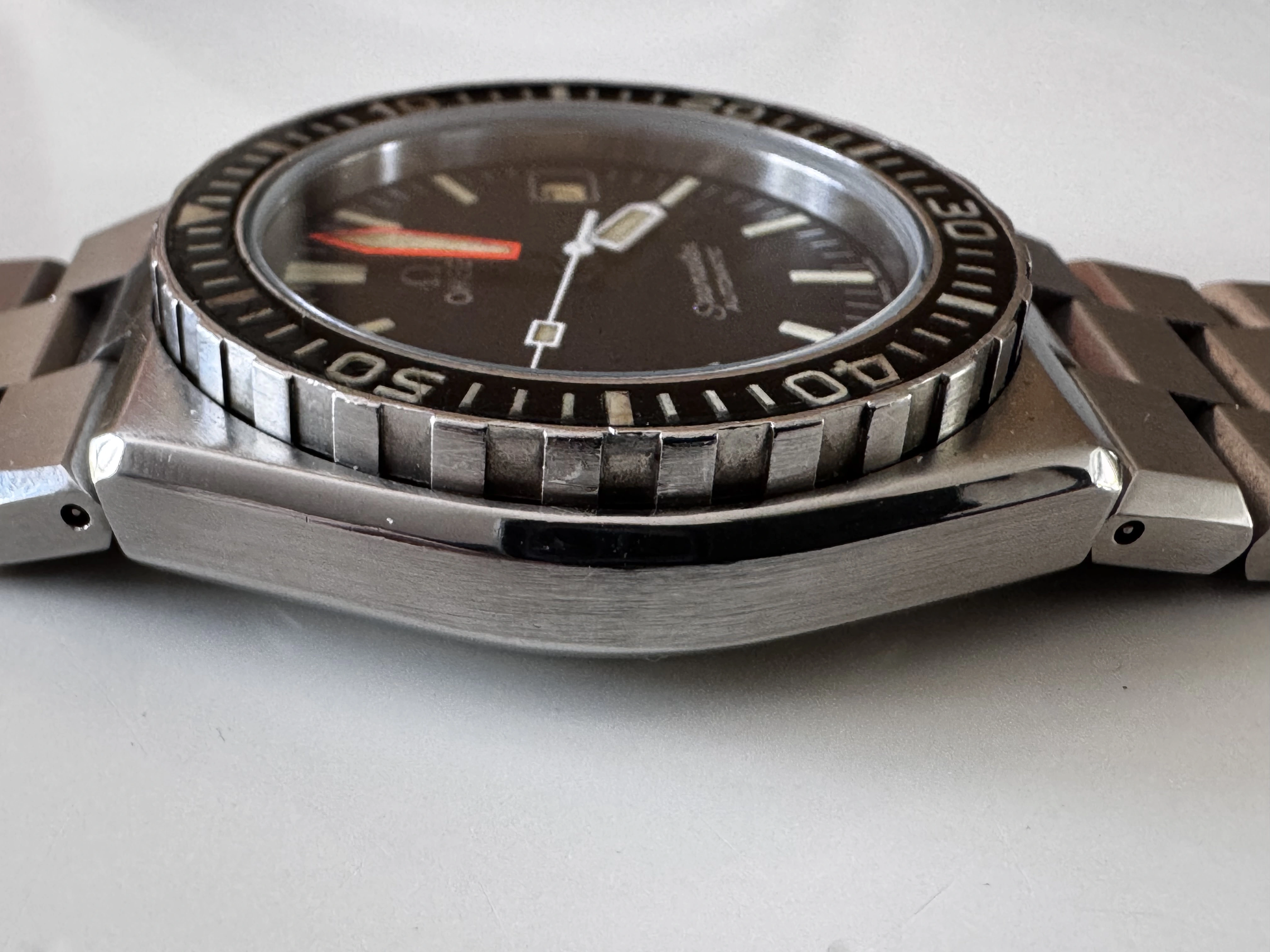I few year ago I noticed someone wearing this weird, though elegant wristwatch. The looks of the integrated, chunky bracelet and 70’s vibe made me to go for the hunt and add one for the collection.