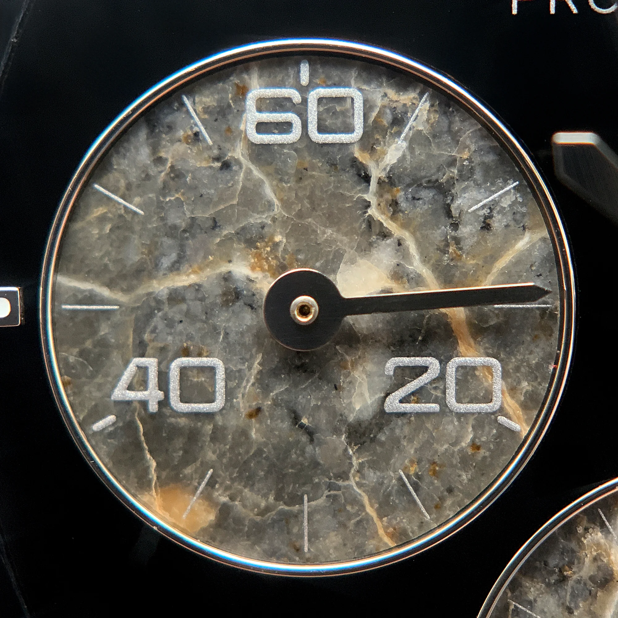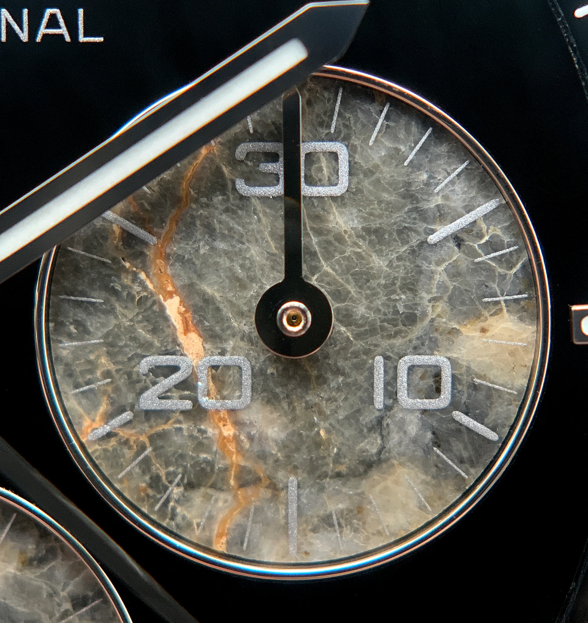 For those who don't know this watch: the subdials are lunar meteorite and the dial is Onyx (Agate). So two types of stone.