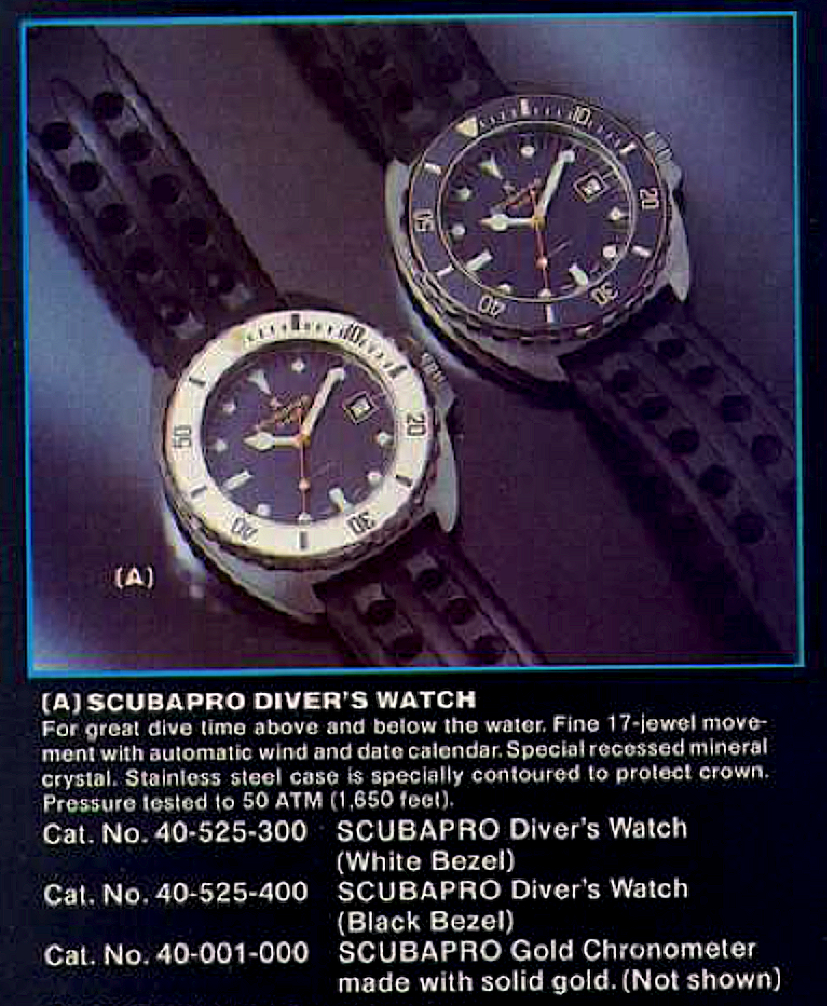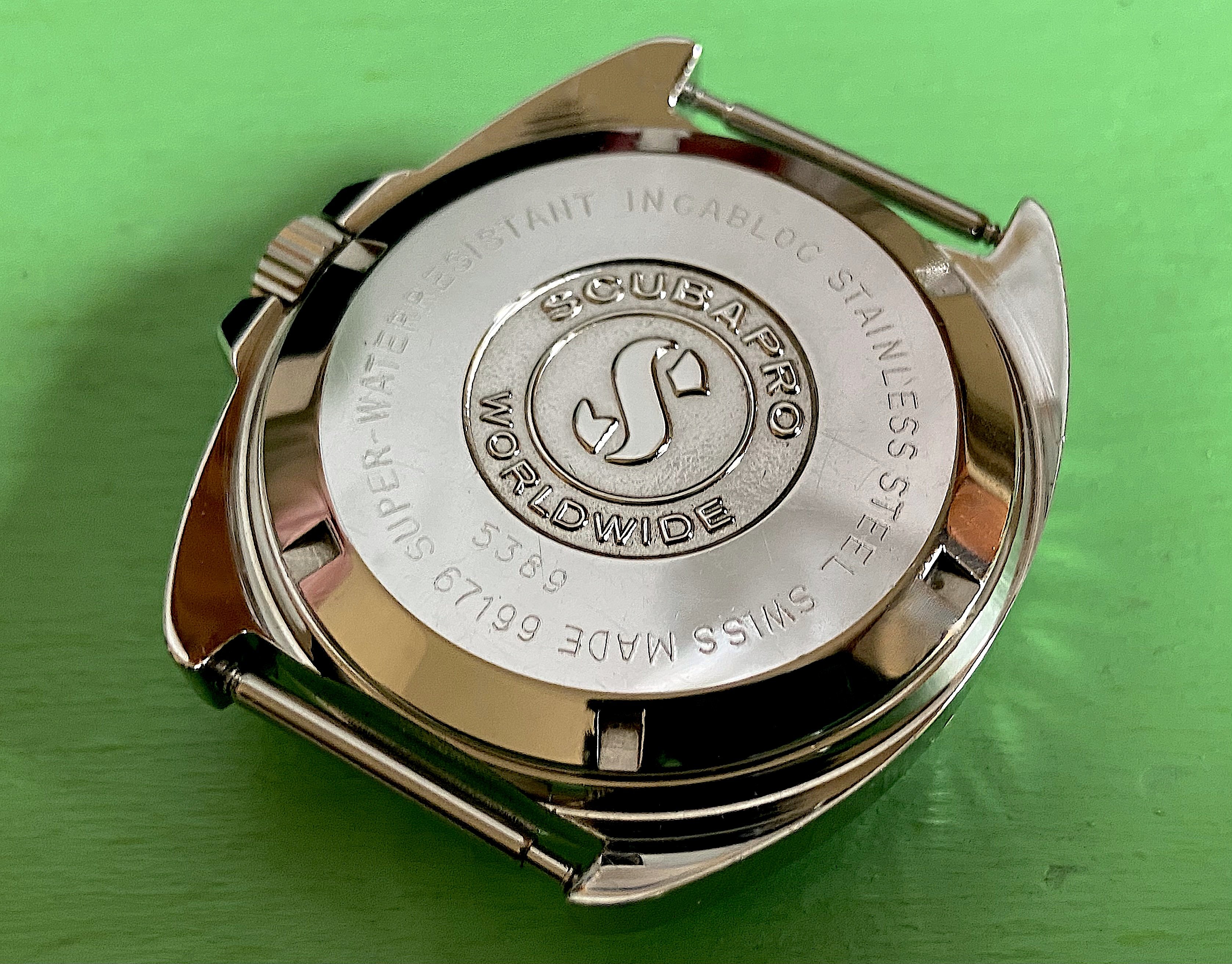 STAINLESS STEEL SWISS MADE case ref.# 67199 SUPER-WATERRESISTANT "SCUBAPRO WORLDWIDE" Diver's wrist watch came with black or white bezel. With a 17 jewels unadjusted Swiss "SCUBAPRO" stamped ETA 2784 automatic movement with quickset date function, 41 hour power reserve (same as 25 jeweled Tudor Submariner Snowflake 94110 Automatic Movement)