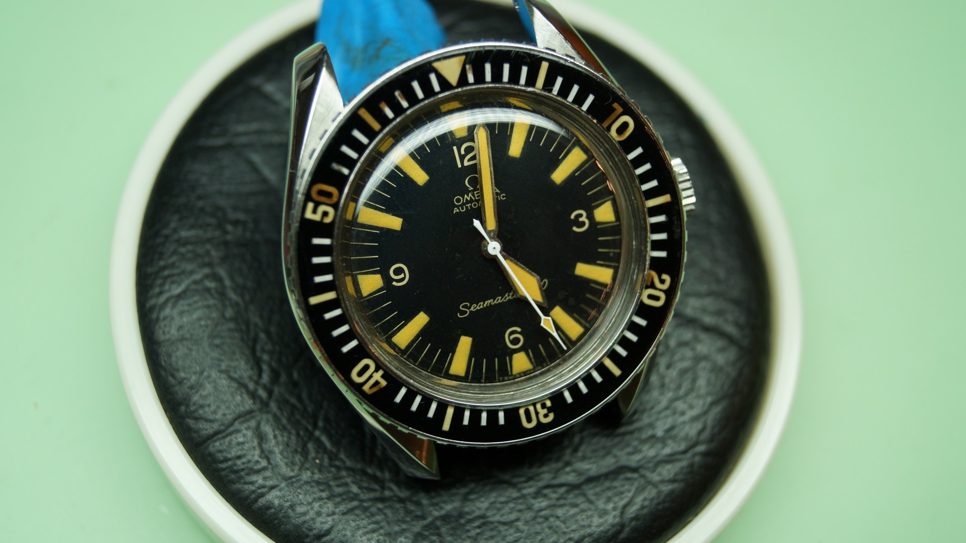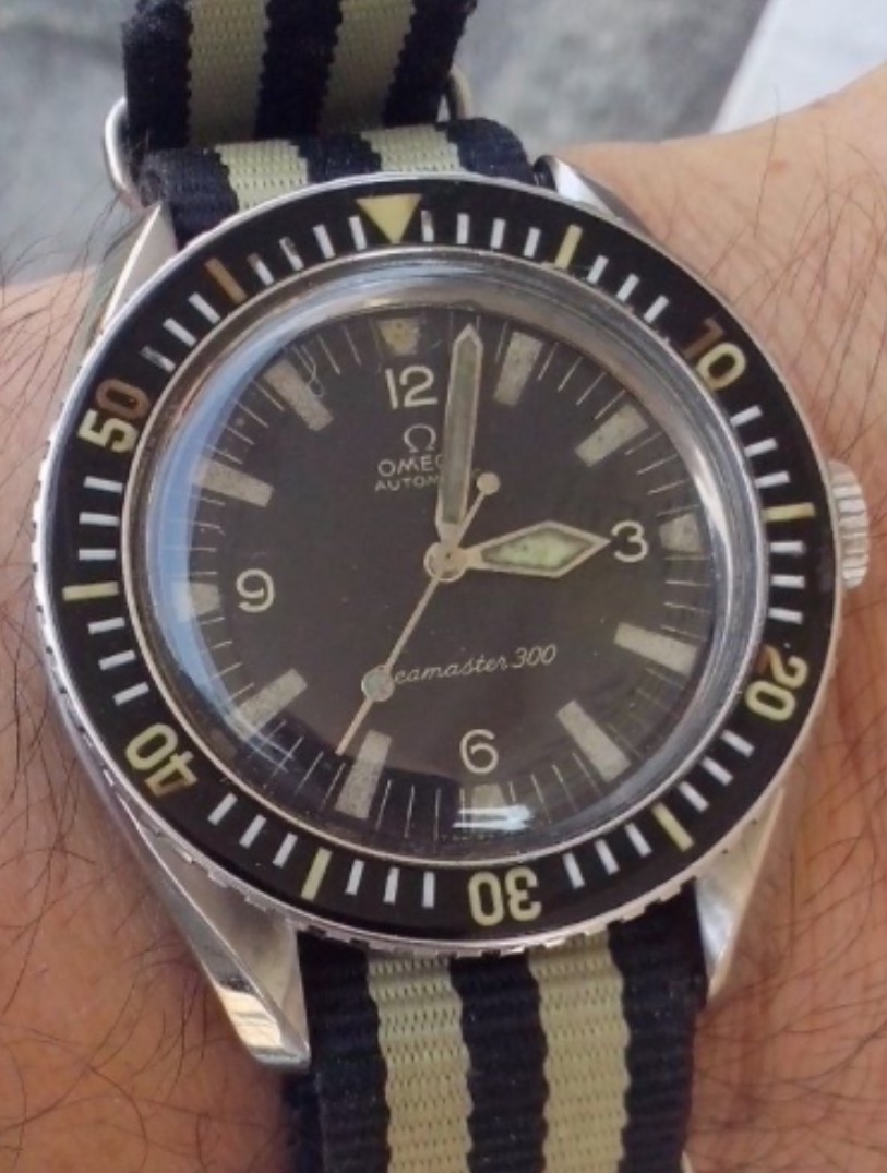 ·A more complicated job than expected. Purchased from ebay, so a gamble element always involved. watchmakers replaced incorrect sweep, replaced lume with a non-glow aged look replacement, restored click function to bezel ( "nightmare job" apparently - only managed to get 2 of 3 bearing replaced), correct OEM crystal, and COA movement which was "rusty". Well, saved from the scrapheap. Will land on a 1171 bracelet when back from the spa.