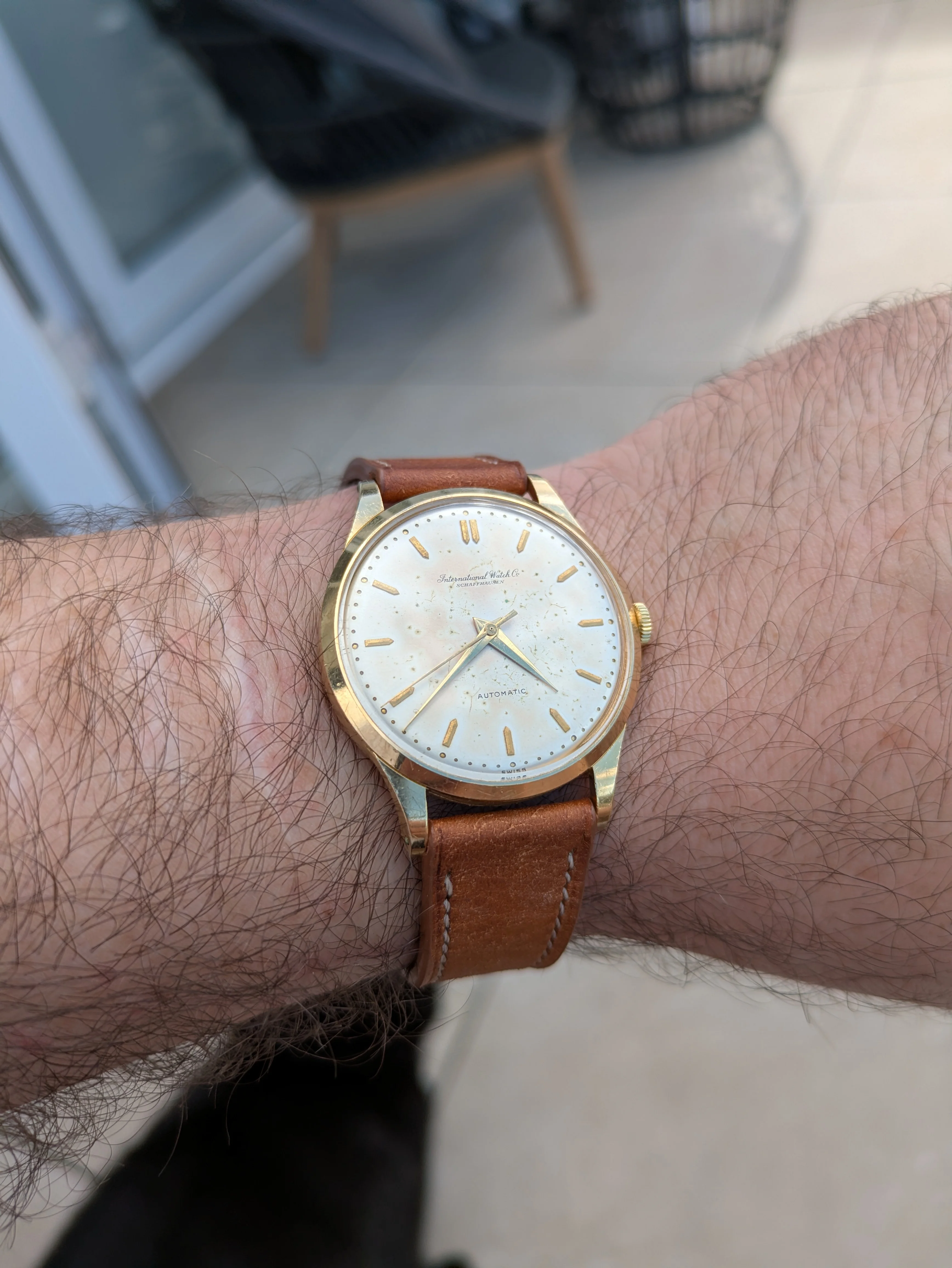 Posts 8 Likes 5 Schwuppes Β·Apr 25, 2025 My own humble two vintage IWC pieces. I believe an "OldInter" from 1963, 35mm 18ct solid gold cal. 853. And (also not sure) a ref. 2403 manual wind cal. 403, early 70's. Please feel free to correct me on the model/ref numbers. π