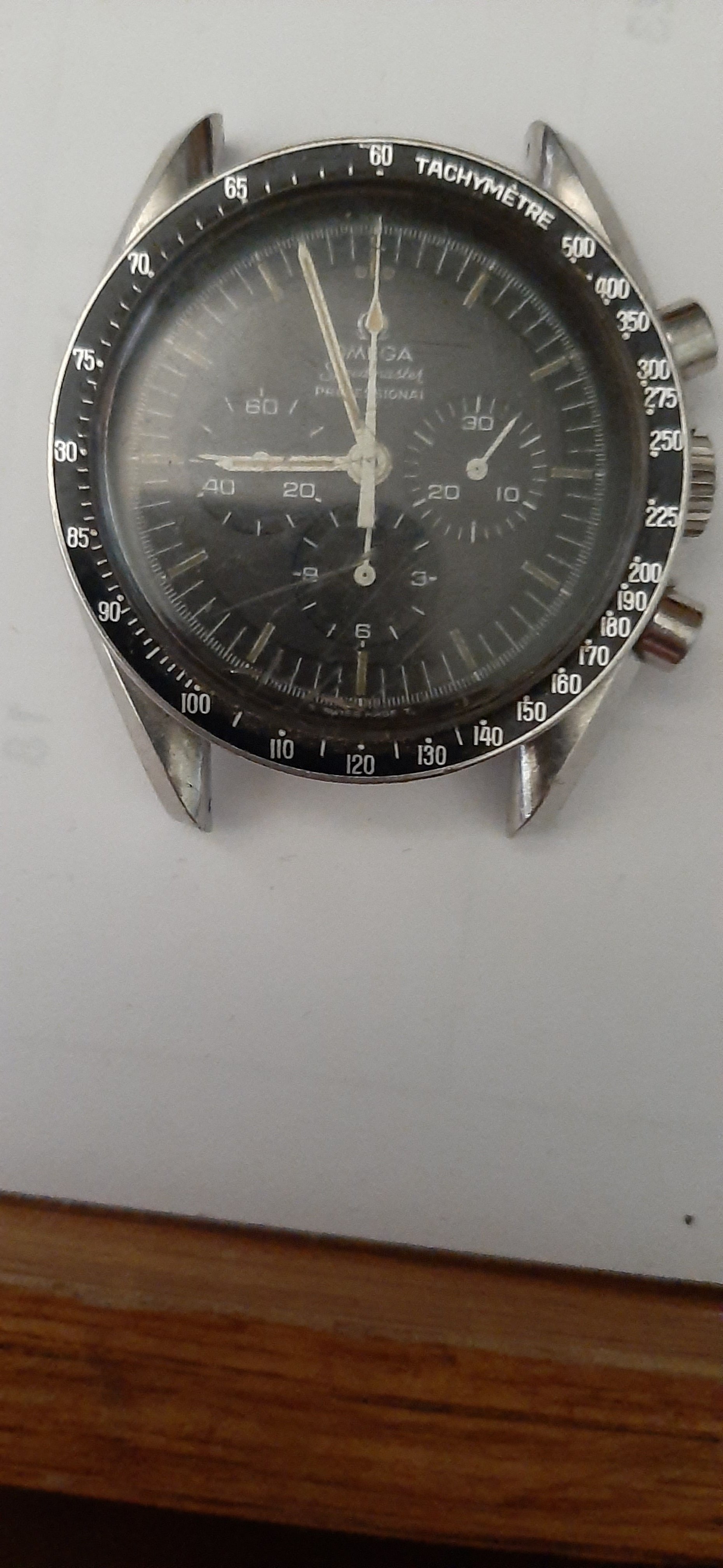 I need some help with my Speedmaster. The watch was given to me new as a gift in the early seventies.I wore it daily until around 1981. Since then it has been in a box on my dresser. For some reason or other I got it out the other day. It had been in there for who knows how long. The watch still runs, but the chrono does not. The start pusher does not function. It also has a crack in the crystal. I would like some advice on where to get it repaired. The watch is a 145022-69ST, 861 caliber, serial number 29115318. I have two bracelets with the watch, both marked number 12. The end pieces are marked 47. One bracelet has longest end link 18.7mm and the other is 17mm. One bracelet has flat links and the other is rounded. I have sent some photo's, forgive the quality. The watch has never been serviced.