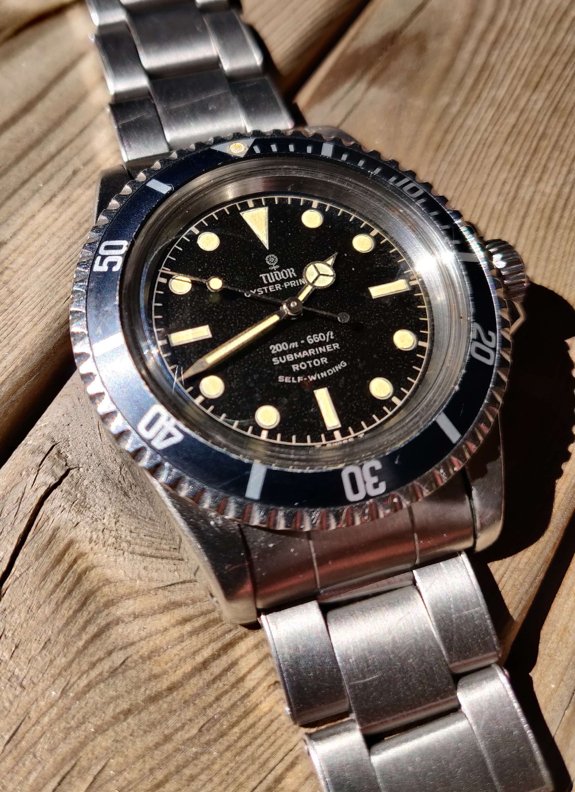 ·This Tudor Submariner 7016 with shield dial was offered to me a few days ago. After doing some research, I found out that the shield dial was used only for one year in 1970 and the serial number should be in the 740xxx range. This particuar watch has a serial number also in the 740k range and the back case is stamped lV/68. Unfortunately, the bracelet was misplaced but the seller promised to look for for it.