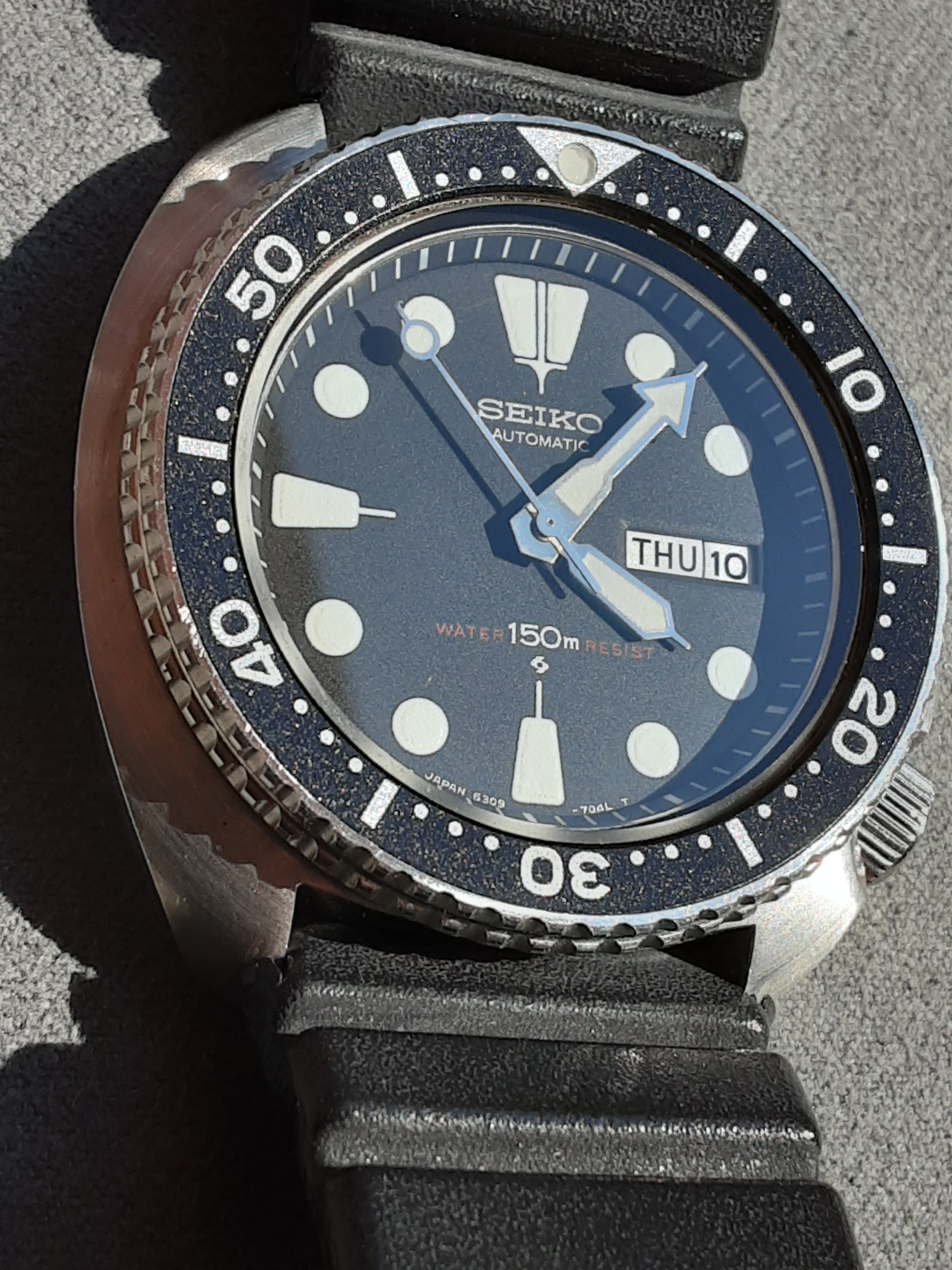 I just want to be in Syrte's thread. Mine's an ol' 1983 6309 7040. No Suwa dial, faded out markings and ugly numeral plots, probably not the original bezel, perhaps not the original hands either. Still has its original GL 831 strap though.