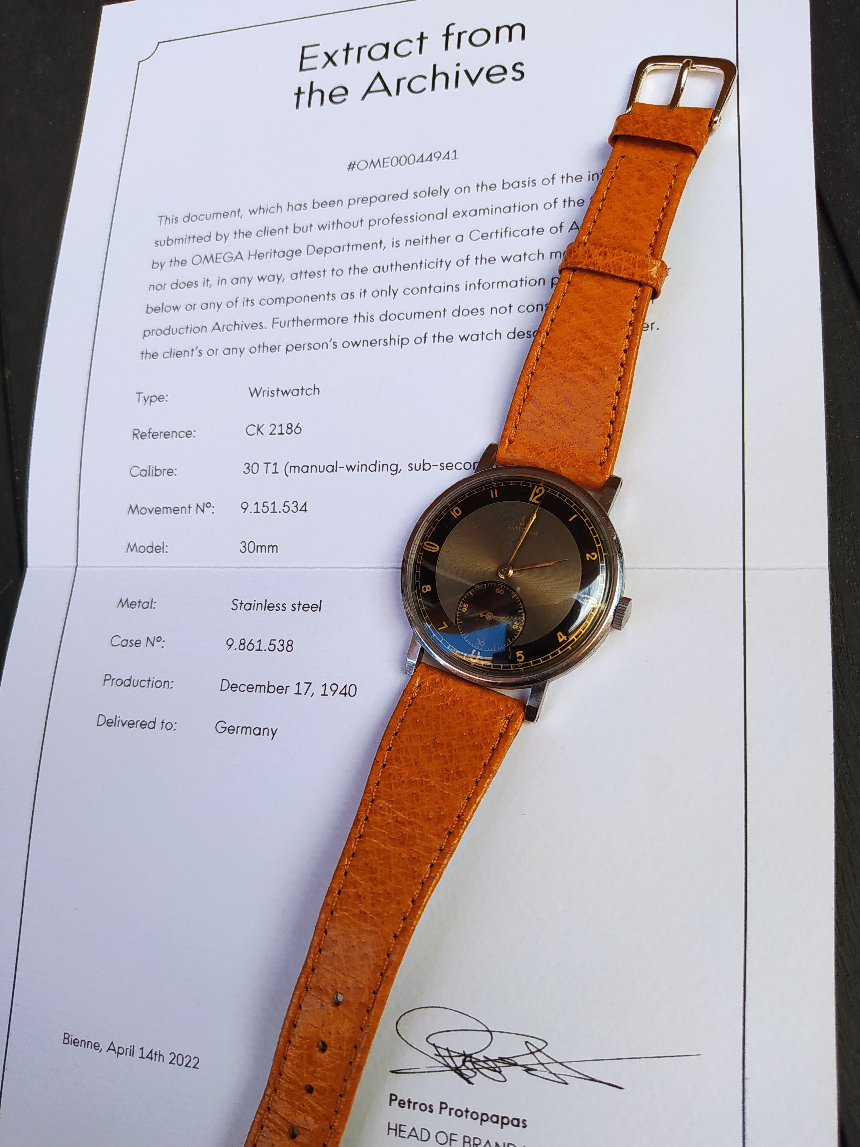 My Extract from the archives arrived today and shows that the watch is a German!