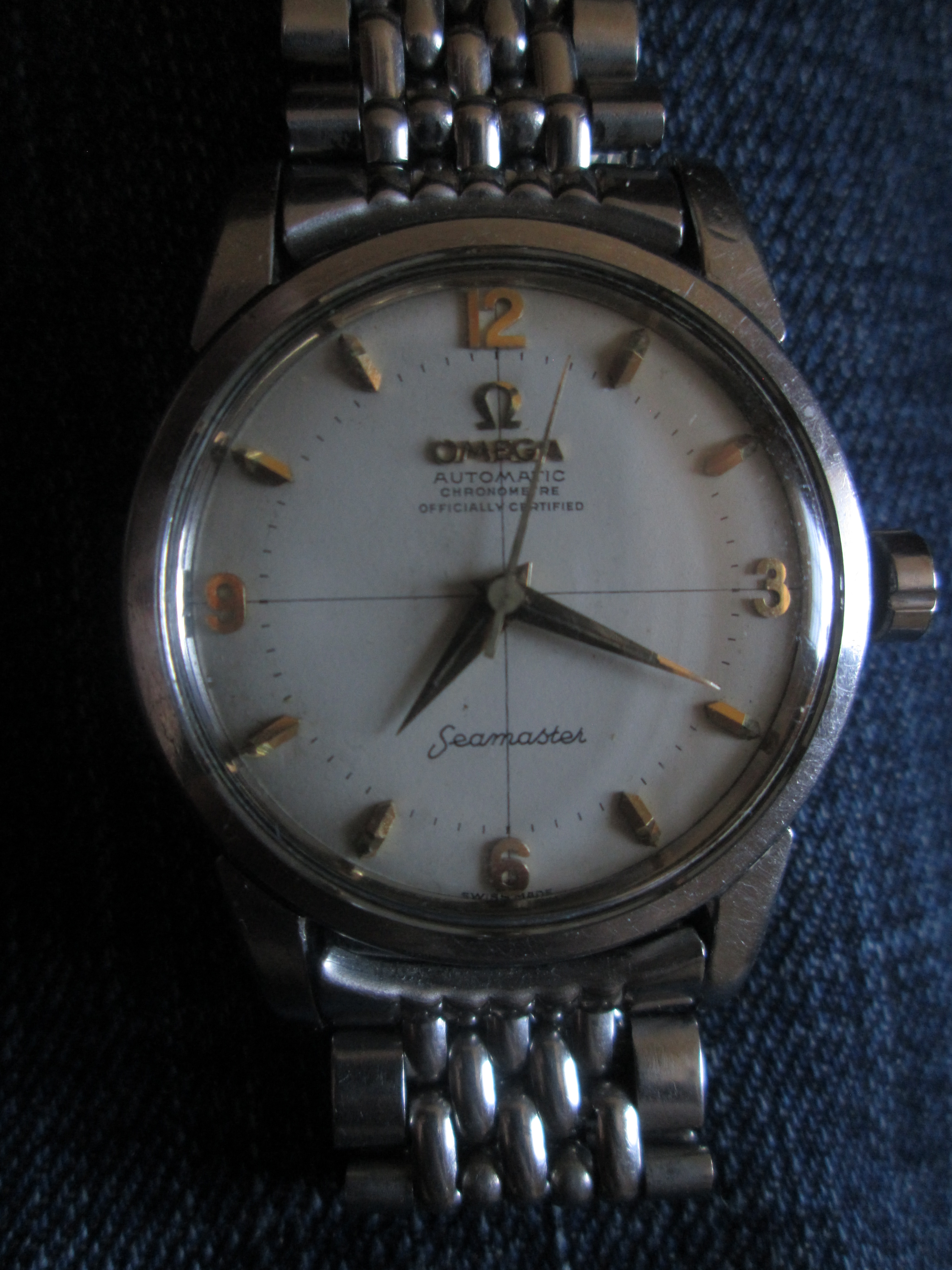 ·Here they are, nothing earth-shattering but (I hope) decent examples of their type and all I feel confident with original dials. My camera's not great and I'm not that skilled with it so excuse picture quality! This is my first Seamaster, a 552 De Ville with linen dial and the best timekeeper of all my vintage Omegas. I wore this for a month and at the end it was about 20 seconds out. A lucky movement I suppose. There is slight spotting on the dial. Despite appearances the lettering is perfect.