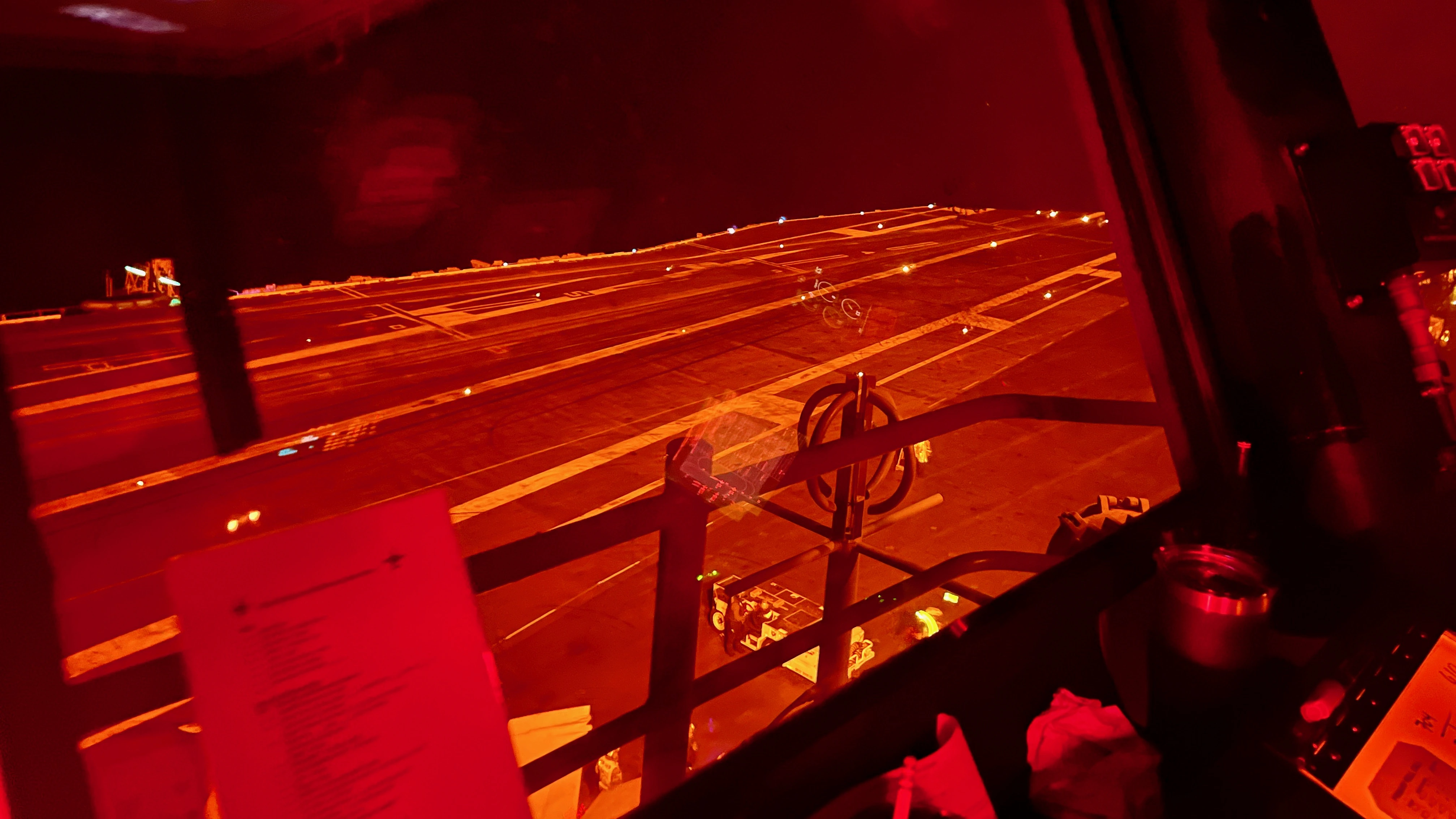 Later that evening were went up into the island to where the Air Boss directs the flight deck operations. His view is incredible.