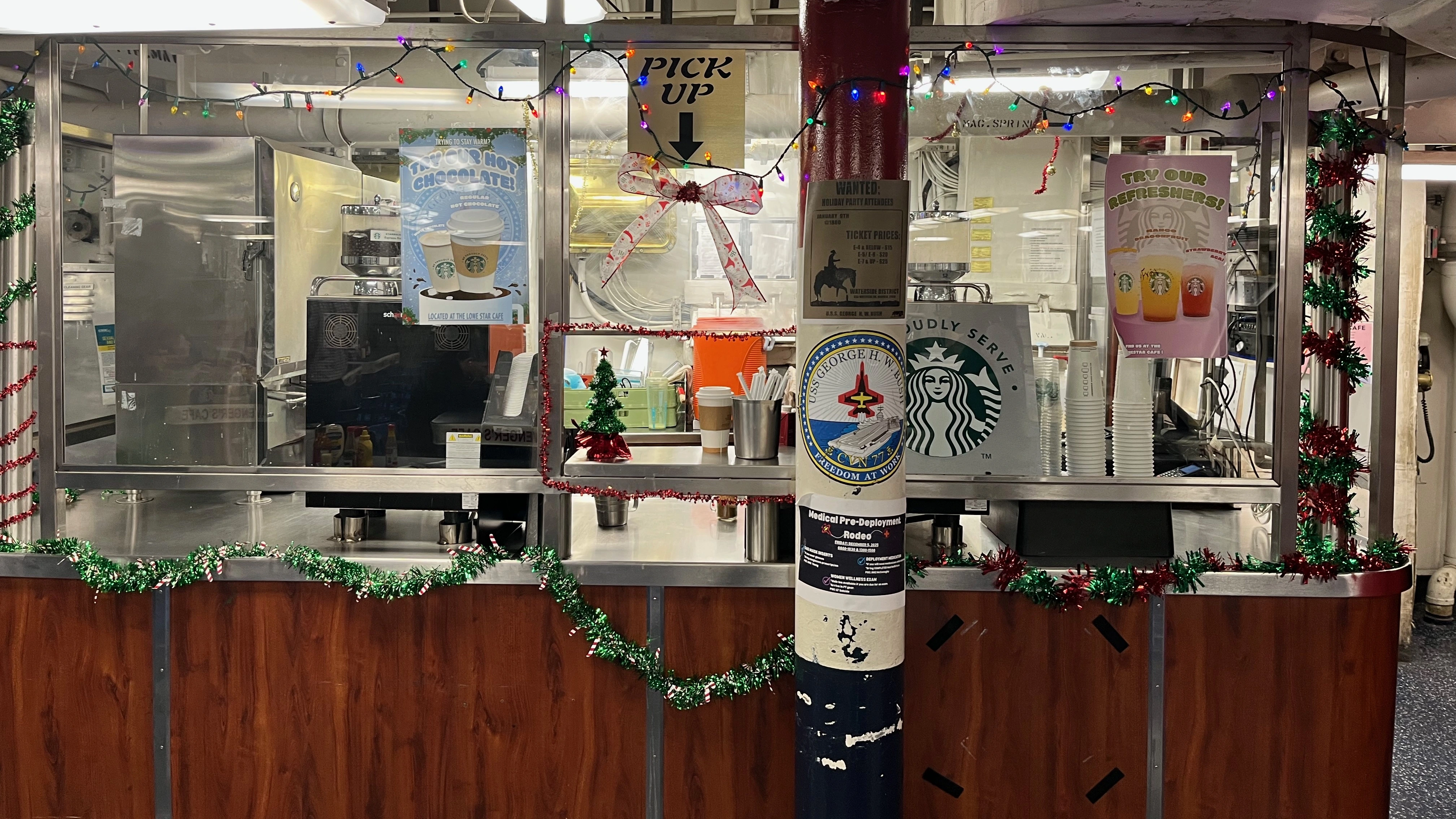 Now back below deck we continued. To make the quality of life better onboard for the sailors there is a Starbucks. Culinary specialists are sent to Starbucks barista school to learn how to make coffee.