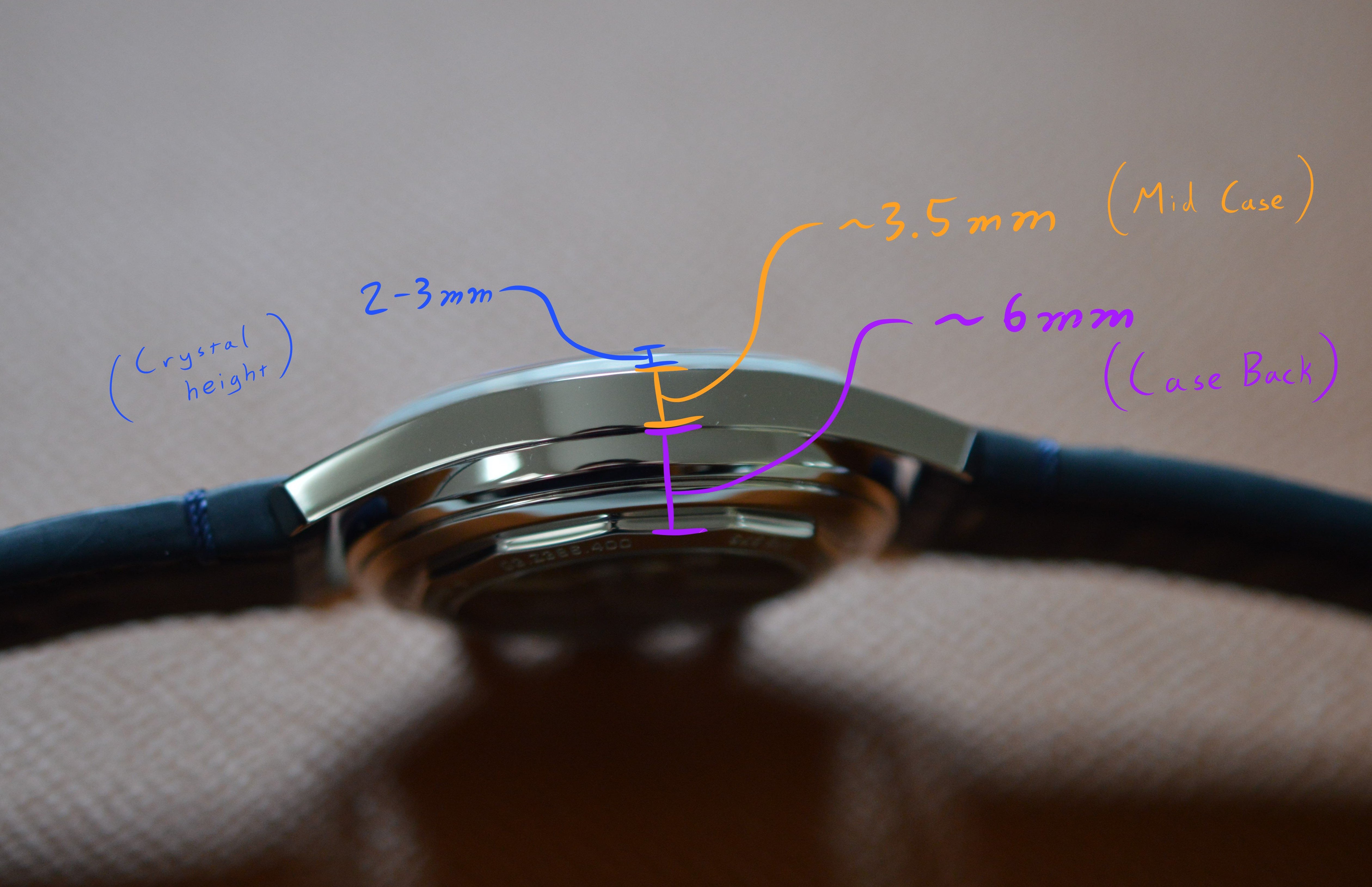 - The high dome crystal also assists with wearability. The fact that 2-3 mm of height is wrapped up in the dome rather than the side flanks of the case or the case back lets the watch wear much slimmer than its already impressively compact measurements suggest.